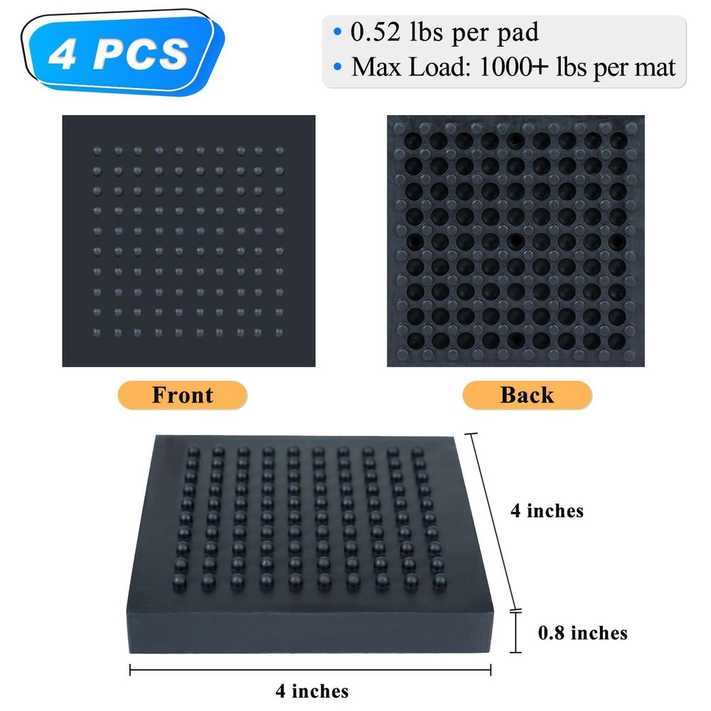 Workout Equipment Mat by . If you have any questions, please feel free to email us.treadmill mat bike mat exercise equipment mat treadmill mat for hardwood floors floor mats for exercise equipment exercise bike mat anti vibration pads sound absorbing mat mat for exercise equipment treadmill mats for carpet workout pads for floor equipment mat spin bike mat exercise floor mats elliptical mat treadmill mat for carpet floor pads for gym anti vibration mat silicone floor mat treadmill pad shock absorbing workout mat treadmill mats for concrete floor exercise bike mats heavy duty floor mats shock absorbing mat workout mats for carpet fitness equipment mat exercise machine mat rowing machine mat indoor bike mat workout equipment mat fitness mats for home gym equipment exercise pads for floor stationary bike mat cycling mat exercise bike mat for hardwood floor mat for exercise bike exercise floor mat treadmill mats mat for under treadmill treadmill mat for tile floor sound proof floor mat bike mat for hardwood floor exercise pads workout equipment home gym weights set for home gym exercise mats gym mat home gym accessories excersize mat workout mat for home workout mats mats for exercise equipment mechanical vibration damping pads weight room floor mats bike mat for carpet indoor cycling mat mat for treadmill on wood floor weight mats exercise mats for home gym equipment workout floor mats for home gym gym mats for home workout equipment exercise floor mats for home gym gym equipment mat exercise equipment mats for home gym equipment mats for home gym 【 IMPRESSIVE SPECIFICATIONS】: Size: 4 x 4 x 0.8 inches, pack of 4; Weight: 0.52 pounds per mat; Material: Rubber with embedded steel plate; Max Load: 1000+ pounds per mat 【 ENGINEERED FOR HEAVY-DUTY: STEEL-REINFORCED DESIGN】: This exercise equipment mat features high sturdiness, thickness, and a special anti-slip design on both sides. The internal steel plate ensures uniform weight distribution and prevents the pads from being compressed by heavy equipment, making them highly durable and non-deformable. Perfect for exercise machines such as treadmills, ellipticals, rowing machines, stationary bikes, dumbbell sets, home gyms, rebounders, and more 【 SUPERIOR NOISE & VIBRATION REDUCTION】: The steel-reinforced structure evenly distributes vibrations and pressure across the entire fitness equipment mat, significantly reducing noise. Simply place these anti vibration pads between equipment and the floor to enjoy a quieter workout without disturbing family and neighbors 【 EXCEPTIONAL FLOOR PROTECTION & SPACE-SAVING】: Protect wood floors and carpets from damage with these treadmill pads. The high-quality rubber material leaves no marks or mess on your flooring, is suitable for all types of surfaces. Compared to to large fitness equipment mats, these treadmill mats ensure greater stability for gym equipment during workouts, while saving more space at the same time. 【VERSATILE APPLICATIONS】: These non-toxic, easy-to-use vibration isolation pads are ideal for heavy-duty machines like washing machines, condensers, air conditioners, generators, blowers, pumps, ID/FD fans, cooling towers, diesel engines, compressors, fans, and industrial machinery. Enhance the stability and longevity of your equipment with these anti-vibration pads. NOTE: As these anti-vibration insulators are newly manufactured, they may initially have a mild odor that will dissipate over time