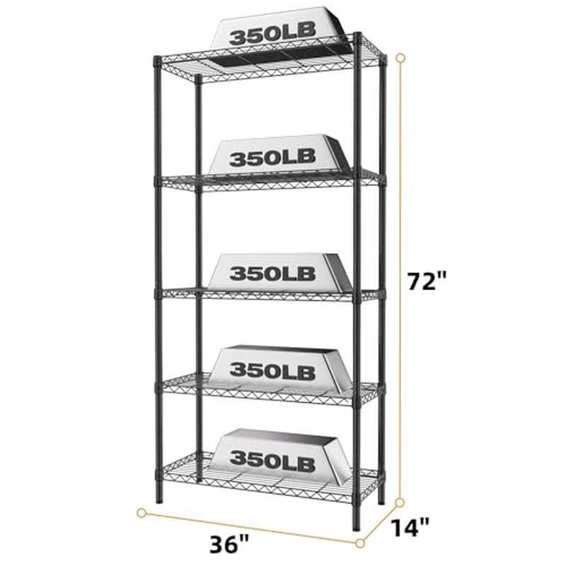 You may also like Vinyl Record Mailers 1-4 LP Cardboard Shipping Boxes 50 Pack Multi-Depth White 71.92 USD Free shipping Large Multi-Level Cat Tree W/ Scratching Posts Condo Hammock Perch Toy Cats New 62.98 USD Free shipping Double Deck Shoe Rack Organizer Space Saver Black 36 Pack Adjustable Slots New 46.92 USD Free shipping Bird Feeding Station Kit Multi Hook Feeder Pole W/ Suet Tray Bird Bath New 53.38 USD Free shipping Bluetooth Jellyfish Lamp Speaker 7 Colors Night Light White Noise Relaxation New 41.98 USD Free shipping Weld-On Pipe-Mount Swivel Trailer Jack Stabilizers 2000 Lb 10 in Vertical Travel 77.34 USD 39.99 USD Custom Round Labels Printable Sticker Adhesive Gifts Products 1125 Pack 2.5 in 88.6 USD Free shipping Spin Mop Bucket Set W/ Wringer 6 Microfiber Heads 360° Rotating Handle Wheels US 63.98 USD Free shipping Expandable Computer Desk W/ Storage Drawers Open Shelf Modern Home Office New 139.76 USD 39.99 USD 38 Gallon Resin Trash Can Lid Drip Tray Easy Clean Patios Kitchens Outdoor Grey 28.57 USD 39.99 USD Set of 6 Turkish Beach Towels Quick Dry Sand Free Lightweight Cotton Towel New 48.43 USD Free shipping Oscillating Wall Mount Small Fan W/ Remote Control & Timer 8.5Inch 4 Speeds New 58.79 USD Free shipping About this item Weight Capacity: otal max load weight is 1750 pounds,Each shelf holds up to 350 pounds for this shelving unit (evenly distributed); t Adjustable Height:Adjustable heavy duty 5 tier storage shelves,wire shelves adjustable in 1-inch increments Appearance: garage shelving uses durable steel construction with black powder coated; adjustable leveling feet Heavy duty storage shelf:5 shelf shelving unit for your kitchen, office, garage, and more Overall Dimension: 36 x 14 x 72 inches (WxDxH) Material:Metal Color:Black Special Feature:Adjustable Product Dimensions:14"D x 36"W x 72"H Shelf Type:Metal You may also like Airtight Food Storage Container 16 Cup W/ Lid Clear Plastic Modular Stackable US 20.98 USD Free shipping 4 Pack Microfiber 360-degree Spin Mop Replacement Heads Machine Washable Indoor 22.08 USD Free shipping Waterproof Anti-Allergen Mattress Protector Anti-microbial Zippered Closure Twin 20.82 USD Free shipping Acrylic Apothecary Jars W/ Lid 3-Piece Set Bathroom & Wedding Organizers Plastic 44.09 USD Free shipping Shower Mirror Fogless Shaving Flat Anti Fog W/ Razor Holder Bathroom Accessories 24.78 USD Free shipping Smart Iron-On Glitter Vinyl Apparel Accessories Home Decor 5.5in x 19in New 11.63 USD Free shipping Vintage Wine Goblets Set of 6 Sturdy Handcrafted Clear Glass Dishwasher Safe New 37.8 USD 39.99 USD Tear Proof Pop Up Laundry Hamper Collapsible Portable Storage Easy Carry Basket 25.48 USD Free shipping Expandable Bamboo Drawer Organizer W/ 9 Compartments Utensil Storage Non-Slip US 59.89 USD Free shipping 2-piece Wooden Oversize Snack Table Set Coffee Finish Foldable Rectangular New 46.3 USD Free shipping Handheld Showerhead W/ Hose Mount Easy Installation Ergonomic Watersense 3.8gpm 21.86 USD Free shipping Unfinished Corner Entertainment TV Stand Solid Wood Storage Drawer Shelf New 359.04 USD 39.99 USD