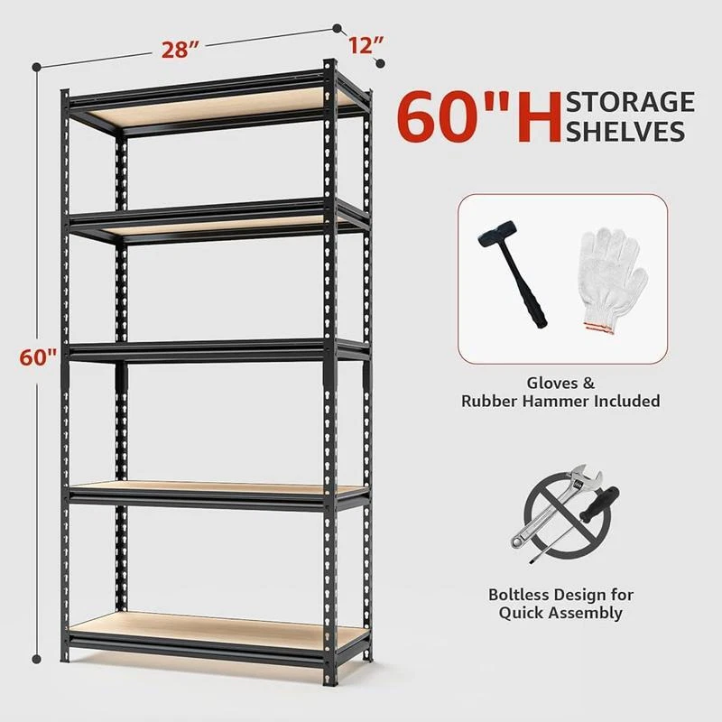 3 Ton Bottle Jack All-in-One 6000 Pound Jackstand Car Lift Heavy Duty Vehicle US 104.49 USD Free shipping Outdoor Freestanding Patio Space Heaters Propane Gas Stainless Steel 48000 BTU 207.18 USD 220.4 USD Free shipping 6% off Flexzilla Garden Hose 5/8 in. x 100 ft., Heavy Dut 70.87 USD 75.39 USD Free shipping 6% off 3 Tier Folding Bookcase Stackable Solid Wood Sturdy Shelves Storage Espresso US 74.82 USD 79.6 USD Free shipping 6% off Commercial Electric Meat Slicer Deli Food Slicer w/ Removable 8.5" Blade Cheese 121.46 USD 129.21 USD Free shipping 6% off 50 Gal Stacker Tote Plastic Storage Boxes Channeled Heavy Duty Latches Bin 3 Pcs 110.55 USD 117.61 USD Free shipping 6% off 3500 GPH 1HP Submersible Water Pump W/ Float Switch Garden Pond Flood Irrigation 62.03 USD 65.99 USD Free shipping 6% off 3 Tier Heavy Duty Utility Cart Wire Rolling Service Cart w/ Handle Bar Shelf New 98.99 USD Free shipping Resin Deck Box Storage Organization Patio Furniture Outdoor Cushions 71 Gallon 74.65 USD 79.41 USD Free shipping 6% off Digital Wall Mount Safe Flat Electronic Anti-Theft Touchpad Home Office Security 143.11 USD 152.24 USD Free shipping 6% off Automotive Marine Battery Charger Waterproof W/ Extra-long cable Fully Automatic 47.42 USD 50.45 USD Free shipping 6% off Rechargeable Lithium-Ion Battery Powered Pump Zero Technology Sprayer 2-Gallon 91.69 USD 97.54 USD Free shipping 6% off About this item THICKER LAMINATED BOARD: This garage shelving heavy duty is made of 0. 36-inch thick laminate and 0. 05-inch thick metal frame, it won't warp or crack whether it's in a damp basement or a steamy kitchen. Sharp tools can be placed wherever you want without worrying about leaving scratches ADJUSTABLE AND DIVISIBLE: By moving the crossbar up and down, you can easily adjust the height of each tier to organize everything from suitcases to small tools. It can also be split into 2 separate shelving units, transforming it from shelves to practical workbenches that meet your multiple needs HEAVY DUTY AND STRONG: Each metal shelf can hold up to 260 pounds, and the metal frame and anti-tip kit further ensure that the metal storage shelves are stable, so they won't sag or wobble even when you're holding stacks of canned food, all kinds of kitchen utensils and heavy outdoor equipment ORGANIZED AND VISIBLE: Our garage storage shelves sweep gear scattered around your garage off the floor, leaving your space neat and orderly. When you're looking for something, organized heavy duty shelving makes it easy to find it quickly without spending too much time trying to remember where it is 10 MINUTES QUICK ASSEMBLY: All parts of the utility shelf will be shipped to your home in 1 box without any problems. The interlocking design allows you to assemble it alone in 10 minutes without bolts and nuts. The included rubber hammer and gloves make your assembly easier and safer › Room Type: Office, Garage, Laundry Room, Kitchen, Library Number of Shelves: 5 Special Feature: Space Saving, Waterproof, Durable, Heavy Duty, Adjustable Product Dimensions: 11. 81"D x 27. 56"W x 59. 84"H Style: Industrial Age Range (Description): Adult Brand: SYLOUGH Product Care Instructions: Wipe with Dry Cloth Size: Wood 60"H*28"W*12"D Weight Limit: 2. 6E+2 Pounds You may also like Japanese Floral Garden Shears Heavy Duty Pruning Snips Hand Held Clippers New 41.34 USD 43.98 USD Free shipping 6% off Deck Mount Gooseneck Faucet 3-1/2 Inch Spout Ceramic Valve Low Lead NSF Kit New 107.3 USD Free shipping Single Serve Coffee Pods Just Black Medium Roast 84 Count Arabica Coffee K Cups 67.7 USD 72.02 USD Free shipping 6% off Cervical Memory Foam Pillow Ergonomic Neck Pain Relief Cooling Sleep Support New 40.31 USD 42.88 USD Free shipping 6% off Expandable Softside Luggage 20 Inch Spinner Wheels Ergonomic Handle Travel Bag 95.32 USD Free shipping Water Bottle Organizer Tumblers Stackable Kitchen Storage Holder Gifts New 38.24 USD 40.68 USD Free shipping 6% off Compact Router 65Amp 125HP Wood Palm Router 6 Variable Speeds 15 Router Bits Set 57.17 USD Free shipping Plyometric Jump Box Adjustable Heights Foam Fitness Trainer Safe Stable Home Gym 89.24 USD Free shipping Large Stackable Clear Storage Drawers W/ Handles Home Office Organization New 44.17 USD 46.99 USD Free shipping 6% off Electric Handheld Cement Mixer 2600W 6 Speed Mortar Paint Grout Plaster Mixer US 62.03 USD 65.99 USD Free shipping 6% off Space Fast Heater Portable Electric Heaters Indoor Quiet Sleep Smart Versatile 48.06 USD 51.13 USD Free shipping 6% off Kitchen Oven Baking Pan Carbon Steel Bakeware Non Stick Frying Roasting 10 Piece 46.52 USD 49.49 USD Free shipping 6% off