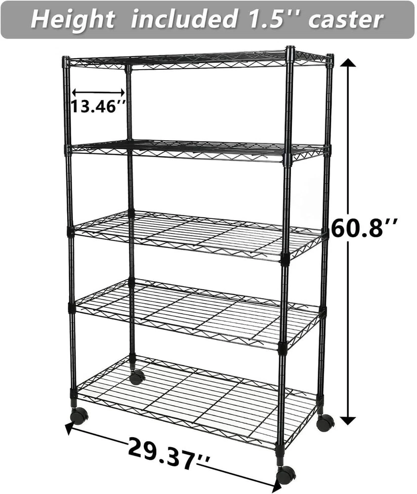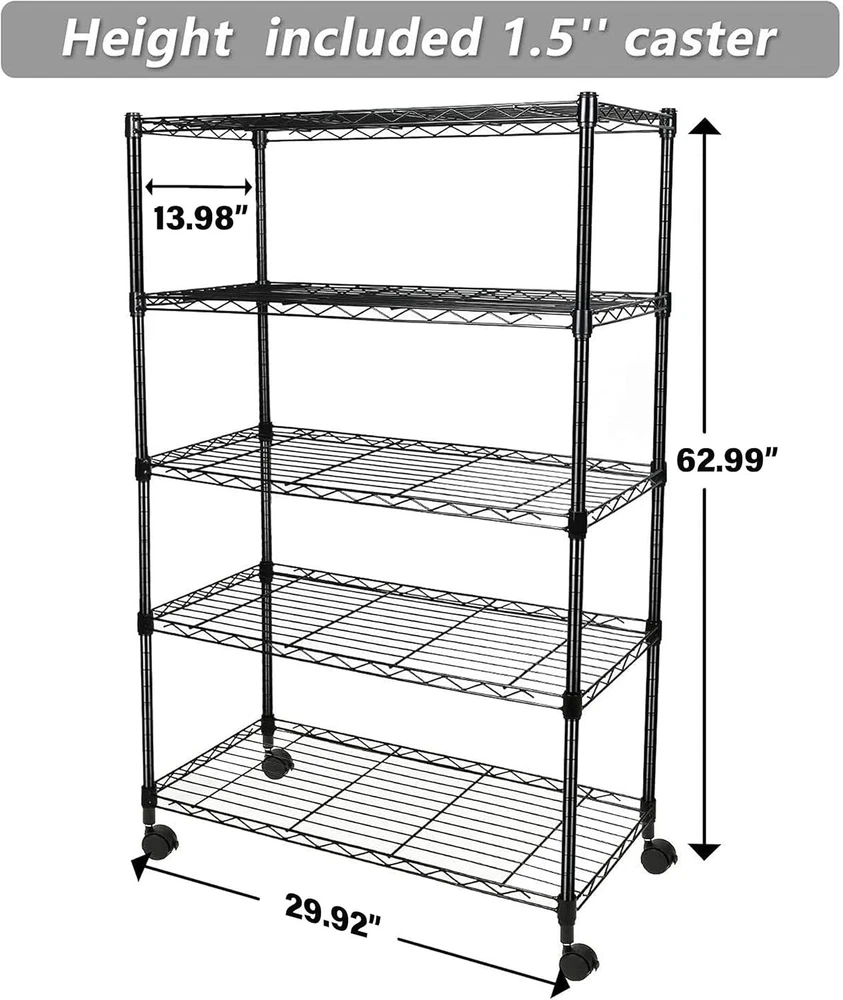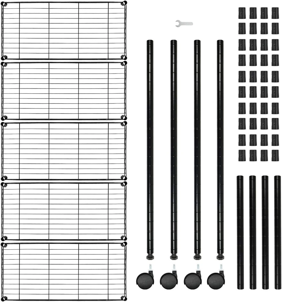 Heavy Duty 5-Shelf Wire Shelving Rack Storage Shelving Unit 1250lbs Black Shelf