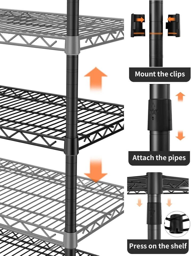 Heavy Duty Metal Storage Shelves 5 Tiers Adjustable Utility Rack 1750LBS ‹ › ‹ › ‹ › ‹ › ‹ › ‹ › ‹ › ‹ › ‹ › ‹ › ‹ › Heavy Duty Metal Storage Shelves 5 Tiers Adjustable Utility Rack - 1750LBS Capacity Features: Constructed from strength steel tubes, designed in an innovative 'spider web' form for enhanced stability. Remarkable static load capacity of up to 1750 lbs, ensuring it can handle your heaviest items with ease. Specially coated to resist water, rust, and corrosion – perfect for kitchens, bathrooms, and any storage area. Height-adjustable shelves in 1-inch increments, allowing customizable space for all your storage needs. Easy assembly that requires no tools - transform your space in just 15 minutes while enjoying a fun DIY experience. Designed with adjustable feet, accommodating uneven surfaces for flawless stability. Benefits: Sturdy construction meets versatility, making this rack suitable for a variety of spaces: home, garage, kitchen, and more. Keep your items organized while maximizing vertical storage space, ideal for narrow or corner spaces. Easily adjustable to accommodate items of varying heights while simplifying your storage solutions. Protection against rust and corrosion ensures longevity and ease of maintenance. Responsive customer support available within 24 hours for any assembly concerns or missing parts. Why choose our Heavy Duty Metal Storage Shelves? Transform your cluttered spaces into organized havens with our Heavy Duty Metal Storage Shelves. Crafted from materials, this adjustable utility rack is designed to carry a massive load while providing versatility in storage. Ideal for kitchens, bathrooms, or any area where space is at a , its innovative design ensures that every inch is utilized effectively. Don’t let disorganization overwhelm you – elevate your storage solutions today with this durable shelving system. Order now and enjoy a beautifully arranged space that reflects your modern lifestyle! Shipping Free & Fast Shipping - We offer free shipping to most of the USA with a normal delivery time of 3-7 days. However, due to the current situation, additional delivery time (up to 3 weeks) may be required for some items. Alternative Carriers - We may use alternative carriers (e.g. USPS, FedEx, UPS, etc.) to ensure your package arrives safely and on time. Due to the use of multiple carriers, we are unable to provide a tracking number automatically. Handling Time - Orders are processed and shipped within 1-2 business days of receiving cleared payment. Shipping Restrictions - Shipping to Alaska, Hawaii, Puerto Rico, Guam, and other US territories may incur shipping charges or delivery restrictions. Please contact us before ordering, or your order can be refunded/cancelled. State Restrictions - There may be restrictions based on your state of purchase. For example, certain items may not be shipped to California due to state regulations. Contact for Tracking Updates - If you require tracking updates or have any concerns about the delivery of your order, please feel free to contact us, and we will be happy to assist you. Return 30-Day Hassle-Free Returns - We want you to be completely satisfied with your purchase. If you are not, you can return the item within 30 days of receiving it for a full refund or exchange. Easy Return Process - To start a return, simply contact us and we will provide you with a prepaid return shipping label and detailed instructions. Restocking Fee - There are no restocking fees for returns. However, the buyer is responsible for return shipping costs if the return is not due to a seller's error. Refund Processing Time - Refunds will be processed within 5 business days of receiving the returned item in its condition. Payment We accept all major credit cards, PayPal, and Apple Pay for your convenience. Your payment information is secure and encrypted to ensure a safe and seamless transaction. Please complete your payment within 3 days of purchase to avoid any delays in shipping. Feedback Your feedback is extremely important to us. We strive to provide the best products and customer service possible. If you are satisfied with your purchase, please take a moment to leave us a positive review. If you have any concerns or issues with your order, please contact us before leaving negative feedback. We are committed to resolving any problems and ensuring your satisfaction. Contact Us If you have any questions or concerns, please feel free to out to our customer support team. You can contact us through the eBay messaging system. We are available Monday to Friday, 9:00 am to 5:00 pm EST, and we will do our best to respond to your inquiry within 24 hours. Buy it now and enjoy a pleasant shopping experience! Unit Quantity: 1750LBS Material: Metal,Carbon Steel Room: Bathroom,Garage,Kitchen,Laundry Room,Closet Mounting: Free Standing,Floor Mount Suitable For: Indoor Care Instructions: Wipe with Damp Cloth Item Height: 77 Inches Item Length: Heavy Duty Storage Shelves Item Width: Heavy Duty Storage Shelves Type: Storage Unit Number of Shelves: 5 Number of Drawers: 0 Number of Compartments: 0 Number of Items in Set: 6 Capacity: 1750 lbs Item Weight: Not specified Number in Pack: 1 Color: Black Size: Large Scent: Not applicable Shape: Rectangle Style: Modern Finish: Painted Unit Type: Unit