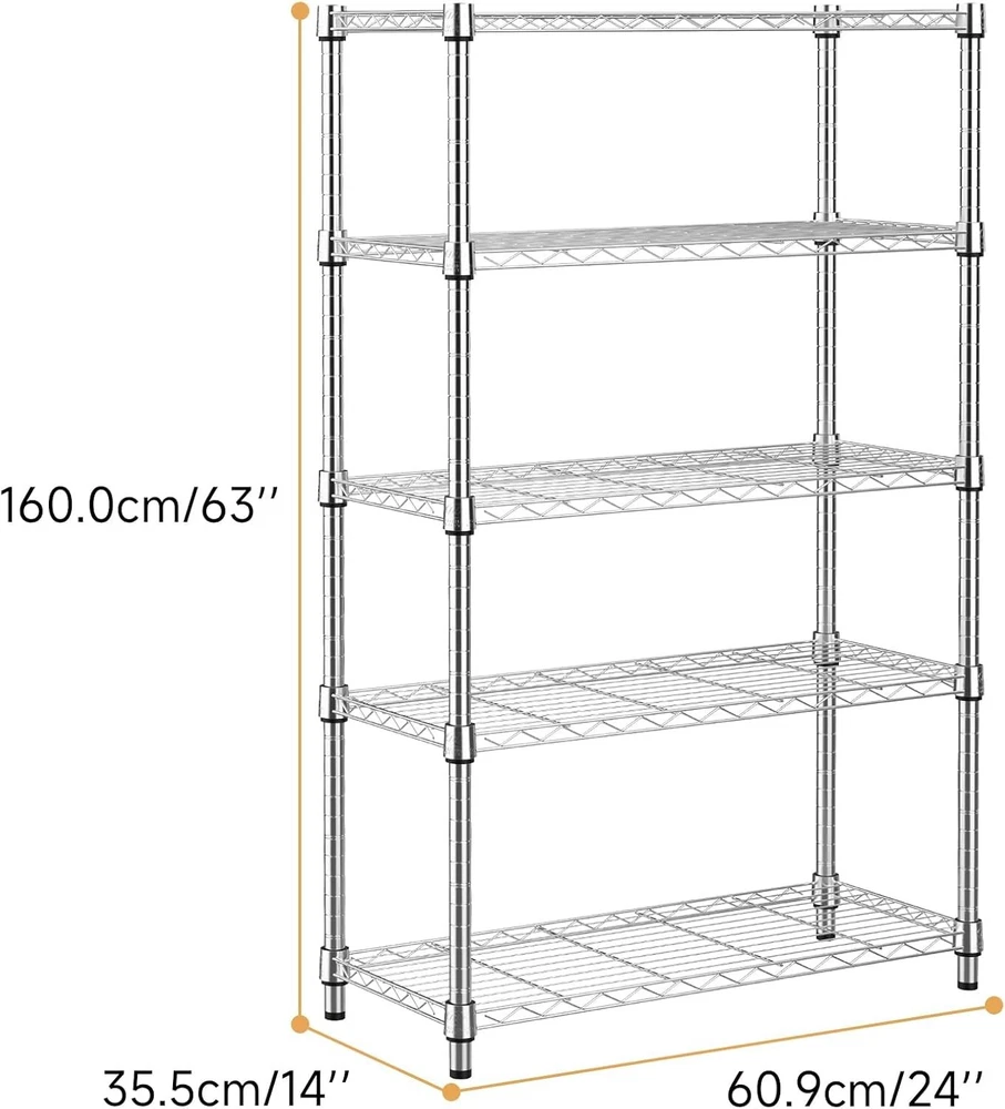 Heavy Duty Steel Shelving Unit 5-Tier Wire Rack Storage Organizer for HomeKitchenGarage ‹ › ‹ › ‹ › ‹ › ‹ › ‹ › ‹ › ‹ › ‹ › ‹ › Heavy Duty Steel Shelving Unit 5-Tier Wire Rack Storage Organizer for Home, Kitchen, and Garage Material: Carbon Steel Features: Dimensions: 13.7"D x 23.6"W x 62.4"H Multifunctional versatility for different storage scenarios: room, balcony, kitchen, office, and garage. Constructed with superior Carbon Steel and 19.11mm pipes for exceptional sturdiness. Each shelf holds up to 250 lbs, with a maximum unit weight capacity of 1250 lbs. Adjustable height for maximum flexibility to accommodate varying item sizes. Convenient assembly with no tools required, setup is quick and effortless. Responsive customer support available within 24 hours for any inquiries. Benefits: Durable and reliable, ideal for heavy items and everyday storage needs. Customizable space with adjustable shelves to fit your unique needs. Multipurpose usage elevates organization in various spaces. Easy assembly means you can focus on enjoying your newly organized space. Receive optimal support from our dedicated customer service team. Why choose our Heavy Duty Steel Shelving Unit? Transform your storage capabilities with our Heavy Duty Steel Shelving Unit designed to provide maximum weight capacity and versatile functionality. Made from high-quality carbon steel, each shelf is built to withstand weighty items, making it a perfect addition to your kitchen, garage, or home office. The adjustable height feature allows you to optimize your storage space in style. With easy, tool-free assembly, you'll be ready to organize your life in no time. Plus, our thoughtful customer support is always just a message away for any questions. Upgrade your storage solutions today and experience the difference. Shipping Free & Fast Shipping - We offer free shipping to most of the USA with a normal delivery time of 3-7 days. However, due to the current situation, additional delivery time (up to 3 weeks) may be required for some items. Alternative Carriers - We may use alternative carriers (e.g. USPS, FedEx, UPS, etc.) to ensure your package arrives safely and on time. Due to the use of multiple carriers, we are unable to provide a tracking number automatically. Handling Time - Orders are processed and shipped within 1-2 business days of receiving cleared payment. Shipping Restrictions - Shipping to Alaska, Hawaii, Puerto Rico, Guam, and other US territories may incur shipping charges or delivery restrictions. Please contact us before ordering, or your order can be refunded/cancelled. State Restrictions - There may be restrictions based on your state of purchase. For example, certain items may not be shipped to California due to state regulations. Contact for Tracking Updates - If you require tracking updates or have any concerns about the delivery of your order, please feel free to contact us, and we will be happy to assist you. Return 30-Day Hassle-Free Returns - We want you to be completely satisfied with your purchase. If you are not, you can return the item within 30 days of receiving it for a full refund or exchange. Easy Return Process - To start a return, simply contact us and we will provide you with a prepaid return shipping label and detailed instructions. Restocking Fee - There are no restocking fees for returns. However, the buyer is responsible for return shipping costs if the return is not due to a seller's error. Refund Processing Time - Refunds will be processed within 5 business days of receiving the returned item in its condition. Payment We accept all major credit cards, PayPal, and Apple Pay for your convenience. Your payment information is secure and encrypted to ensure a safe and seamless transaction. Please complete your payment within 3 days of purchase to avoid any delays in shipping. Feedback Your feedback is extremely important to us. We strive to provide the best products and customer service possible. If you are satisfied with your purchase, please take a moment to leave us a positive review. If you have any concerns or issues with your order, please contact us before leaving negative feedback. We are committed to resolving any problems and ensuring your satisfaction. Contact Us If you have any questions or concerns, please feel free to out to our customer support team. You can contact us through the eBay messaging system. We are available Monday to Friday, 9:00 am to 5:00 pm EST, and we will do our best to respond to your inquiry within 24 hours. Buy it now and enjoy a pleasant shopping experience! Unit Quantity: 1250 lbs Material: Steel,Carbon Steel Room: Bathroom,Garage,Home Office/Study,Kitchen,Office Mounting: Free Standing Suitable For: Indoor Care Instructions: Wipe with Dry Cloth Item Height: Heavy Duty Shelving Unit Item Length: Heavy Duty Shelving Unit Item Width: Heavy Duty Shelving Unit Type: Storage Unit Number of Shelves: 5 Number of Drawers: 0 Number of Compartments: 0 Number of Items in Set: 1 Capacity: 1250 lbs Item Weight: More Than 70 lb Number in Pack: 1 Color: Chrome Size: Large Shape: Rectangle Style: Modern Finish: Polished Unit Type: lb