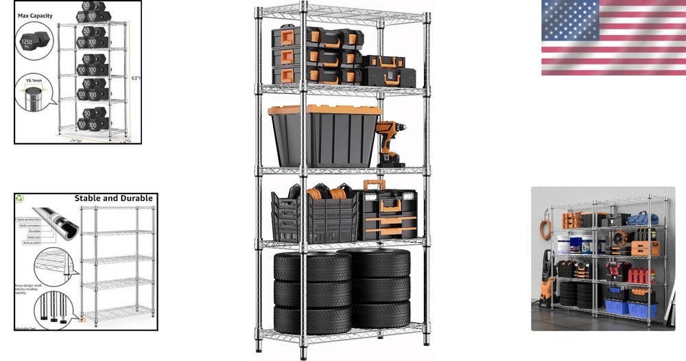 This shelving unit is a game-changer for storage! Super sturdy with its carbon steel frame, and each tier holds up to 250 lbs—perfect for heavy kitchen appliances, garage tools, or pantry goods. The open wire design keeps things visible and organized, and assembly was a breeze. Love how versatile it is—works in any room! Highly recommend for anyone needing extra storage space.