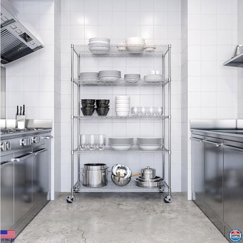 Seville Classics UltraDurable Heavy Duty NSF Solid Steel Wire Rack Storage Unit Organizer for Garage, Warehouse, Office, Restaurant, Classroom, Kitchen, 5-Tier Shelving, 48" W x 24" D Description Maximize your storage potential with the Seville Classics UltraDurable® 5-Tier Commercial-Grade Steel Wire Shelving System. Crafted from industrial-strength, NSF-certified steel, this versatile shelving unit measures 60”W x 24”D x 76”H and supports up to 800 lbs. per shelf, making it perfect for any workspace. Easily adjustable and equipped with heavy-duty wheels, this system combines durability and convenience for all your organizing needs. Product reference: B07BT69ZKS. Features Ultradurable DIMENSIONS - Overall dimensions are 48"W x 24"D x 76"H (72”H on leveling feet). 5 ADJUSTABLE SHELVES - 48" x 24" commercial-grade heavy-duty shelves are height adjustable at 1” increments. WEIGHT CAPACITY – 800 lbs. per shelf (4,000 lbs. total on leveling feet and 500 lbs. total on wheels). NSF-CERTIFIED STORAGE - Certified by the NSF to NSF/ANSI Standard 2 - Food Equipment for use in dry environments. INDUSTRIAL GRADE STEEL – Solid steel construction for both home, business, and commercial use. CONVENIENTLY MOBILE – Durable 4" wheels (2-locking) with metal hardware allow for easy mobility; bonus leveling feet included. Shipping Free & Fast Shipping: We offer free shipping to most of the USA with a normal delivery time of 3-7 days. However, due to the current situation, additional delivery time (up to 3 weeks) may be required for some items. Alternative Carriers: We may use alternative carriers (e.g., USPS, FedEx, UPS) to ensure your package arrives safely and on time. Due to the use of multiple carriers, we are unable to provide a tracking number automatically. Handling Time: Orders are processed and shipped within 1-2 business days of receiving cleared payment. Shipping Restrictions: Shipping to Alaska, Hawaii, Puerto Rico, Guam, and other US territories may incur shipping charges or delivery restrictions. Please contact us before ordering, or your order can be refunded/cancelled. State Restrictions: Certain items may not be shipped to California due to state regulations. Contact for Tracking Updates: If you require tracking updates or have any concerns about the delivery of your order, please feel free to contact us, and we will be happy to assist you. Return Policy 30-Day Hassle-Free Returns: If you are not completely satisfied with your purchase, you can return the item for free within 30 days of receiving it for a full refund or exchange. Easy Return Process: Contact us, and we will provide you with a prepaid return shipping label and detailed instructions. No Restocking Fee: There are no restocking fees for returns. However, the buyer is responsible for return shipping costs if the return is not due to a seller's error. Refund Processing: Refunds will be processed within 1 business day of receiving the returned item in its original condition. Payment We accept all major credit cards, PayPal, and Pay for your convenience. Your payment information is secure and encrypted to ensure a safe and seamless transaction. Please complete your payment within 3 days of purchase to avoid any delays in shipping. Feedback Your feedback is extremely important to us. We strive to provide the best products and customer service possible. If you are satisfied with your purchase, please take a moment to leave us a positive review. If you have any concerns or issues with your order, please contact us before leaving negative fee...