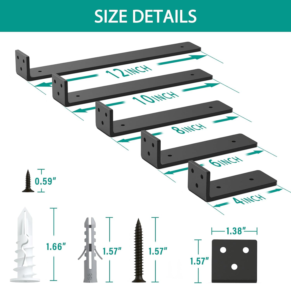 Store New Arrivals Add to Favorite View Feedback Contact Shelf Brackets, Heavy Duty Floating Shelf Bracket 6 Inch for 2×4” Wood Stud, 4 Pack L Brackets for Shelves, Black Metal Wall Shelving Brackets, Shelf Support Brackets, 160 Lb. Load Capacity Description Item model number GV-3KSB6IN4PB Style Black 4 Pack Finish Frosted Mounting Type Wall Mount Color Black Product Dimensions 3.74 x 1.97 x 7.09 inches Material Iron Country of Origin China Item dimensions L x W x H 3.74 x 1.97 x 7.09 inches Item Weight 2.84 pounds Batteries Included? No Batteries Required? No Size 6 Inch Finish Type Frosted Included Components Floating Shelf Brackets 【Suitable For 2*4” Wood Studs】Goovilla hidden shelf brackets is desiged with a 1.57*1.38” backplane. The small size and 3 close together screw holes match the narrow 2×4 inch (actual size is 1.5*3.5” ) wood studs thoroughly. 【Standard 90° bending】In order to ensure that each shelf bracket can be at 90° to the maximum extent possible, we add a rigorous picking process before the shelf brackets are packaged. The standardized 90-degree design is so important that it’ s the objective factor in ensuring that items remain level and do not tip over after being placed on the board(board is not included). 【Heavy Duty Iron & Durable Coating】Our floating shelf hardware is made of 1/5” thick, heavy-duty iron, stamped and bent in one piece, no welds are not easy to break with better toughness. Each pair of heavy duty shelf brackets can hold up to 160 pounds of weight. The surface is covered with a thick layer of black frosted coating. It increases the friction between the board and the bracket, on the other hand, it is more waterproof and less prone to rust, which prolongs its service life. 【Complete Accessories & Easy to Install】Boards is no included. Provide all the screws needed for different wall mountings, and extra spare screws for unexpected situation. They can achieve strong grip on wall surface. And a spirit level is also included to measure as well as keep the brackets for wood shelves balanced during installation. Detailed installation instructions are provided. Just follow the steps, this wall mount shelf bracket can be installed even by someone without experience. 【For Wood & Plaster & Concrete Wall】No need to worry about you can’t use our black shelf bracket on the wall you want to. These metal shelf brackets can be used on wooden wall, drywall and hard concrete wall. The screws used for wooden wall and plaster walls are the same and are explained in detail in the instructions. 【Unrestricted Space Usage】We provided 4 in, 6in, 8in, 10inch and 12inch wall shelf brackets. Pick the right bracket or use it in combination depending on the actual space or the size of the planks. Our wall brackets for shelves is not limited to kitchen use only, is also for living rooms, bedrooms, bathrooms, storage rooms, utility rooms, checkrooms, laundry room and corners to store green plants, photo frames, handwork, books, toiletries, storage baskets, sundries or to be a cat climbing frame. Goovilla ABOUT US We offer the best prices around on high quality products. Our E-store includes media such as books, movies, music and games while offering electronics, toys, sporting apparel, clothing, tools, general home, garden items and more. SHIPPING We are always working hard to ensure your package arrives as soon as possible. Please understand that some factors like weather, high postal traffic, and the performance of shipping companies are outside of our control. We offer free shipping to the lower 48 states and ship within 2 business days of payment, usually sooner. We do not accept P.O. Boxes. Please provide a physical address. RETURNS We offer a 30-Day Return Policy on items which you are not completely satisfied with. You have the option for a full-refund or an exchange of the item. No returns are available on items shipped outside of the USA. PAYMENT We accept PayPal. CONTACT US This page content is yet to come Please ad us to your favorite seller and visit again later Thank You CUSTOMER SATISFACTION We try our very best to make sure every customer is completely satisfied. If there's a problem, message us! We're happy to help.