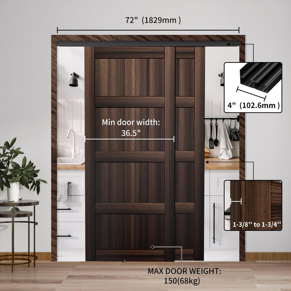 Store New Arrivals Add to Favorite View Feedback Contact Heavy Duty Bypass Sliding Closet Door Track Hardware 72", 6 FT Aluminium Pocket Door Track Rail Set, Smoothly and Quietly, for 2 Door System,Black Description Item model number XC40 72"-B Size Name XC40 72"-B Style Modern Color Black Product Dimensions 72 x 5.9 x 3.54 inches Material Aluminum Batteries Required? No Item Weight 9.13 pounds Batteries Included? No Size XC40 72"-B High Quality Materials: This bypass sliding door hardware is made of high-precision aluminum material, which is wear-resistant, rust proof, and corrosion-resistant. After testing, it can be used more than 150000 times. Max Door Weight: Track can be cut down to fit custom opening width.up to 150lbs (68kg) per panel; Door panel thickness: 1 3/8" and 1 3/4"; Min Door panel width: 36 1/2"x2doors. Flexible and Sturdy:Commercial grade precision extruded aluminum box track ensures door will not jump from track, convex rails on track allow flexible and free rolling. Built-in fascia hides the sliding hardware from view.When sliding, it is smooth and silent, without making annoying noises. Excellent Structure: Three wheel hangers ensure that all wheels can withstand the weight of the door, Quick release locking tab allows easy door installation/removal without dropping track. Service and : We provide 24-hour online professional service and a 6-year . We provide professional installation instructions and feel free to if you encounter any problems. Product Description Three wheel hangers The design of the three wheels is more hidden, more stable, smoother to slide, and more sturdy. Adjustable floor guide The adjustable panel thickness of the floor guide is 1 3/8 "and 1 3/4", keeping the door in place. Aluminum box track Commercial grade precision extruded aluminum box track ensures door will not jump from track, convex rails on track allow flexible and free rolling. Door Stopper Protects and cushions the door. Can the main length of a track be cut? Yes, you can cut it to the length you want. What material is this sliding closure door hardware made of? Aluminum track. Is it hidden? Yes, completely hidden, no accessories visible. Is the installation complex? Not complicated, and we provide the most professional installation guidance and detailed installation instructions. SONGYUNG Add to Cart Add to Cart Add to Cart Add to Cart Add to Cart Customer Reviews 2.8 out of 5 stars 3 4.1 out of 5 stars 17 4.1 out of 5 stars 17 4.1 out of 5 stars 17 4.3 out of 5 stars 16 4.7 out of 5 stars 69 4.3 out of 5 stars 16 Price — $139.99 $ 139 . 99 — $159.99 $ 159 . 99 $59.99 $ 59 . 99 $115.99 $ 115 . 99 $59.99 $ 59 . 99 Material&Finish Galvanized Steel Aluminum+Wood Aluminum+Wood Aluminum+Wood High-precision Aluminum High-precision Aluminum High-precision Aluminum Max Door Weight 60lbs 98lbs 98lbs 98lbs 220lbs 150lbs 220lbs Number of doors 2 Doors 1 Door 1 Door 1 Door Single Door 2 Doors Single Door Color Silver Silver Silver Silver Black Black Silver Durability 100000 workcycles 100000 workcycles 100000 workcycles 100000 workcycles 150000 workcycles 150000 workcycles 150000 workcycles for Door Thickness 3/4 inch to 1-3/8 inch 1" to 1-3/4" 1" to 1-3/4" 1" to 1-3/4" 1'' to 1-3/4'' 1 3/8" and 1 3/4" 1'' to 1-3/4'' ABOUT US We offer the best prices around on high quality products. Our E-store includes media such as books, movies, music and games while offering electronics, toys, sporting apparel, clothing, tools, general home, garden items and more. SHIPPING We are always working hard to ensure your package arrives as soon as possible. Please understand that some factors like weather, high postal traffic, and the performance of shipping companies are outside of our control. We offer free shipping to the lower 48 states and ship within 2 business days of payment, usually sooner. We do not accept P.O. Boxes. Please provide a physical address. For shipping outside of the continental USA, we only use eBay's Global Shipping Program.The item is shipped to KY and then sent to the rest of the world. International customers are responsible for all duties and taxes. Continue to check out in order to calculate costs for shipping the item to your country. Messages regarding eBay's Global Shipping Program MUST be directed at eBay EXCLUSIVELY. RETURNS We offer a 30-Day Return Policy on items which you are not completely satisfied with. You have the option for a full-refund or an exchange of the item. No returns are available on items shipped outside of the USA. PAYMENT We accept PayPal. CONTACT US This page content is yet to come Please ad us to your favorite seller and visit again later Thank You CUSTOMER SATISFACTION We try our very best to make sure every customer is completely satisfied. If there's a problem, message us! We're happy to help. WE ACCEPT Copyright © 2021 AutoDS. | All Rights Reserved