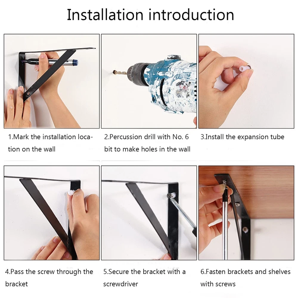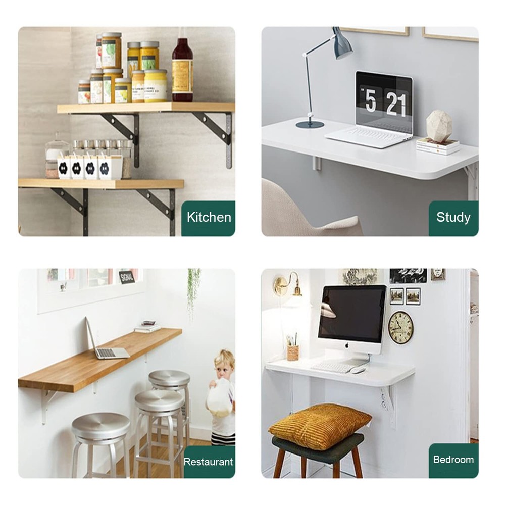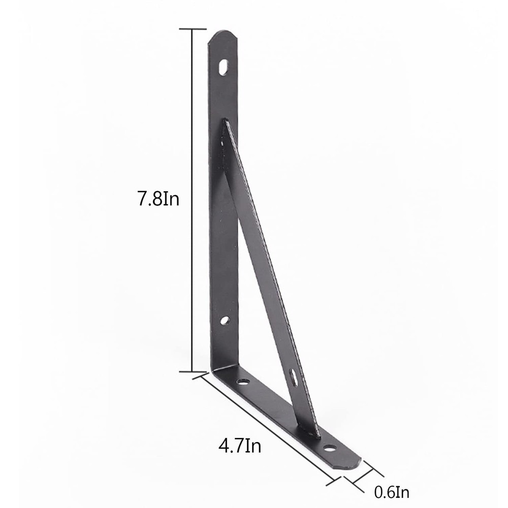 【8 Inches Shelf Brackets】: 4 Pack-7.8 x 4.7 inch shelf brackets,including Mounting Hardware.These brackets are designed to support shelves from 8 inches to 10 inches deep. 【Durable and High Quality】:Our shelf bracktets are made from premium steel, characterized by good impact resistance and no paint off. Widely used in a variety of rooms in a home, including the garage, kitchen, laundry room, backyard, and more. 【Rust-proof Coating】 Sturdy steel material with a black -coated finish is durable, chip- and corrosion-resistant. The smooth and rounded surface makes it easy to maintain. 【Easy to install】: The shelf brackets are easy to install, Each arm has 2 holes for screw intallation, you can use mounting hardware we provide to install it. 【Quality Services】:We have high efficiency after-sales service. If you have any questions in the process of using, please feel free to us. Our team will help you solve the issues ASAP