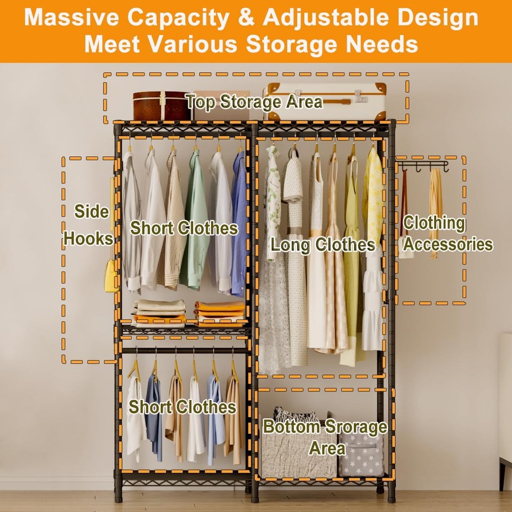 $ 45.58Heavy Duty Clothes Rack Rolling Clothing Racks for Hanging Metal Garment Racking