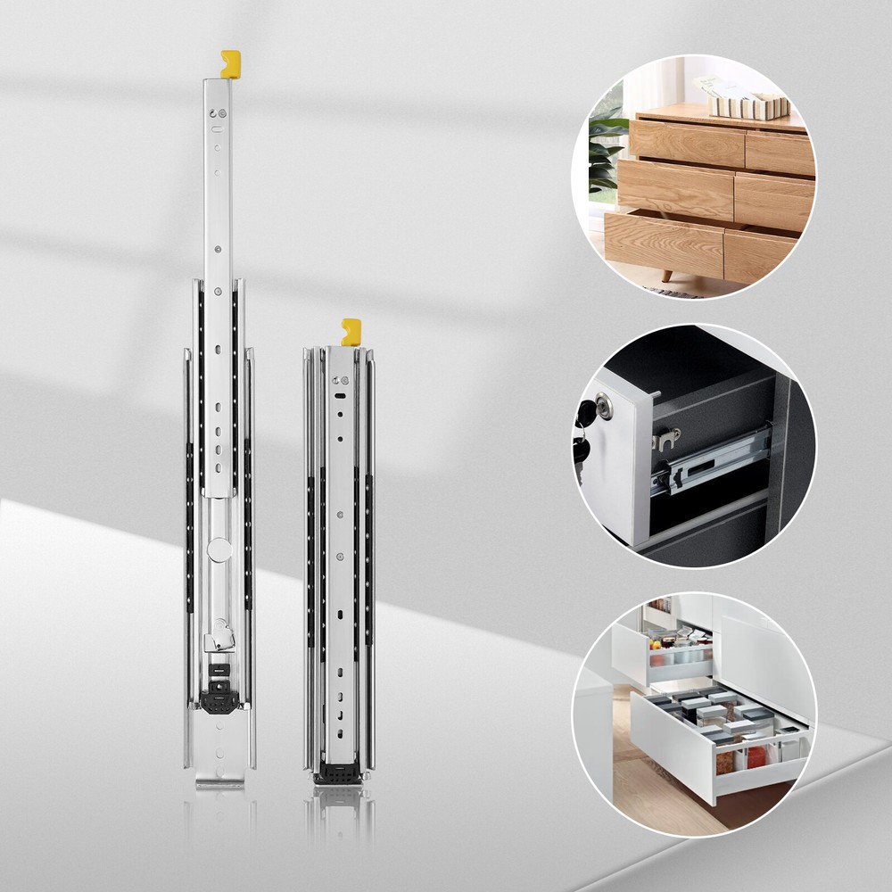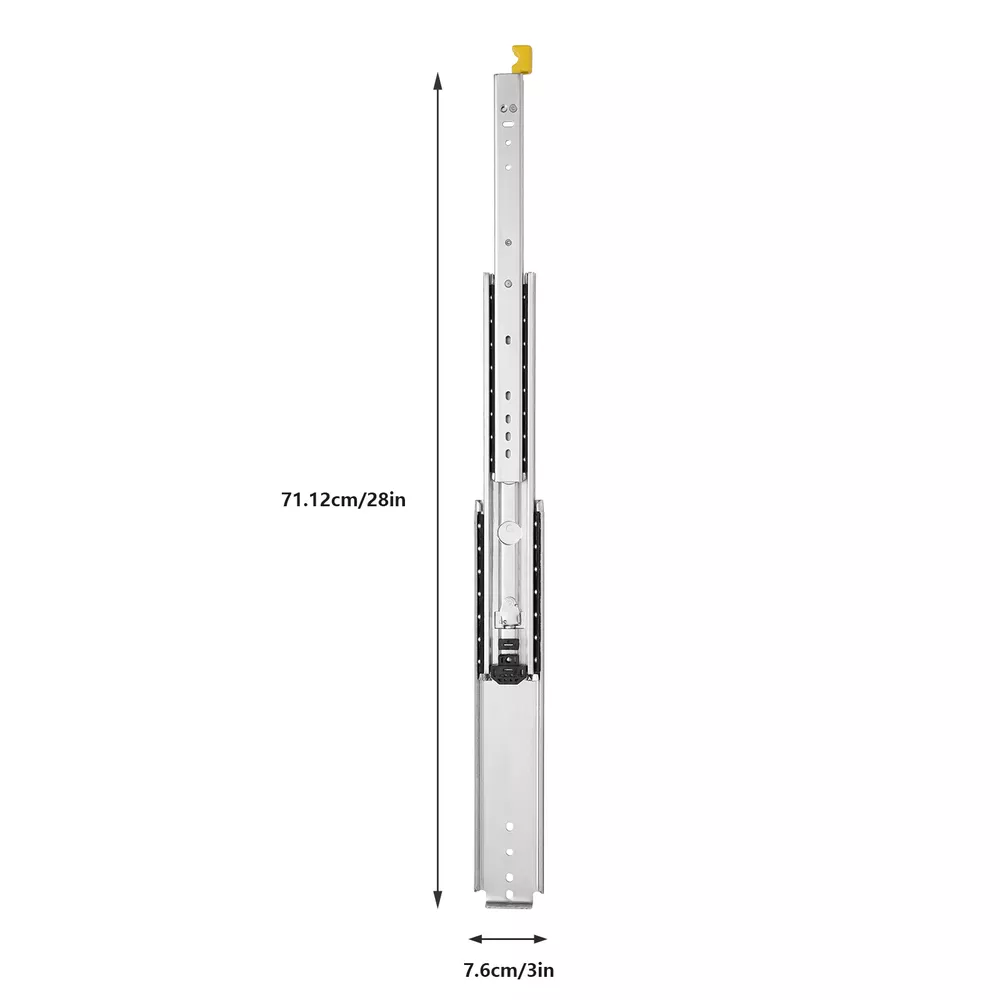 Description This heavy-duty drawer slide is made of cold-rolled steel Q235 which is durable and has a long service life. Cold-rolled steel has good corrosion resistance and heat resistance, so it won't rust or jam under proper use. This heavy-duty drawer slide has double rows of solid steel balls to ensure a smooth and silent push and pull. Specification -Style: Simple, Modern -Material: Cold Rolled Steel Q235 -Color: Silver -Quantity: 2 -Process: Galvanized Finish -Load-Bearing Capacity: 226.8kg/500lbs -Slide Length: 30.48cm/12in / 35.56cm/14in / 55.88cm/22in / 152.4cm/60in -Slide Width: 7.6cm/3in -Package Size: 160*18*6cm/63*7.08*2.36in -Gross Weight: 3.3kg/7.33lbs / 3.7kg/8.22lbs / 5.8kg/12.89lbs / 15kg/33lbs Package Included 1 Pair of Heavy-Duty Drawer Slides Key Features Excell Pair Heavy Duty Drawer Slides Ball Bearing Full Extension With Lock 12 in-60 in Pair Heavy Duty Drawer Slides Ball Bearing 12 in-60 in Full Extension With Lock Description This heavy-duty drawer slide is made of cold-rolled steel Q235 which is durable and has a long service life. Cold-rolled steel has good corrosion resistance and heat resistance, so it won't rust or jam under proper use. This heavy-duty drawer slide has double rows of solid steel balls to ensure a smooth and silent push and pull. Key Features Excellent Material: This heavy-duty drawer slide is made of cold rolled steel Q235 which is durable, sturdy, rust-resistant, not easily deformed, and has a long service life. After testing, the number of times the slide rail is opened and closed is as high as 100,000 times. Push and Pull Silent: This heavy-duty drawer slide has double rows of solid steel balls to ensure a silent and smooth push and pull, which is very thoughtful. Even if installed in the bedroom, it will not disturb you. Lock Function: This heavy-duty drawer slide comes with a locking device that prevents the drawer from accidentally sliding out. You can unlock the drawer by gently tugging the lock handle which is very convenient. High Load-bearing Capacity: Its high-quality cold-rolled steel material and stable structure provide strong stability with a maximum load capacity of 226.8kg/500lbs. You can use it with confidence. Full Extension: This 3-fold heavy-duty drawer slide support access to the entire space, and drawers can be pulled out completely for easy storage of items. The pull-out distance is much longer than the double-section ones for ease of use. Easy to Install: The structure of this heavy-duty drawer slide is simple and is a one-piece slide, you can easily install it. Space Saving: The size of this heavy-duty drawer slide is only 60*3in which is lightweight and easy to carry. It does not take up much space when installed on the drawer. Easy To Clean: Because of its smooth surface, you only need to wipe it with a cloth, and then it can shine like a brand-new one. Customer Service: We aim to provide quality products and services. If you have any problems, please feel free to contact us. We will reply and solve the problem for you as soon as possible. Details ① Galvanized Finish: The surface of this heavy-duty drawer slide is galvanized, which is anti-oxidation and anti-rust. ② Buffer Cushion: This heavy-duty drawer slide has a buffer cushion, which can prevent the collision between the three slides and play a buffer and silent effect. Application This heavy-duty drawer slide is suitable for modifying RV equipment, heavy-duty tool cabinets, shelves, cabinets, industrial drawers, trucks, vending machines, etc. Installation Steps 1. Find two horizontal lines in the installation position on both sides of the cabinet, and fix the outer fixed slides to the horizontal lines on both sides with screws; (Note: the positioning of both sides must be parallel). 2. Completely pull the slide rail, and fix the drawer to the inner fixed rail with screws according to the horizontal line. 3. The installation is finished. Specification -Style: Simple, Modern -Material: Cold Rolled Steel Q235 -Color: Silver -Quantity: 2 -Process: Galvanized Finish -Load-Bearing Capacity: 226.8kg/500lbs -Slide Length: 30.48cm/12in / 35.56cm/14in / 55.88cm/22in / 152.4cm/60in -Slide Width: 7.6cm/3in -Package Size: 160*18*6cm/63*7.08*2.36in -Gross Weight: 3.3kg/7.33lbs / 3.7kg/8.22lbs / 5.8kg/12.89lbs / 15kg/33lbs Package Included 1 Pair of Heavy-Duty Drawer Slides Notes 1.Please note that the locking mechanism only works when the drawer is fully closed or fully open. 2.Please note that in order to ensure the safety of users, the heavy-duty slide rails cannot be disassembled. 3.Please note that screws are not included in the package, you need to purchase your own M4 and M6 half-round head screws. 4.Please note that the installation gap on both sides should be more than 20mm/0.79in. 5.Please allow the slight color difference caused by the shooting light and 1-3 cm error due to manual measurement, and make sure you do not mind before ordering. Payment Delivery details Terms of sales About us Contact us Payment We accept ebay payment 。 Fees such as import duties, taxes are not included in the item price or shipping costs. These charges are the buyer's responsibility. Delivery details Shipping: 2-9 working days to: USA Terms of sales We maintain high standards of excellence and strive for hundred percent customer satisfaction. Feedback is very important to us. We hope that you contact us immediately before you give neutral or negative feedback, so that we can address your concerns. It is impossible to address issues if we do not know about them! About us Your satis faction is our ultimate goal. We work hard to earn your trust and future business. Our certified technicians have tested each item before shipping. The unit comes with 1 year limited warranty on all manufacturing defects. a) If you receive a defective item, you may return it or ask for a discount. Please contact us within 14 days after you receive the package. b) What you returned must be intact and i