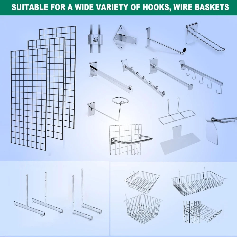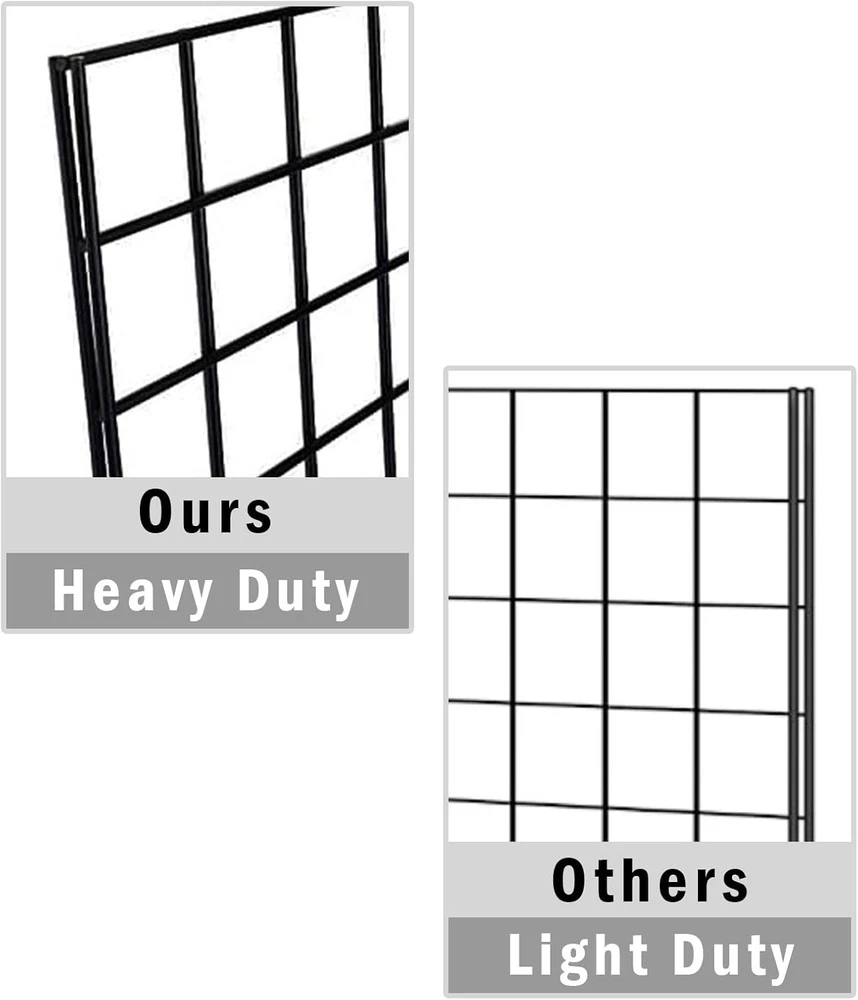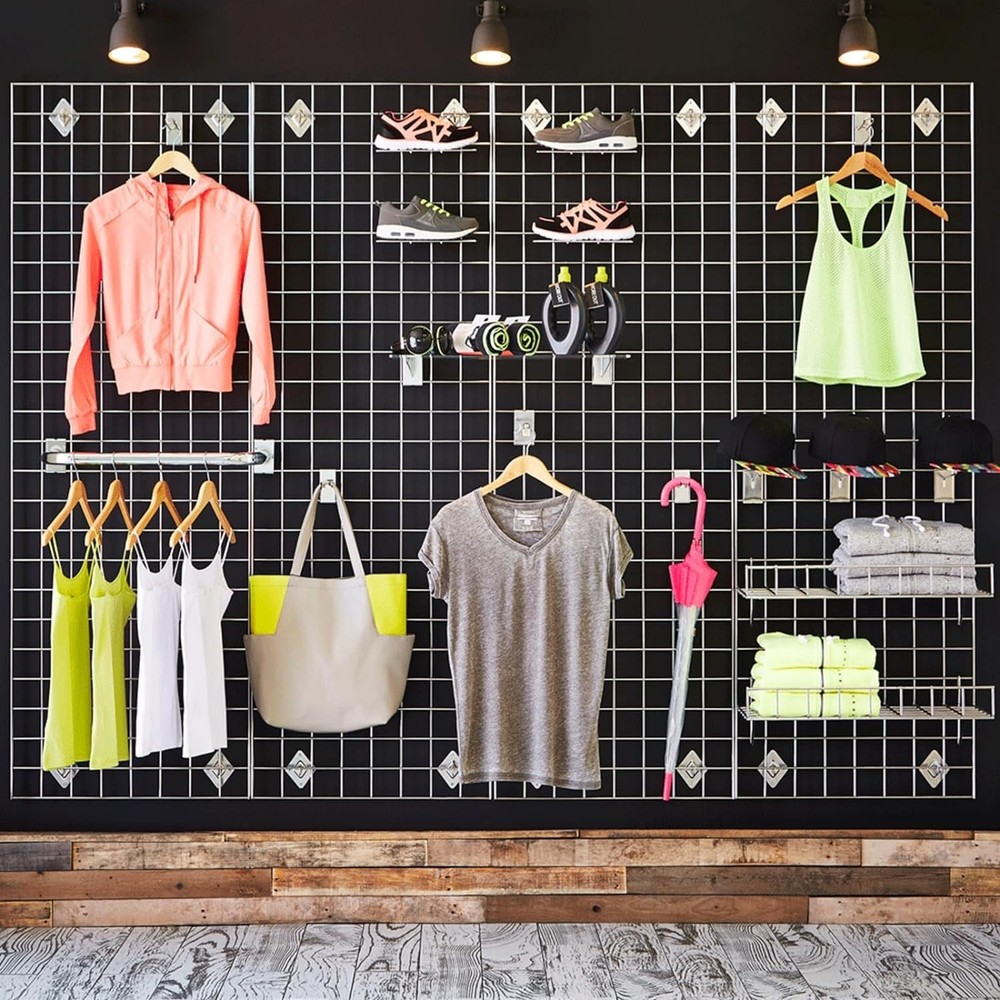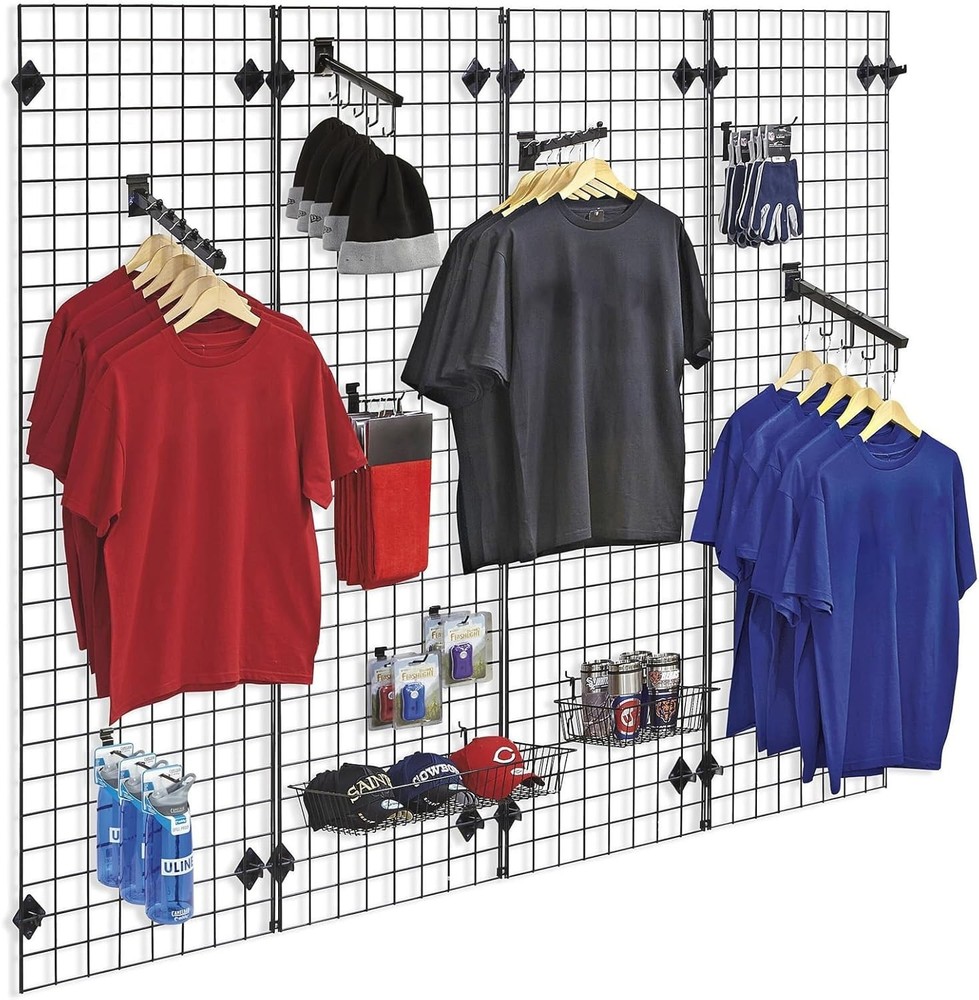 1. These grid wall panels are a game-changer for organizing and displaying items! The heavy-duty build feels super sturdy, and the 2x4 size gives plenty of space to hang clothes, tools, or accessories. Love that they can be mounted or used freestanding—super versatile for retail or garage setups. Super easy to assemble and the black finish looks sleek. Highly recommend for anyone needing extra storage or display space!