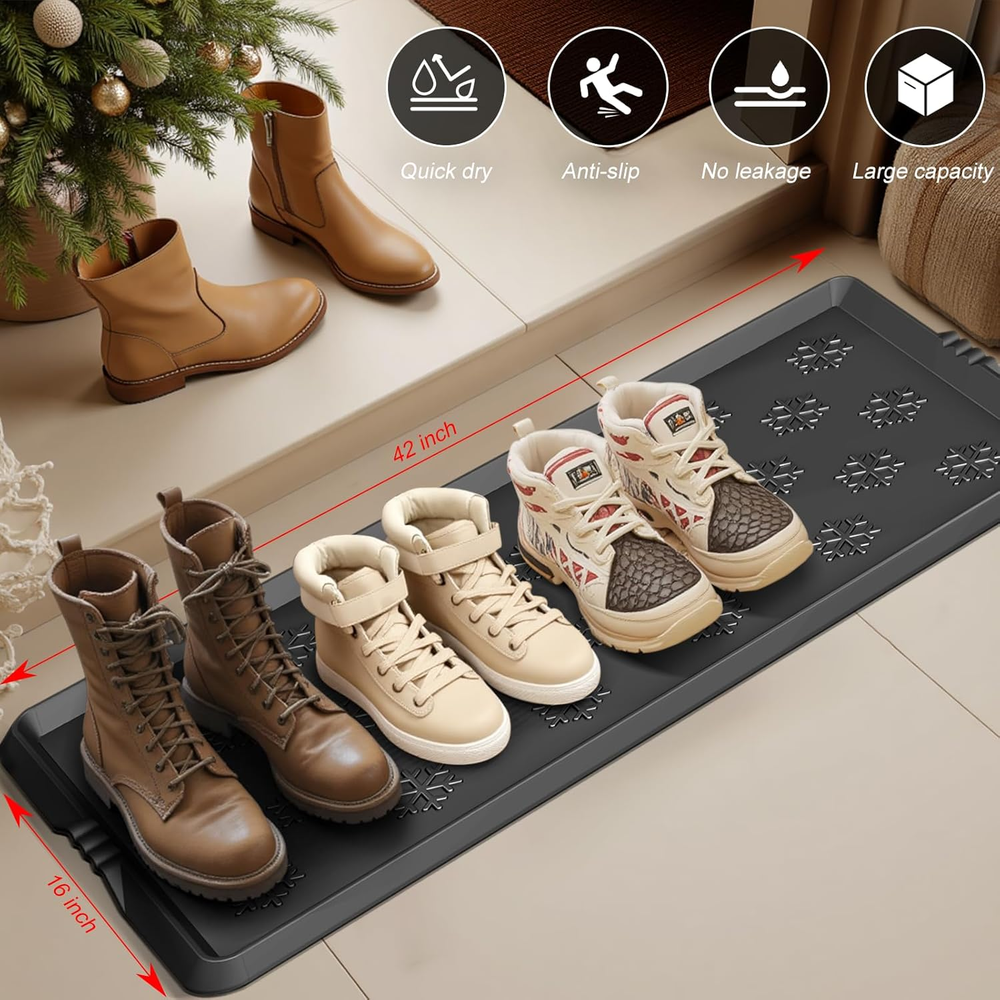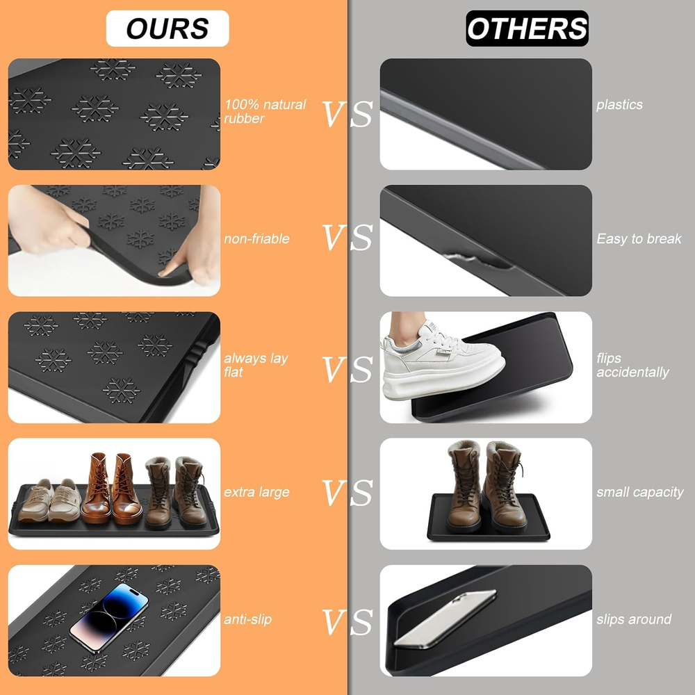 Store New Arrivals Add to Favorite View Feedback Contact Heavy Duty Boot Trays Natural Rubber Shoe Mat Tray for Entryway Large Boot Mat Tray Multi-Purpose for Outdoor Door Mats 16X42 Inch 2 Pack Description Color Black Material Rubber Item Weight 10.16 pounds Shape Rectangular Package Dimensions 17.99 x 5.35 x 4.96 inches Size 16" x 42" 2pack 【Perfect Size Boot Tray】The 32 inch design is larger than other small shoe matt tray for entryway, easily accommodating 3 pairs of large shoes, so that each pair of shoes has a place, no longer have to put shoes on the side to cause water stains to flow to the wooden floor, protect the wooden floor and make your doorway more tidy. 42 inches can accommodate 4 pairs of large shoes. We reserve 10 inches of space for each pair of shoes to fit most shoes 【Waterproof and Keep the Entrance Tidy】Are you worried that on rainy and snowy days, you will always be brought back with some mud and snow from your shoes that go out, staining and damaging your wooden floor? Hi friends, come and try our shoe tray, it can effectively capture dirt, mud and water, so that you can easily keep the entrance organized and clean, the surface snowflake texture is simple and stylish, and it can prevent the shoes from falling into mud and dirty water, keep the shoes dry 【Durable and Heavy Duty Boot Tray】Different from other boot mat tray, our rubber boot tray are made of natural rubber, which has better slip resistance, higher tear resistance and less odor, not easy to tear and bend. Plastic shoe tray and other materials shoe tray for entryway will not flatten, and even crack easily. Our shoe mat will not bend even if they step on the edge, which can better stay in place and keep the shape of the shoe tray. 【Multi-functional Boot Tray】Our multi-purpose boot tray can be used to store shoes, boots to keep the door tidy, and also to hold pet food spills and cat litter. It can also be placed in the garage, car trunk, storage of some car parts and other items. Rainy days can also be used to put rain boots and umbrellas, usually can also be used as a plant tray. 【Easy to clean】The rubberized material makes it easily resistant to dirt and mud, and it can be refreshed by simply rinsing it with water, and it won't fade for long-term use. If you are not satisfied with our indoor boot tray, you can ask Azadx directly and we will solve it for you, we just want you to get the product you like Product description ABOUT US We offer the best prices around on high quality products. Our E-store includes media such as books, movies, music and games while offering electronics, toys, sporting apparel, clothing, tools, general home, garden items and more. SHIPPING We are always working hard to ensure your package arrives as soon as possible. Please understand that some factors like weather, high postal traffic, and the performance of shipping companies are outside of our control. We offer free shipping to the lower 48 states and ship within 2 business days of payment, usually sooner. We do not accept P.O. Boxes. Please provide a physical address. RETURNS We offer a 30-Day Return Policy on items which you are not completely satisfied with. You have the option for a full-refund or an exchange of the item. No returns are available on items shipped outside of the USA. PAYMENT We accept PayPal. CONTACT US This page content is yet to come Please ad us to your favorite seller and visit again later Thank You CUSTOMER SATISFACTION We try our very best to make sure every customer is completely satisfied. If there's a problem, message us! We're happy to help.
