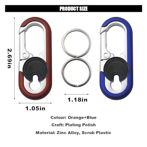 Return Policy Fast Delivery Trusted seller Heavy Duty Car Keychain for Men, Quick Release Anti-Loss Key Chain Clips Key Holder with Double Keyrings (Blue+Orange, 2PCS) Product Description 【High-Quality Material】:The men's car keychain is the perfect addition to your everyday essentials. Crafted from high-quality zinc alloy and stainless steel for long-lasting strength and resistance against scratches. The polished surface is electroplated, making it smoother and shinier, giving it a more textured and elegant look. 【Sturdy Rings Designed】:With two stainless steel key rings (1.18×0.09 inches), this heavy-duty car keychain allows you to organize your keys easily and meet the storage needs of different keys. The sturdy ring design helps you classify your keys scientifically and enjoy a more organized life. 【Creative Design】:The creative rotating disk design of the key ring allows the key ring to be installed or removed easily. Simply place the key ring on one end and turn the black disc in the middle to unscrew the key ring from the groove. 【Wide Application】:Perfect for car keychains, motorcycle keychains, home keychains, belt keychains, and more. It helps you stay organized and reduces the risk of losing your keys. 【Perfect Present】:Surprise your loved ones with this stylish and elegant car keychain. It easily clips onto belt loops or pockets, making it a practical and beautiful gift for birthdays or holidays. Shipping Returns Payment Shipping Shipping is FREE to all addresses other than APO/PO boxes in the lower 48 states. All our stock ships from US-based warehouses. Shipped via USPS or UPS (depending on location and package weight) Unless stated otherwise, all orders will ship within 24-72 hours of your payment being processed. Check our feedback to see the great reviews of FAST shipping we offer. Returns Seller does not accept returns Payment We currently accept payment via eBay managed payments only. Once payment is cleared, we will dispatch your shipment within 1-3 business days. Please refer to the "Shipping" tab for more information regarding shipping speed to your destination.