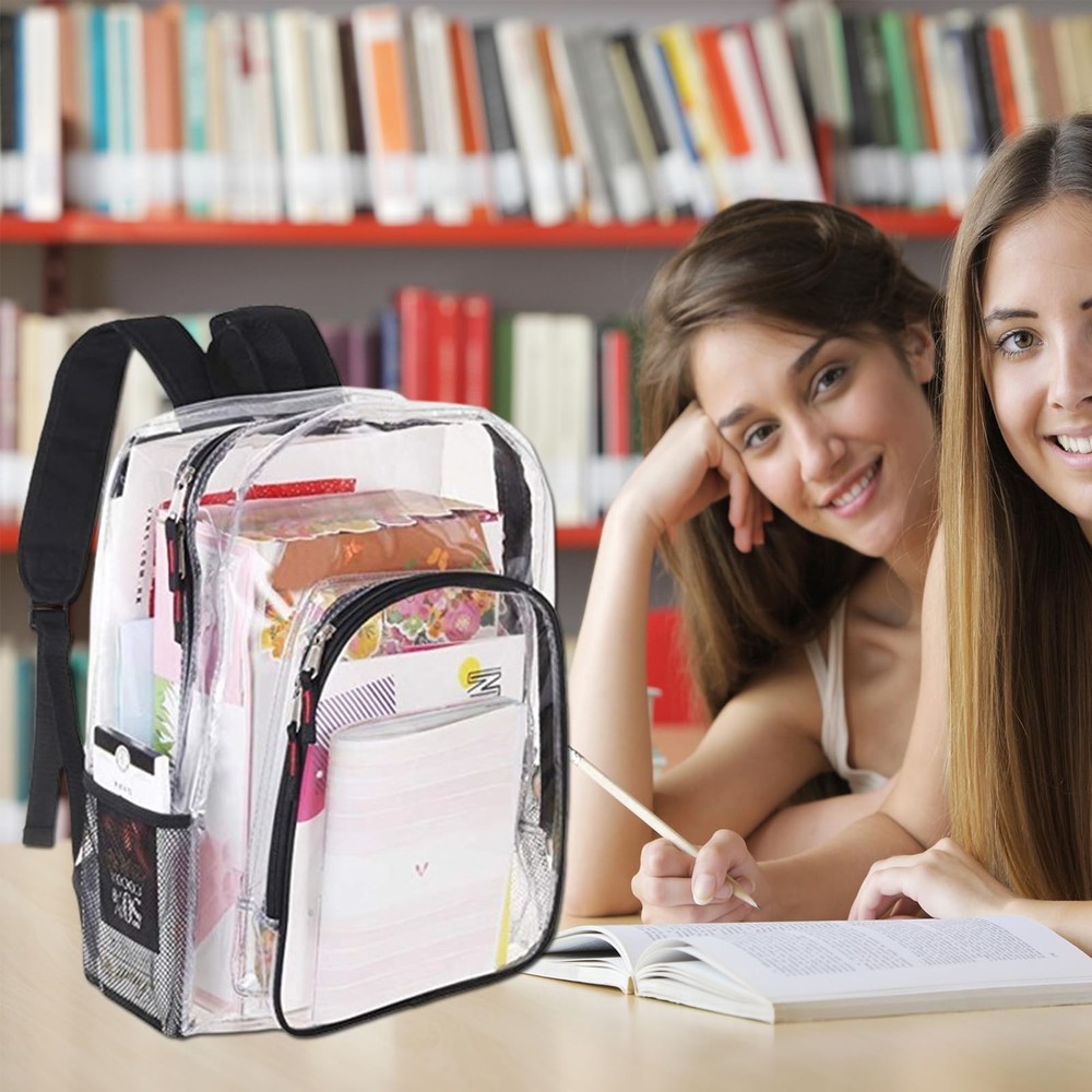 This clear backpack is a game-changer! Super sturdy and spacious, it holds everything I need for school, sports, or travel while staying totally see-through. The reinforced straps make carrying heavy books or gear comfortable, and the thick PVC material feels durable. Perfect for security checks, concerts, or just keeping my stuff organized—love how easy it is to find what I need without digging around!