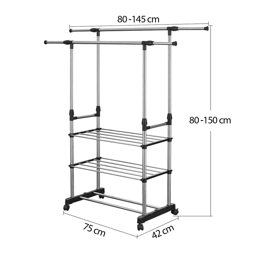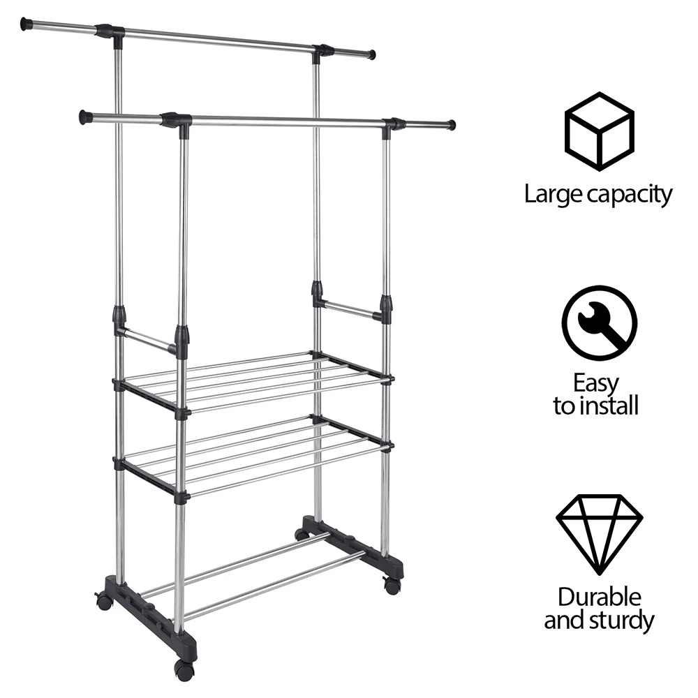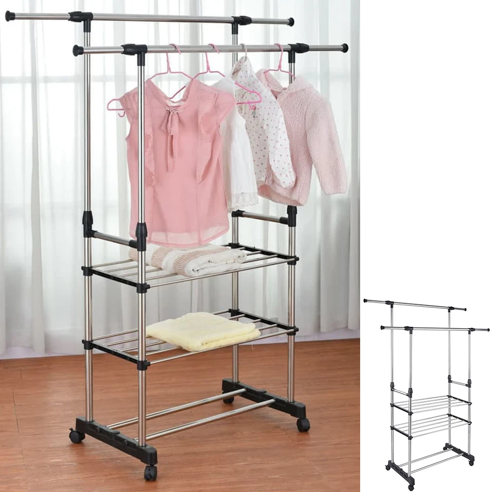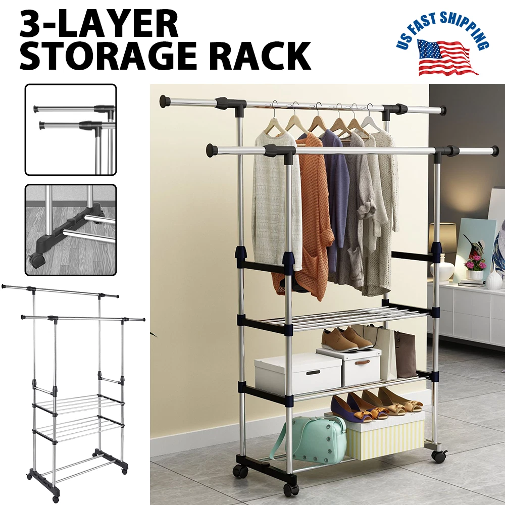Heavy Duty Clothing Garment Rack Rolling Clothes Organizer Double Rails Hanging