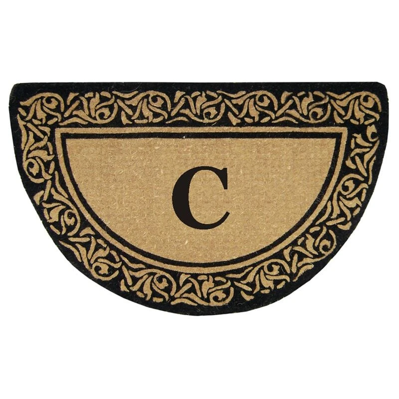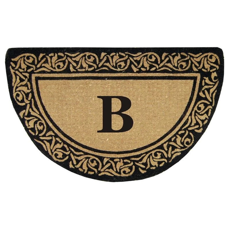 Naturally harvested coir fibers are hand woven in traditional looms and then sheared to create a dense pile that helps trap dirt and moisture. Elegant designs are hand stenciled on the mat using fade resistant dyes. Heavy coir backing keeps mat in place and locks the fibers in to minimize shedding. Coir fiber is naturally mold and mildew resistant. With an almost two-inch pile height, this mat has an elegant profileColors/finish: Natural, black Materials: 100-percent coir fiberQuantity: 1Setting: OutdoorDimensions: 1.5 inches high x 22 inches wide x 36 inches long Free Shipping Over $49.99* Details Heavy Duty Coir Decorative Bella Border Monogrammed Doormat Product Description: Naturally harvested coir fibers are hand woven in traditional looms and then sheared to create a dense pile that helps trap dirt and moisture. Elegant designs are hand stenciled on the mat using fade resistant dyes. Heavy coir backing keeps mat in place and locks the fibers in to minimize shedding. Coir fiber is naturally mold and mildew resistant. With an almost two-inch pile height, this mat has an elegant profile Colors/finishNatural, black Materials100-percent coir fiber Quantity1 SettingOutdoor Dimensions1.5 inches high x 22 inches wide x 36 inches long