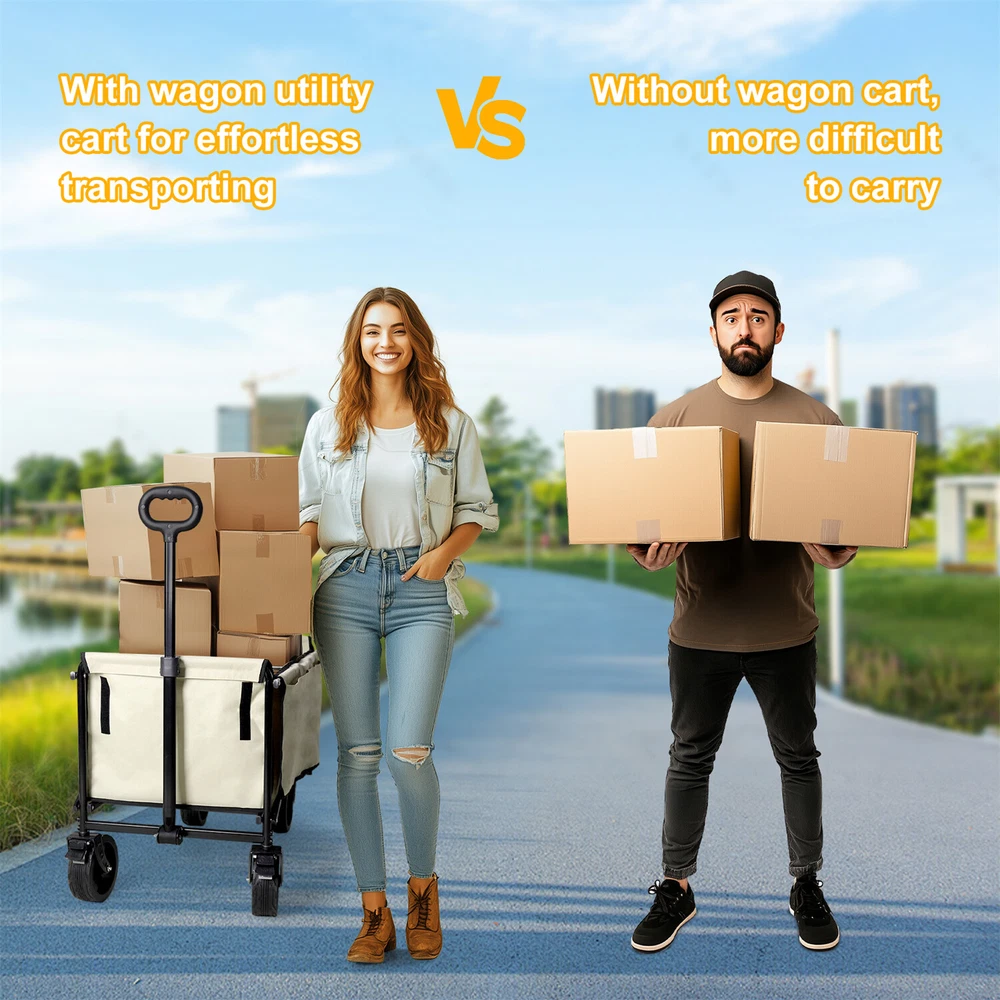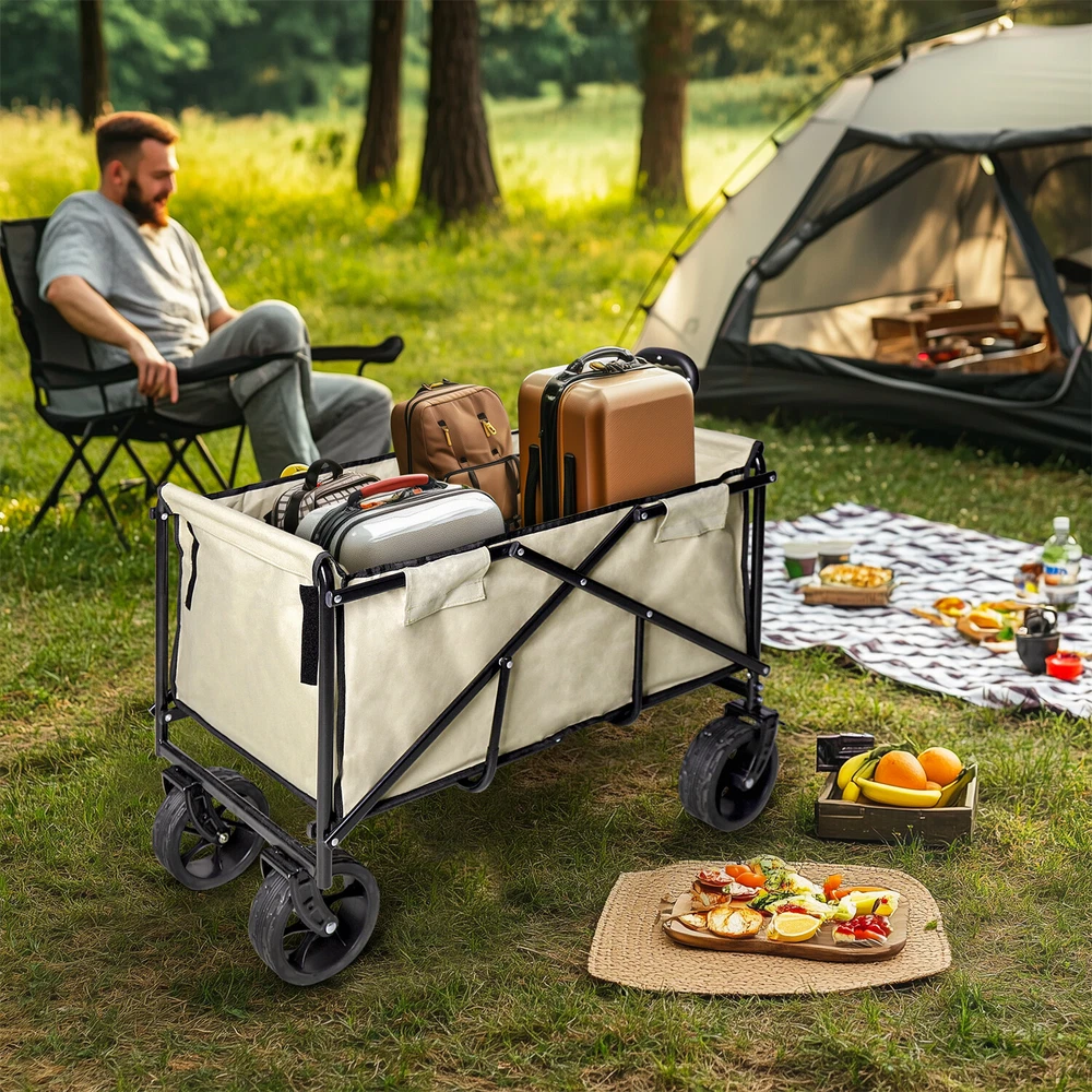 Heavy Duty Collapsible Wagon Cart w/ Wheel Camping Beach Cart for Sports Outdoor Heavy Duty Collapsible Wagon Cart w/ Wheel Camping Beach Cart for Sports Outdoor US SELLER, FAST SHIPPING! Features: Conveniently carry up to 440 lbs, making it suitable for carrying bulky items. Designed with all-terrain wheels and pull handle ensure easy maneuverability. Shock absorbing wheels, minimize jolts, roll smoothly on almost all the terrains. Large wheels ideal for soft sand, grass, gravel, uneven surfaces without getting stuck. 360 rotating wheels with locking brake, allowing for secure parking in any location. Equipped with wheels and brakes, enhance maneuverability, allows you park securely. Constructed from steel tube structure with powder coating for enhanced durability. Heavy duty iron frame construction assures durability, it won’t crack or break easily. Boasting a sturdy metal construction and 600D oxford cloth fabric for longevity use. Oxford fabric enhances durability, known for its excellent wear and tear resistance. The cart has an oxford canopy cover, effectively protects the items from rain, water. Cover envelops the entire structure for comprehensive protection against elements. High-strength steel combined with ABS plastic components, offers a solid foundation. With two extra side pockets design for holding all kinds of goodies, camping items. Easily foldable design, allowing for easy transport and storage in the car truck. Built with telescoping grip handle for effortless transport and comfortable pulling. Great for outdoor adventures, beach, camping trips, groceries, garden, other activities. Specifications: Type: Garden Cart Trolley Style: Contemporary Features: Foldable, Heavy Duty Materials: 70% Iron Pipe +20% Oxford Cloth +10% ABS Color: Light khaki & black Net Weight: 9.2kg/ 20.28 lbs Load Capacity: 200kg/ 440.92 lbs Product Dimension: L * W * H total 80.5x50x100cm/ 31.69x19.69x39.37 inch Interior Space: L * W * H 74x46x36cm/ 29.13x18.11x14.17 inch Package Included: 1 x Camping Wagon Cart 1 x Instruction Guide Payment Delivery details Terms of sales About us Contact us Payment 1.We accept payment by credit card, paypal, payoneer. 2.Upon on payment, please confirm your shipping address. Delivery details 1. All of our products are brand new. 2. All Mirror have passed drop test over 1.2m and quality inspection, ensures the mirror was shipped in good condition before shipment. Terms of sales 1.We are located in NJ, CA ,all the items will be shipped via USPS, UPS Ground, Fedex Ground with tracking number provided. 2. We cannot ship to Alaska, Hawaii & Puerto Rico Addresses. About us About Wisfor At Wisfor,we provide high quality LED bathroom mirrors,focus on the development and innovation of mirrorsand our company has over 10 years backed with professional service experience, and exports products to more than 130 countries around the world. There are severial series of mirrors, Bathroom Mirror with Light, RGB Frontlit &Backlit LED Mirror, Metal Frame Mirror,Decorative Wall Mirror,ect. And many shapes, rectangle, round, oval, and so on.We always focus on the development and innovation of high-quality LED bathroom vanity mirror, to meet your demand and to elevate personality and design tastes. Contact us 1. If you are satisfied with the transaction could you pls leave us a positive feedback 5-star that we will be appreciated. 2. Normally your email would get replied within 24 hours (Business Hours) and your issue will be followed up carefully till we 've reached an agreement. 3. If you have any questions or suggestions before opening a case or dispute ,or leaving any neutral or negative feedback, please contact us first,we will try our best to resolve your problem. Brand Wisfor MPN NMCJNMV85G Item Length 80.5cm Item Width 50cm Item Height 63cm Weight Capacity 200 KG Colour Light khaki & black Features Heavy Duty, Foldable, Heavy Duty Handles, Collapsible, Lightweight, Easy Assembly, Wheeled Material Steel, Fabric Type Trolley Cart Item Weight 9.2 kg Capacity 200KG Model Collapsable Manufacturer Warranty 1 Year Number of Items in Set 1 Size Large
