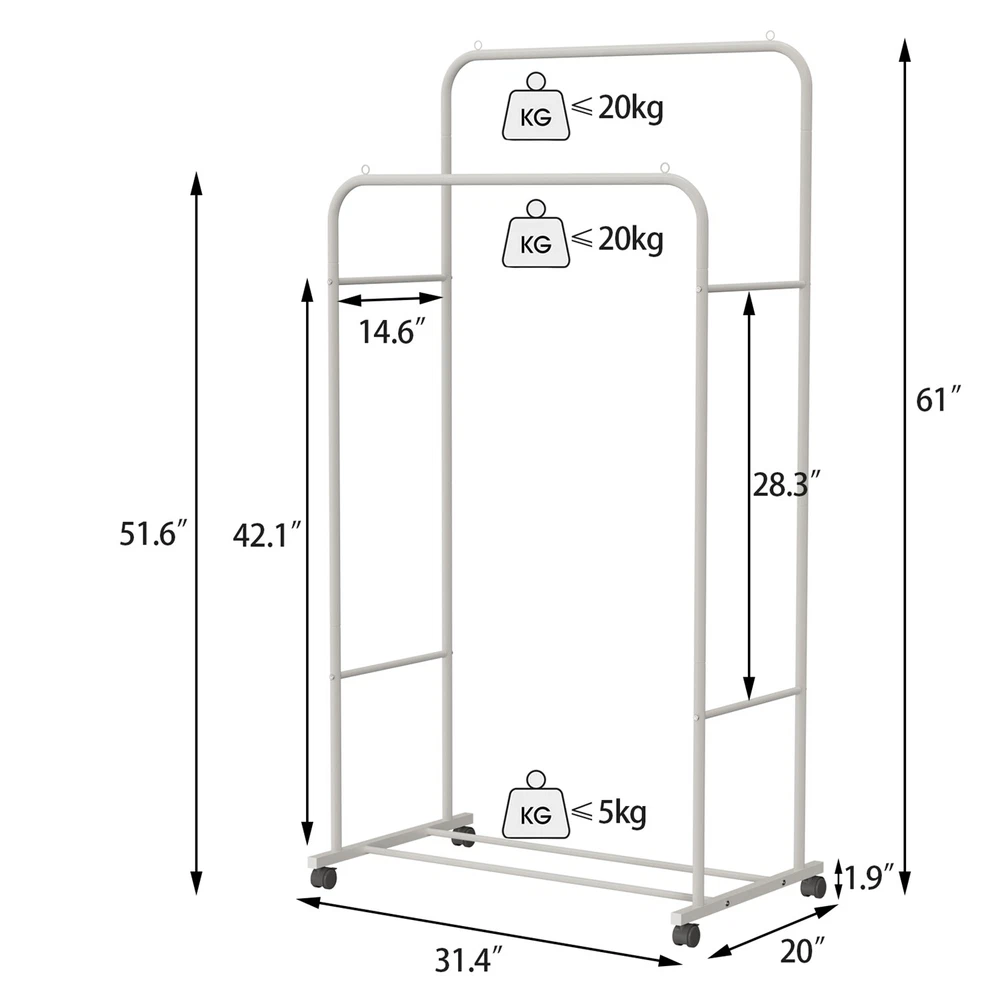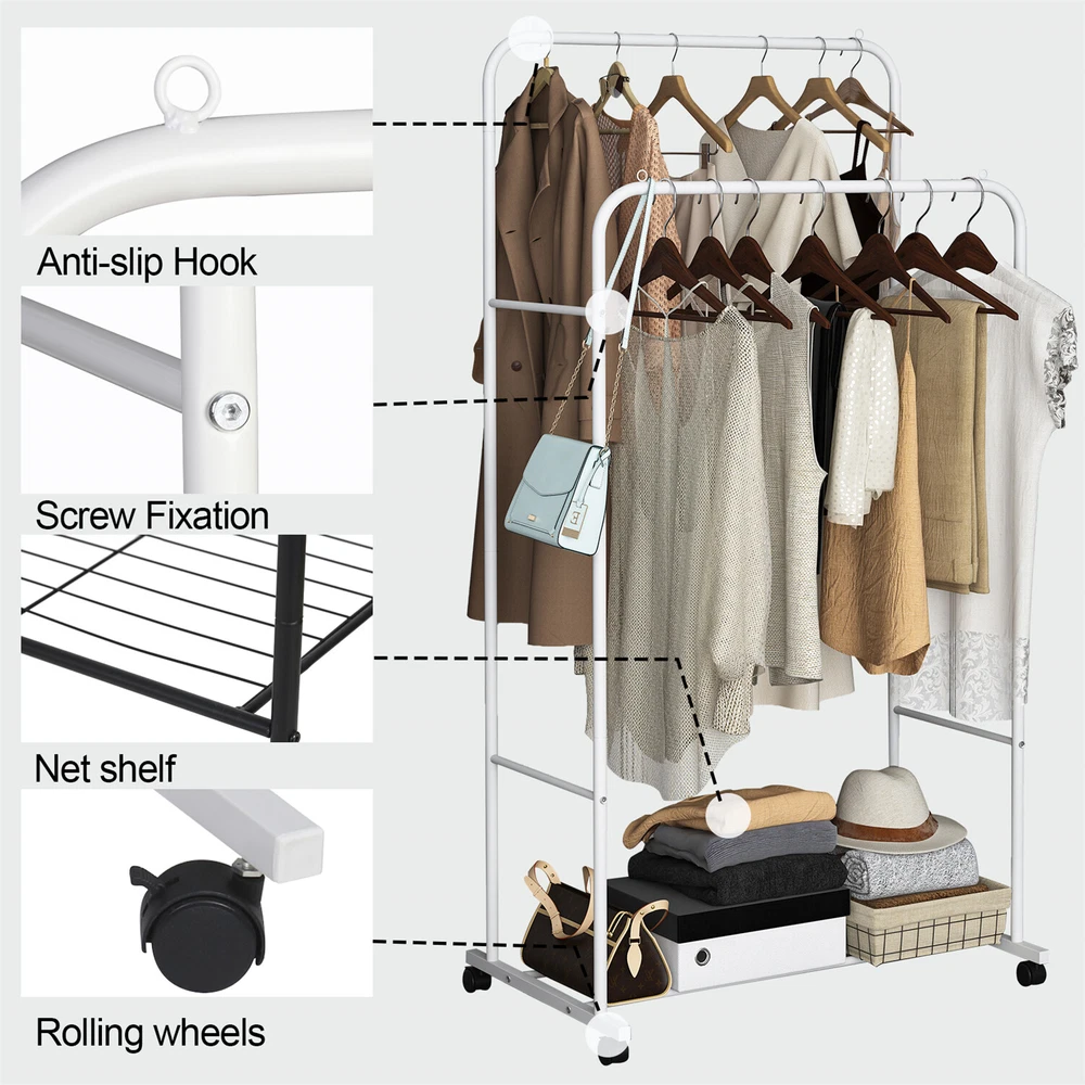 $ 25.131000LBS Clothes Rack Heavy Duty Clothing Rolling Garment Rack Double Hanging Rod