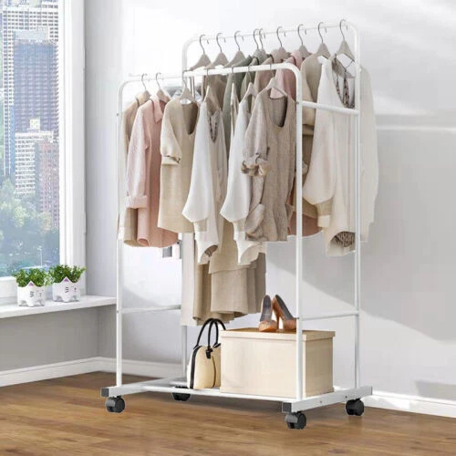 Heavy Duty Clothing Garment Rack Rolling Clothes Organizer Double Rails Hanging