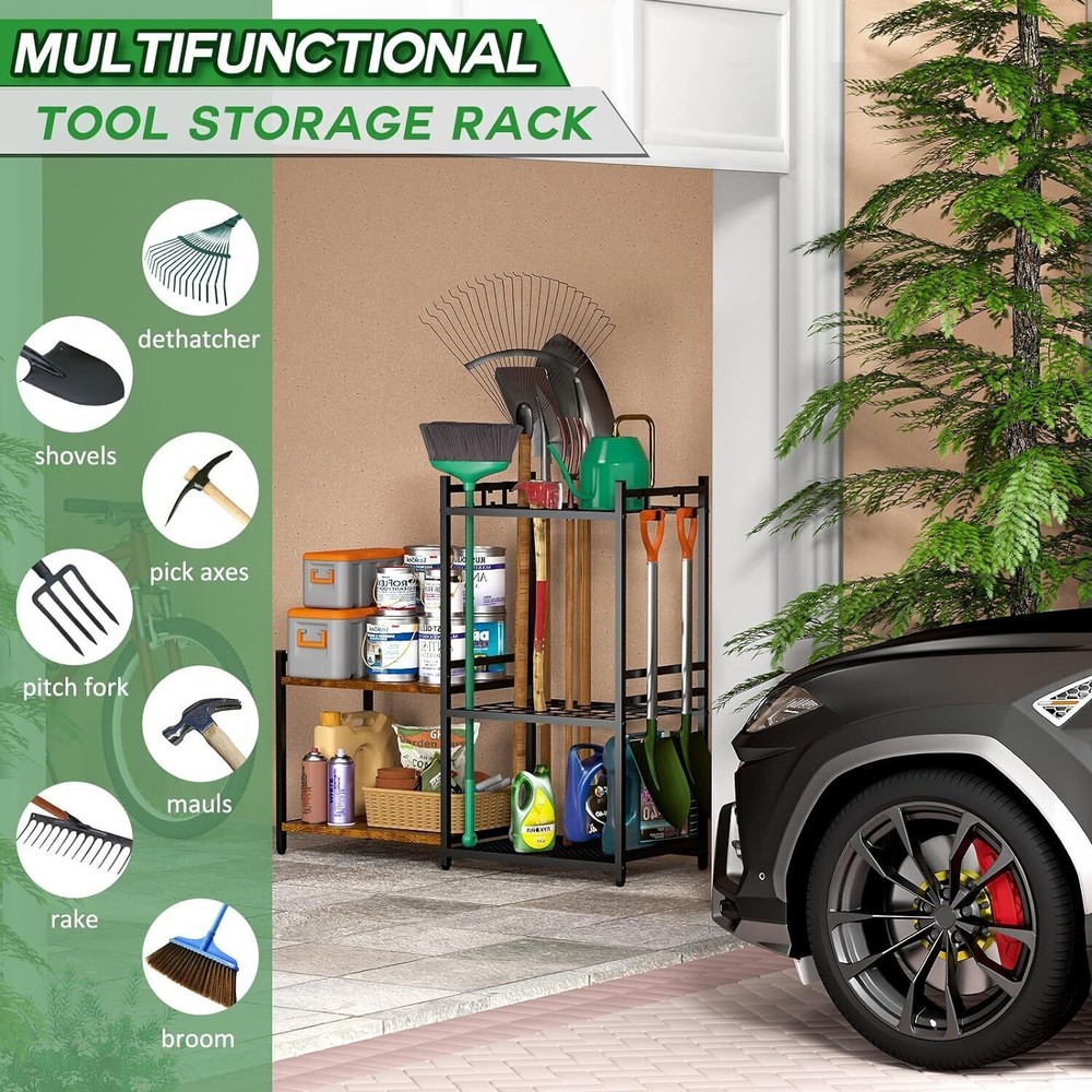 You may also like 3-Layer 5-Tray Metal Tool Box Cantilever Folding Red Storage Box Tool Organizer 68.31 USD 71.91 USD Free shipping 5% off Heavy Duty Toolbox Liner Non Slip Rubber Mat Drawers Cabinets & Workbench Black 44.41 USD 46.75 USD Free shipping 5% off 24-Drawer Plastic Storage Cabinet Tool Screw Battery Organizer 20"x6"x15" H New 58.88 USD 61.98 USD Free shipping 5% off Stackable Storage System 3 Piece Set Rolling Toolbox Portable Lightweight US 181.84 USD 191.41 USD Free shipping 5% off Heavy Duty Steel Campfire Ring Portable Collapsible Fire Pit W/ Storage Bag New 56.87 USD 59.86 USD Free shipping 5% off Material Metal Color black Special Feature Rust Resistant Product Dimensions 11.9"D x 33.3"W x 30.5"H Shelf Type Tiered Shelf About this item 【Efficient Garden Tool Rack】: Elevate your gardening experience with the DAOUTIME Efficient Garden Tool Rack. With 35 tool slots and two-tier wooden shelves, offers ample storage. The six movable hooks provide additional hanging options for easy access to frequently used tools. Equipped with adjustable feet, it adapts to any uneven surface. Simplify tool organization and arrangement with this practical garden tool holder, making your gardening tasks easier than ever before. 【Sturdy and Durable】: The garage tool organizer is constructed with a full-metal structure, providing stability and durability for tools of different sizes. It is built to be sturdy enough for both indoor and outdoor use. Compared to plastic tool racks, our tool rack is made from high-quality steel, offering rust resistance and corrosion durability. Rest assured, there is no risk of collapse. This garage organizer solution is meticulously designed to withstand the test of time and daily wear. Note: The product includes wooden shelves and should be protected from rainwater exposure. 【Multi-functional Design】: The garden organizer seamlessly adapts to garages, gardens, sheds, and backyards. It efficiently organizes gardening, yard maintenance, cleaning, and lawn tools. From shovels and leaf rakes to bow rakes, mops, and brooms, it accommodates a wide range of tools with ease. The thoughtfully designed storage systems simplify organization, maximize space utilization, and improve work efficiency. 【Easy to install and use】: This yard tool organizer is designed for easy installation, with clear instructions and necessary installation accessories included. You can quickly assemble it and adjust the position of the shelves and hooks to fit your specific needs. The user-friendly design allows for effortless customization, allowing you to create a personalized organization system. With its simple operation, this tool organizer simplifies the storage and retrieval of your tools, making your gardening tasks more efficient and enjoyable. You may also like 20000mAh LED Camping Lantern Rechargeable Waterproof Power Bank Emergency Light 50.63 USD 53.29 USD Free shipping 5% off Battery Powered Electric Garden Sprayer W/ Adjustable Nozzles Lawn Cleaning New 57.65 USD 60.68 USD Free shipping 5% off Tactical Backpack Cooler Soft Insulated Lightweight Portable Bag Camping Hiking 61.26 USD 64.48 USD Free shipping 5% off File Cabinet W/ Lock Printer Stand A4 Letter Organizer Home Office Storage New 93.65 USD 98.58 USD Free shipping 5% off Brushed Gold Single Handle Waterfall Bathroom Faucet Stainless Steel Drain Kit 61.26 USD 64.48 USD Free shipping 5% off Standing Desk Mat Balance Board W/ Massage Ball Anti Fatigue Wobble Cushion New 84.37 USD 88.81 USD Free shipping 5% off Heavy Duty Patio Umbrella Base W/ Wheels Fillable Stand Outdoor Windproof Holder 125.88 USD 132.51 USD Free shipping 5% off 15W Wireless Charging RGB Gaming Mouse Pad Non-Slip Rubber Base 10 Light Modes 45.32 USD 47.71 USD Free shipping 5% off Induction Nonstick Frying Pan Set W/ Lid 3-Piece Durable Heat Evenly Easy Clean 98.02 USD 103.18 USD Free shipping 5% off Compact Mini Air Fryer Digital Timer Nonstick Healthy Cooking Shake Reminder 2Qt 61.74 USD 64.99 USD Free shipping 5% off 18 Piece Bicycle Repair Tool Kit Set W Torque Wrench Mountain Road Bikes Durable 103.05 USD 108.47 USD Free shipping 5% off Steel Bar Clamp Set 2-Pack Medium Duty 600 lbs Load Limit Sliding Head Design US 49.0 USD 51.58 USD Free shipping 5% off