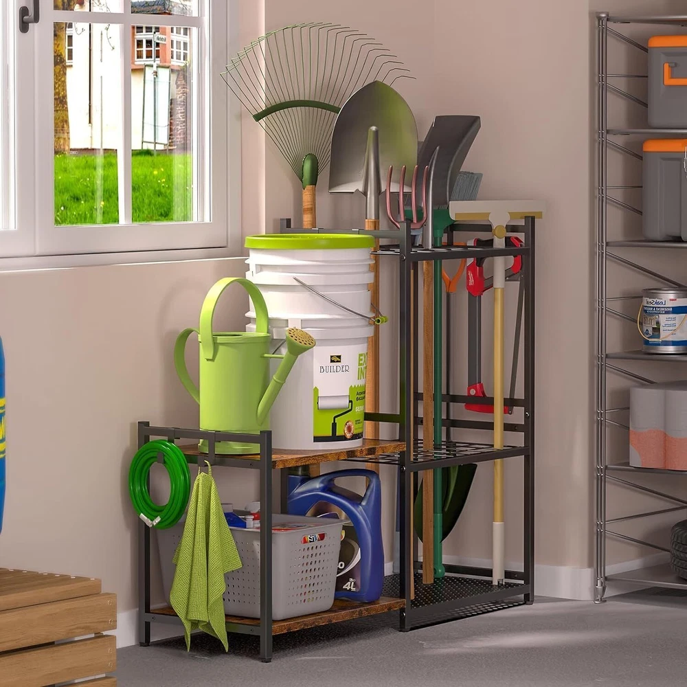 Heavy Duty Garage Tool Organizer with 6 Hooks for Yard Storage