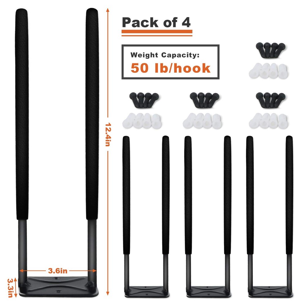 Heavy-Duty 12.4 Inch Garage Hanging Hooks: Crafted from durable steel with a rustproof coating, these hooks offer industrial-grade strength and long-lasting durability. Hang tools and other heavy items confidently, supporting weights up to 80 lbs. Non-Slip Rubber Coated Hooks: Each hook features a protective rubber coating to prevent scratches and slipping. Built to resist rust, flaking, and cracking, these hooks ensure longevity and provide added safety when handling tools. Versatile Wall Hooks: Keep your garage or utility closet organized while maximizing storage space at home or work. Easily hang tools, folding chairs, tires, snowboards, brooms, strollers, ladders, and more. Easy Installation: Mount these hooks quickly in any preferred space, whether in garages or closets. All necessary mounting hardware is included, ensuring secure attachment to solid structures. Space-Saving Design: With a length of 12.4 inches, these utility hooks efficiently a variety of garage tools. Ideal for organizing heavy-duty tools in garages, gardens, shops, basements, or warehouses, they're an excellent choice for garage organization.