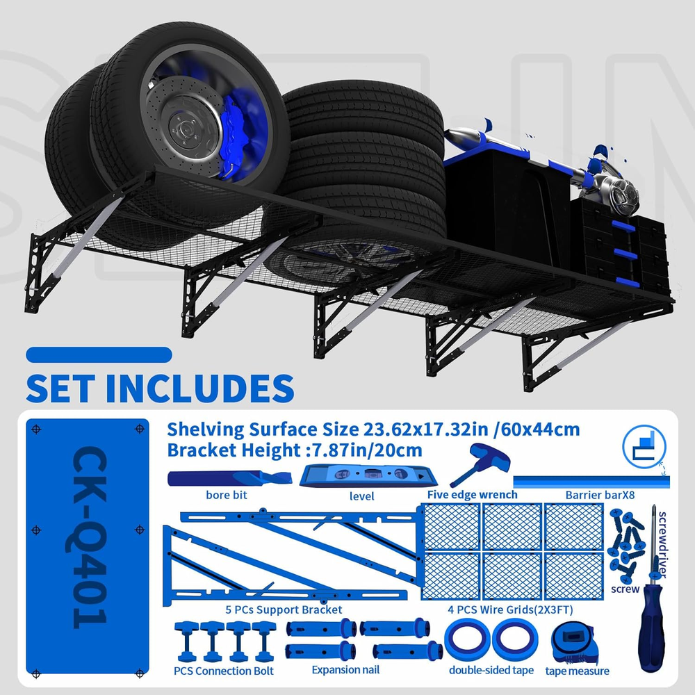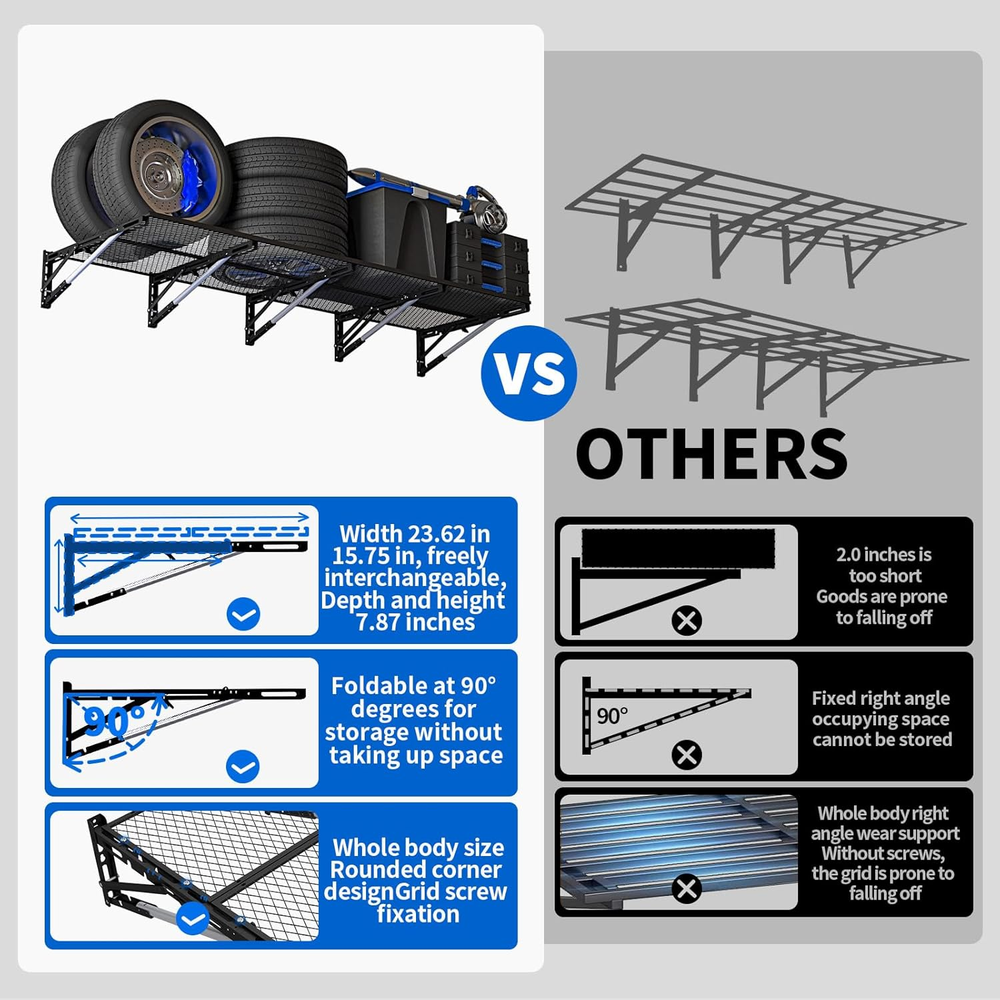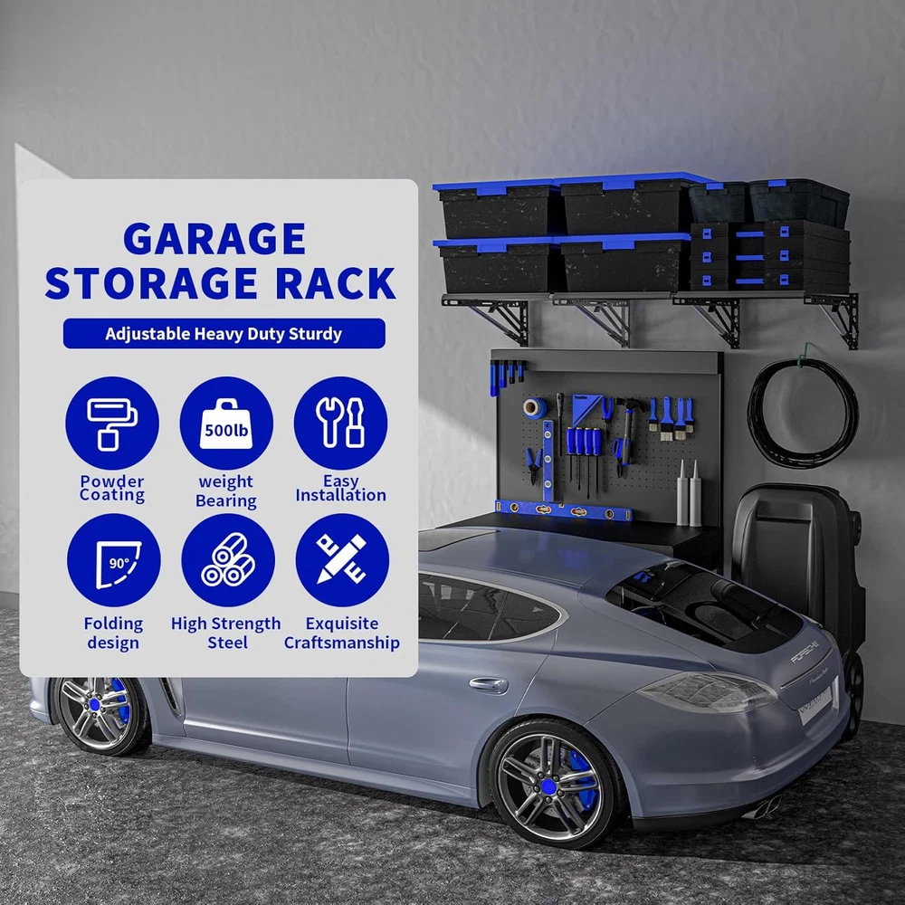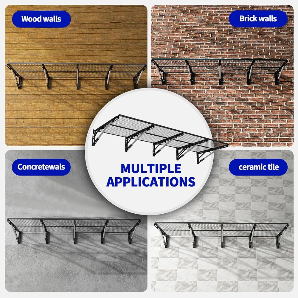 Store New Arrivals Add to Favorite View Feedback Contact Fast deliveries to the customer's home Quality customer service John Make the customers happy! Garage Shelving Heavy Duty Wall Storage Hanging Wall Shelf Mounted Metal Floating Shelves Organization Overhead Ceiling Sheds & Outdoor Storage Racks Garage Mount Description ***Heavy-Duty Garage Storage Shelves Capacity:*** Supports over 1000 lbs total with 5 sturdy braces distributing weight evenly for secure wall-mounted metal floating shelves, perfect for storing heavy bins, boxes, tires, and tools. ***Space-Saving & Secure ***: Features removable edge barriers to prevent small items/tools from slipping; folds effortlessly tool-free to a slim 4 inches thick when not in use, maximizing your garage storage space. ***Garage Shelves Ultra-Sturdy & Long-Lasting***: Engineered with a reinforced triangular frame, heavy-gauge steel tubing, and certified hardware (2000+ hr tested) to prevent deformation; features rust-proof galvanized steel panels with eco-coating, resisting moisture and chemicals for reliable weight-bearing in demanding garage environments. ***Easy Solo Install & Versatile Setup***: Comes complete with drilling template, positioning jig, and bubble level for fast, accurate wall mounting (within minutes!); configure vertically, corner-mounted, or side-by-side. Perfect for garage, workshop, basement, or any space craving storage. **(Note: Not for metal walls.)** ***Premium Service Support***: Commit to long - term anti - rust for metal shelves, offer free replacement for deformation or cracking, provide all - weather customer support. Our professional team is ready to answer your questions at any time. Applicable to Garage Storage Shelves, Wall Shelf Mounted, Metal Floating Shelves. Product Description Item model number HX-CK-Q401 Room Type Garage Assembly Required No Shelf Type Metal Color Black Product Dimensions 17.14"D x 34"W x 4"H Material Metal Country of Origin China Style Modern Item Weight 19.71 pounds Number of Shelves 6 Set Mounting Type Wall Mount Special Feature Cordless Size Large Extended 6ft x 2ft ABOUT US We offer the best prices around on high quality products. Our E-store includes media such as books, movies, music and games while offering electronics, toys, sporting apparel, clothing, tools, general home, garden items and more. SHIPPING We are always working hard to ensure your package arrives as soon as possible. Please understand that some factors like weather, high postal traffic, and the performance of shipping companies are outside of our control. We offer free shipping to the lower 48 states and ship within 2 business days of payment, usually sooner. We do not accept P.O. Boxes. Please provide a physical address. For shipping outside of the continental USA, we only use eBay's Global Shipping Program. The item is shipped to KY and then sent to the rest of the world. International customers are responsible for all duties and taxes. Continue to 'check out' to calculate costs for shipping the item to your country. Messages regarding eBay's Global Shipping Program MUST be directed at eBay EXCLUSIVELY. RETURNS We offer a 30-Day Return Policy on items in which you are not completely satisfied with. You have the option of a full-refund or an exchange of the item. No returns are available on items shipped outside of the USA PAYMENT We accept PayPal. CONTACT US This page content is yet to come Please ad us to your favorite seller and visit again later Thank You CUSTOMER SATISFACTION We try our very best to make sure every customer is completely satisfied. If there's a problem, message us! We're happy to help. WE ACCEPT