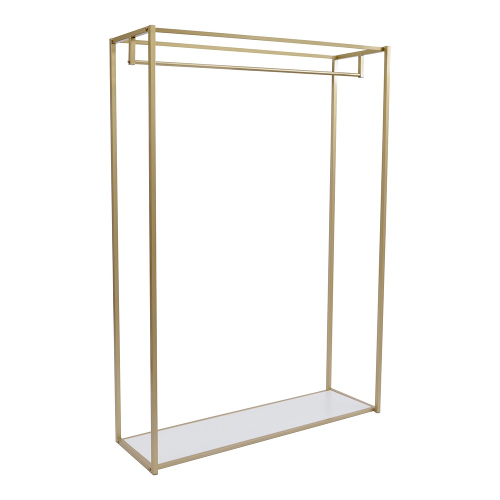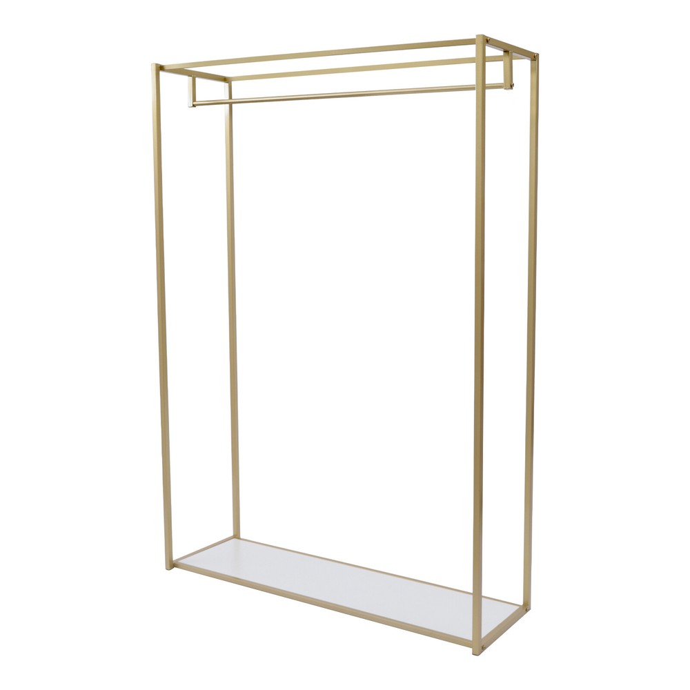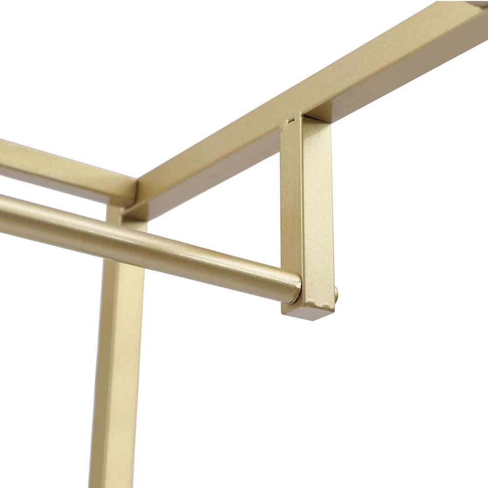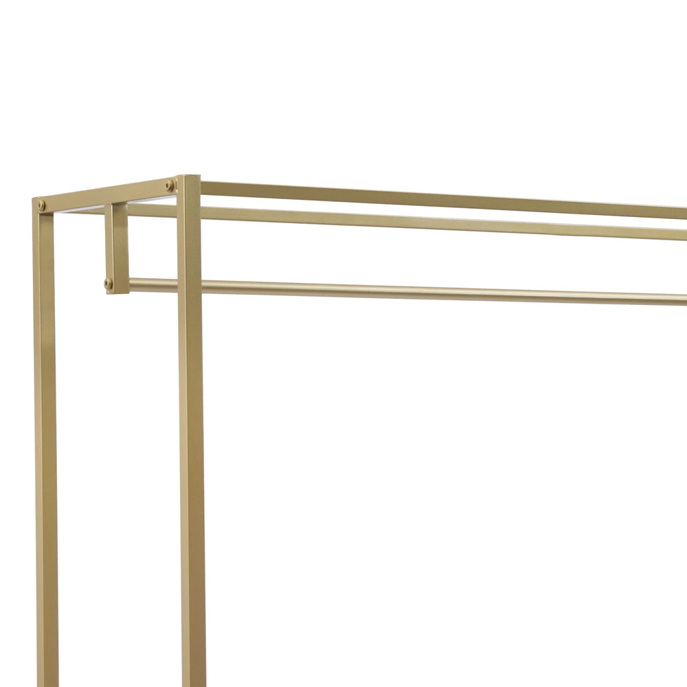 This garment rack is a game-changer for organizing clothes and shoes! The sturdy steel frame holds up to 66lbs without wobbling, and the sleek gold finish adds a modern touch. Love the two-tier design—perfect for hanging outfits while keeping shoes neatly stored below. Super easy to assemble and surprisingly compact despite its large capacity. The nano-baked lacquer prevents rust, making it durable for long-term use. A stylish and functional upgrade to any closet or bedroom!