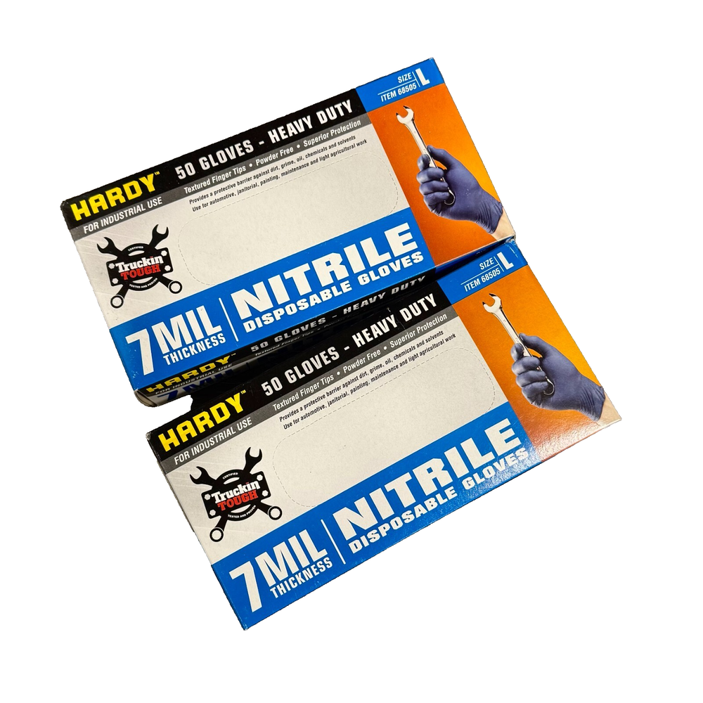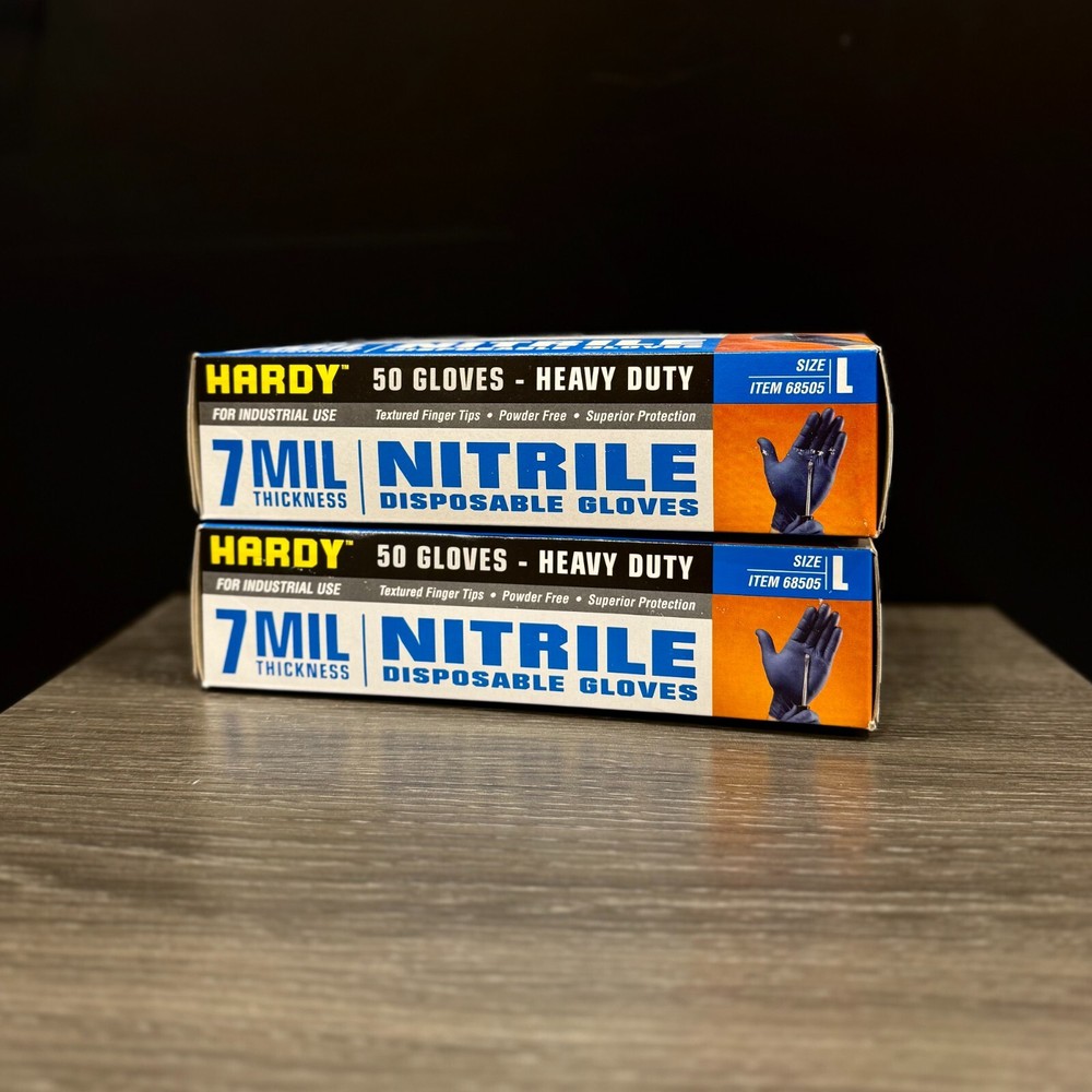 BRAND NEW Hardy 68505 Nitrile Gloves 7MIL 2 BOXES of 50 SIZE: LARGE Heavy Duty