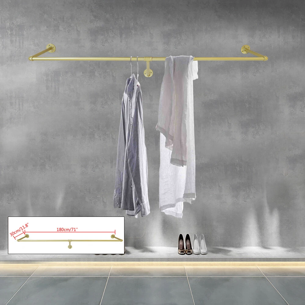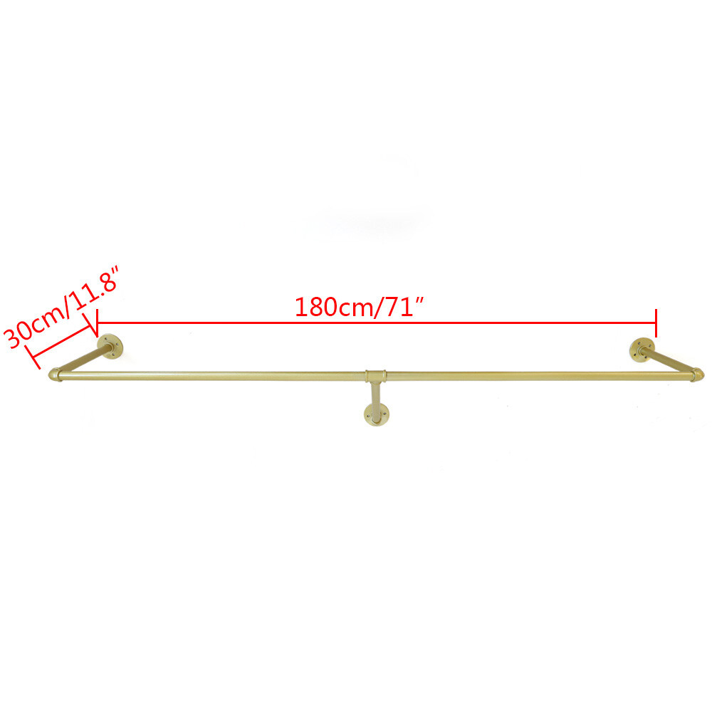 Heavy Duty Wall Mounted Clothes Rack Industrial Pipe Clothing Rack Detachable US Welcom to alwaytty03 Features: Easy To Assemble And Disassemble. Can Display Clothes, Wedding Clothes, Wedding Dress. Put It At Home And In The Clothes Shop, The Clothes Are Neatly Organized And Stands Exquisite Ideal For Displaying Boutique Merchandise,The Bearing Capacity Is More Strengthened, Not Easy To Deform This Sturdy Iron Stand Also Disassembles Into Multi Pieces So You Can Fit It In Your Car And Move It From Location To Location. Specifications: Material:Metal Colour:Gold Product Size: Length:180cm/71inch Width:30cm/11.8inch Weight:2.5kg Function: The Material Of The Stand Is Iron, Durable, Corrosion-Resistant, Can Be Reused Several Times, Environmental Protection And Sanitation, And Does Not Take Up Space. Put The Clothes In The Home And Shop, Arrange The Clothes In An Orderly Manner, Easy To Store And Clear At a Glance Stand Decoration Is One Of The Most Popular Party Decorations Nowadays. It Also Can Display Wedding Clothes, Wedding Dress.It Is Fantastic Preparation For Wedding. Application:Home,Store,Office,Wedding . Package Includes: 5pcs Connect Tube 3pcs Foot Pats Payment Delivery details Terms of sales About us Contact us Payment We accept ebay payment 。 Fees such as import duties, taxes are not included in the item price or shipping costs. These charges are the buyer's responsibility. Delivery details Shipping: 2-9 working days to: USA Terms of sales We maintain high standards of excellence and strive for hundred percent customer satisfaction. Feedback is very important to us. We hope that you contact us immediately before you give neutral or negative feedback, so that we can address your concerns. It is impossible to address issues if we do not know about them! About us Your satis faction is our ultimate goal. We work hard to earn your trust and future business. Our certified technicians have tested each item before shipping. The unit comes with 1 year limited warranty on all manufacturing defects. a) If you receive a defective item, you may return it or ask for a discount. Please contact us within 14 days after you receive the package. b) What you returned must be intact and in its original packaging as re? u. Customer is responsible for shipping costs of the returned item. c) We will cover the cost of shipping back t with the shipping rate indicated in the registration page. We will send you a new unit or refund the full payment you paid. Thank you. Contact us Business Hour Business Hour: Monday To Friday: 8:30 AM to 5:00 PM (Beijing China time) Due to time zones, our reply to your questions may not be immediately. But within above working time, we will reply your email within 24 hours. If it's non-workdays, please kindly be patient and wait till Monday. Please contact us with ebay message. Please feel free to contact us if you have any questions. Monday To Friday: 8:30 AM to 5:00 PM (Beijing China time) Due to time zones, our reply to your questions may not be immediately. But within above working time, we will reply your email within 24 hours. If it's non-workdays, please kindly be patient and wait till Monday. Please contact us with ebay message. Please feel free to contact us if you have any questions. Brand ( 品牌 ) TBVechi Features ❤Compact Design,Beautiful Appearance❤ Fe'a'tu're's ★Stable performance and high quality★ Brand Unbranded Type Clothes Rail Material Metal Mounting Wall Mounted Department Adults Item Height Adjustable Model N/A Item Width 30cm/11.8inch Item Length 180cm/71inch Assembly Required Yes Item Weight 2.5kg MPN N/A Color Gold Style Art Deco Finish Painted UPC Does not apply