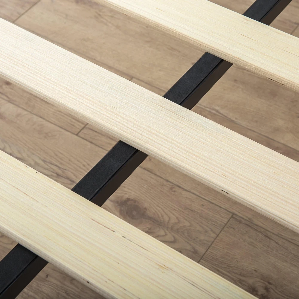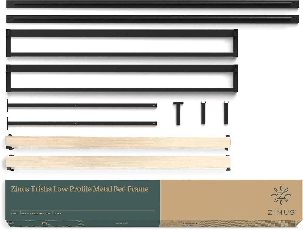 This bed frame is a game-changer—super sturdy, easy to assemble, and looks sleek in black. The low profile design gives a modern vibe, and the metal construction holds up perfectly, even with heavy use. No squeaks or wobbles, just solid support. Love that it comes with a 5-year warranty too! Highly recommend for anyone needing a durable, no-fuss platform bed.