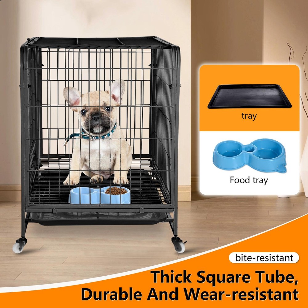 $ 13.37Heavy Duty Metal Dog Cage with Wheels and Tray in Black Sizes S M L