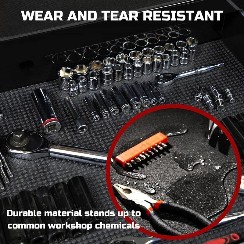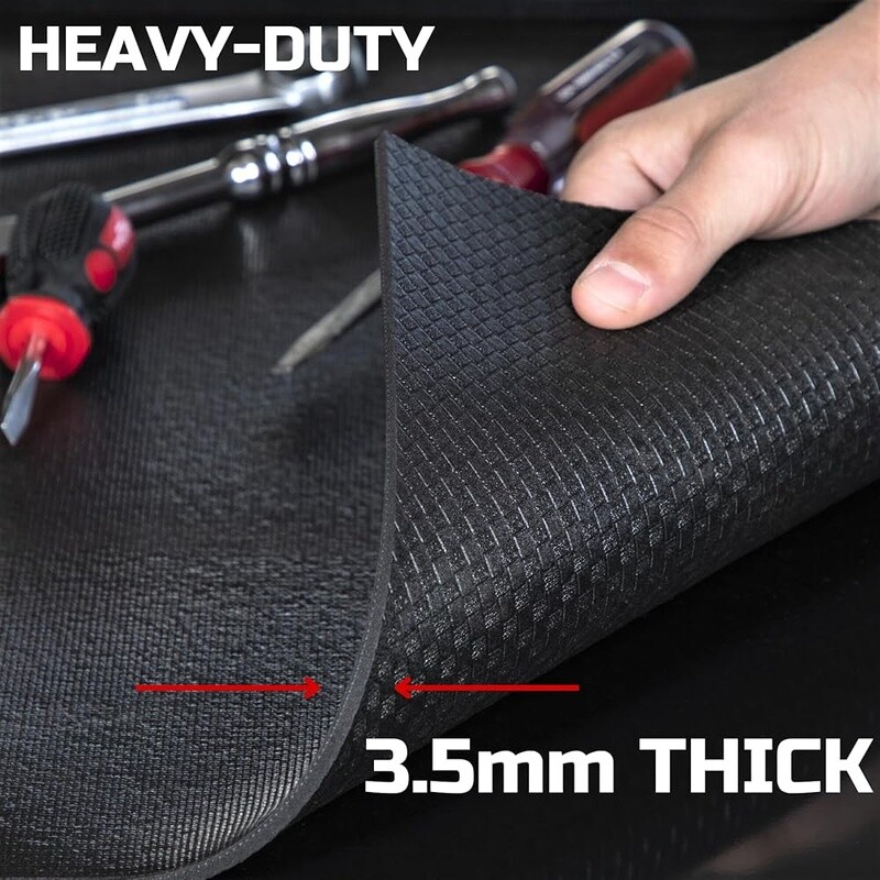 You may also like Heavy Duty Steel Campfire Ring Portable Collapsible Fire Pit W/ Storage Bag New 56.87 USD 59.86 USD Free shipping 5% off Stackable Storage System 3 Piece Set Rolling Toolbox Portable Lightweight US 460.58 USD 484.82 USD Free shipping 5% off 3-Layer 5-Tray Metal Tool Box Cantilever Folding Red Storage Box Tool Organizer 68.31 USD 71.91 USD Free shipping 5% off About this item PROTECS DRAWERS & TOOLS: Onreva toolbox drawer liners protect your tools from scratching & sliding, Keep your tools and toolbox or workbench in pristine condition with our heavy duty tool box liner; Protects surfaces from grease stains, oil spills, dings and dents. DURABLE & QUALITY: Made to last with increased protection of natural wear, tear and heat-resistant. Durable material stands up to common workshop chemicals, making it the perfect long-term addition for mechanics and craftsman. The foam rubber mat is tough enough to support any heavy tools; Thick and durable Onreva drawer and shelf liner is superior when it comes to durability. Our tool box mat keeps your tools in place on the move, in your trunk, or when opening and closing the drawers of your rolling tool chest. EASY TO CUT & PLACE: The rubber foam drawer liner makes measuring and cutting easy so that you can easily and quickly install this liner in any tool box drawers. The tool box liner is perfect to fit any brand tool box such as Craftsman, Snap on, Husky, US General and so on. SPECIFICATIONS: Tool box liner, Size: 18 inch wide x 24 feet long, thickness: 3. 5mm thick, Material: PVC Rubber, Color: Black, Non-slip surfaces. Brand: Color: Black Material: Rubber Product Dimensions: 288"L x 18"W Special Feature: Non-Adhesive Theme: Solid Pattern: Solid Number of Items: 1 Number of Pieces: 1 Indoor Ceramic Plant Pots Set of 3 W/ Drainage Holes & Leak-Proof Mesh Pads New 66.16 USD 69.64 USD Free shipping 5% off Corded Electric Leaf Blower 7 Amp 330 CFM 150 MPH Lightweight Powerful Tool New 35.54 USD 37.41 USD Free shipping 5% off Men's Incontinence Underwear Maximum Absorbency Discreet Fit Anti Odor 72 Count 33.41 USD 35.17 USD Free shipping 5% off 600lm LED Rechargeable Headlamp Flashlight 4 Mode Waterproof Adjustable Aluminum 29.71 USD 31.27 USD Free shipping 5% off 10 Pack Garden Plant Trays W/ Drain Holes Hydroponics Seed Starting Microgreens 51.15 USD 53.84 USD Free shipping 5% off 34 Pc Stainless Steel BBQ Grill Accessories Set W/ Thermometer & Grill Mats New 49.95 USD 52.58 USD Free shipping 5% off Large Plastic Flower Pots Set Of 4 Drainage Trays Indoor Outdoor Planters Copper 75.26 USD 79.22 USD Free shipping 5% off Flux Core Mig Welding Wire 0.03" Diameter 10lb Self Shielding Strong Spool New 53.05 USD 55.84 USD Free shipping 5% off Porcelain Dinner Plates Set Of 6 Microwave Safe Colorful Serving Plates Ceramic 48.11 USD 50.64 USD Free shipping 5% off Heavy Duty Soft Close Drawer Slides 22" Ball Bearing Rails 100LB Capacity Silver 51.52 USD 54.23 USD Free shipping 5% off Battery Powered Garden Sprayer Rechargeable Pump Adjustable Nozzles Portable New 61.67 USD 64.92 USD Free shipping 5% off Folding Roller Stand Height Adjustable 250 LB Capacity Portable Heavy Duty New 61.68 USD 64.93 USD Free shipping 5% off