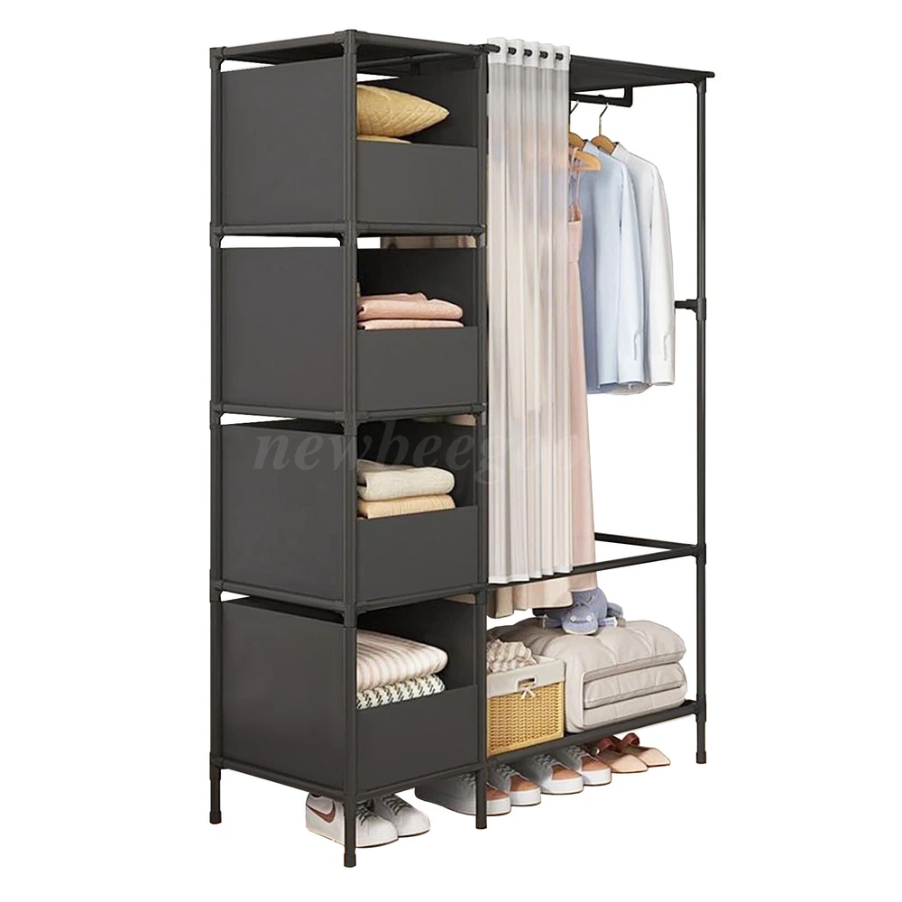 Heavy Duty Open Wardrobe Closet Garment Rack Clothing Hanging Organizer Shelves [ Description: This multifunctional portable wardrobe features a semi-open design for quick and convenient clothing selection, complemented by an upgraded curtain for privacy protection. It includes a clothes hanging rod, storage shelves, and 4 storage drawers, with elevated legs for hidden shoe storage, catering to diverse storage needs. Made with non-woven fabric and galvanized steel tubes, it is sturdy, durable, and built to last. Ideal for organizing clothes, bedding, toys, pet supplies, and more, it adapts seamlessly to various spaces. Its tool-free assembly makes setup simple and enjoyable, offering an efficient storage solution to keep your space tidy and elevate your lifestyle. Features: 【Semi-Open Design for Easy Clothing Access】 Unlike traditional enclosed wardrobes, the semi-open design offers clear and convenient clothing selection. The upgraded curtain design operates smoothly while ensuring privacy and a serene living environment. 【Versatile Storage Configuration for Varied Needs】 The wardrobe features a hanging rod, storage shelf, and 4 storage drawers designed for outerwear, dresses, bed linens, and folded clothes. Its elevated legs not only enhance stability but also provide a dedicated space for shoes, whether heels, sneakers, or casual footwear. 【Premium Materials for Durability】 Constructed with a non-woven fabric cover, fabric shelves, and galvanized steel tubes, the wardrobe ensures long-term stability and durability. It withstands daily wear and tear, maintaining its form even during relocations. 【Multipurpose Use for Various Scenarios】 Beyond clothing storage, this wardrobe is perfect for organizing bedding, toys, pet supplies, and seasonal items. Whether placed in bedrooms, living rooms, hallways, or kids’ rooms, it enhances space organization and functionality. 【Easy Tool-Free Assembly】 Designed for straightforward assembly, users can easily connect tubes to plastic connectors by following the manual—no additional tools required—making the DIY process effortless and enjoyable. Specification: Type: Portable Wardrobe Material: Galvanized Steel Tubes, Non-Woven Fabric Color: Black Dimensions: 41.3×17.7×67in / 105×45×170cm Style: Modern Minimalist Package Contents: Fabric Drawers × 4 Long Tubes × 11 Short Tubes × 42 Leg Tubes × 6 3-Way Plastic Connectors × 20 4-Way Plastic Connectors × 6 Straight 3-Way Connectors × 2 Large Shelf Fabric × 2 Small Shelf Fabric × 1 Hanging Hooks × 2 S-Shaped Hooks × 4 Foot Caps × 6 Note: 1.Please allow slight deviations due to manual measurements. 2.The actual product may differ slightly from the images due to display settings and lighting conditions. 3.Product details may vary slightly between manufacturing batches. If minor differences are a concern, please purchase with caution. Thank you for your understanding. 4.If you have any questions about the product, please feel free to contact us. We can only accept Paypal payment only. You can send payment to our paypal account by many payment methods(Credit or debit card through PayPal). 1. Items are US stock. 2. Item will be shipped out within 1- 2 Working days upon your payment completed. 3.Please do not hesitate to contact us if you have any questions about our products. We will be responsible for any damages or losses incurred in the shipping process. 1.If there are any problems with our products,Please feel free to contact us.We will always here to solve them for you.You don't need to contact ebay or paypal.And please DO NOT leave us Neutral/Negative feedback,It won't help the problem to be solved.And it is the worst hurst to a seller.We should try our best to make a happy easy transaction. 2.If you are satisfied with our products and our service,please tell your friend and leave us positive feedback;if you are not satisfied with our products or service,please DO tell us. 3.After receiving the item,you could contact us within 30 days.Refund will be given as money back or item exchange. 1. Usually, we reply for the messages within 24 hours, if you do not get response within 1-2 Working days , please check your Messages box one more time or Please email us AGAIN. 2. Email is the priority of our customer service, if you can't get us, please choose live response. 3. Positive feedback is automatically done once the payment is cleared. We appreciate your feedback. 4. The star-scores are very important to us. If anything about your transaction did not meet your expectations. Please let us know and give us the opportunity to work out for you before you leave feedback. Working Day: Monday to Friday Working Time: 9:00 am to 18:00 pm On Jan 16, 2025 at 03:22:49 PST, seller added the following information: