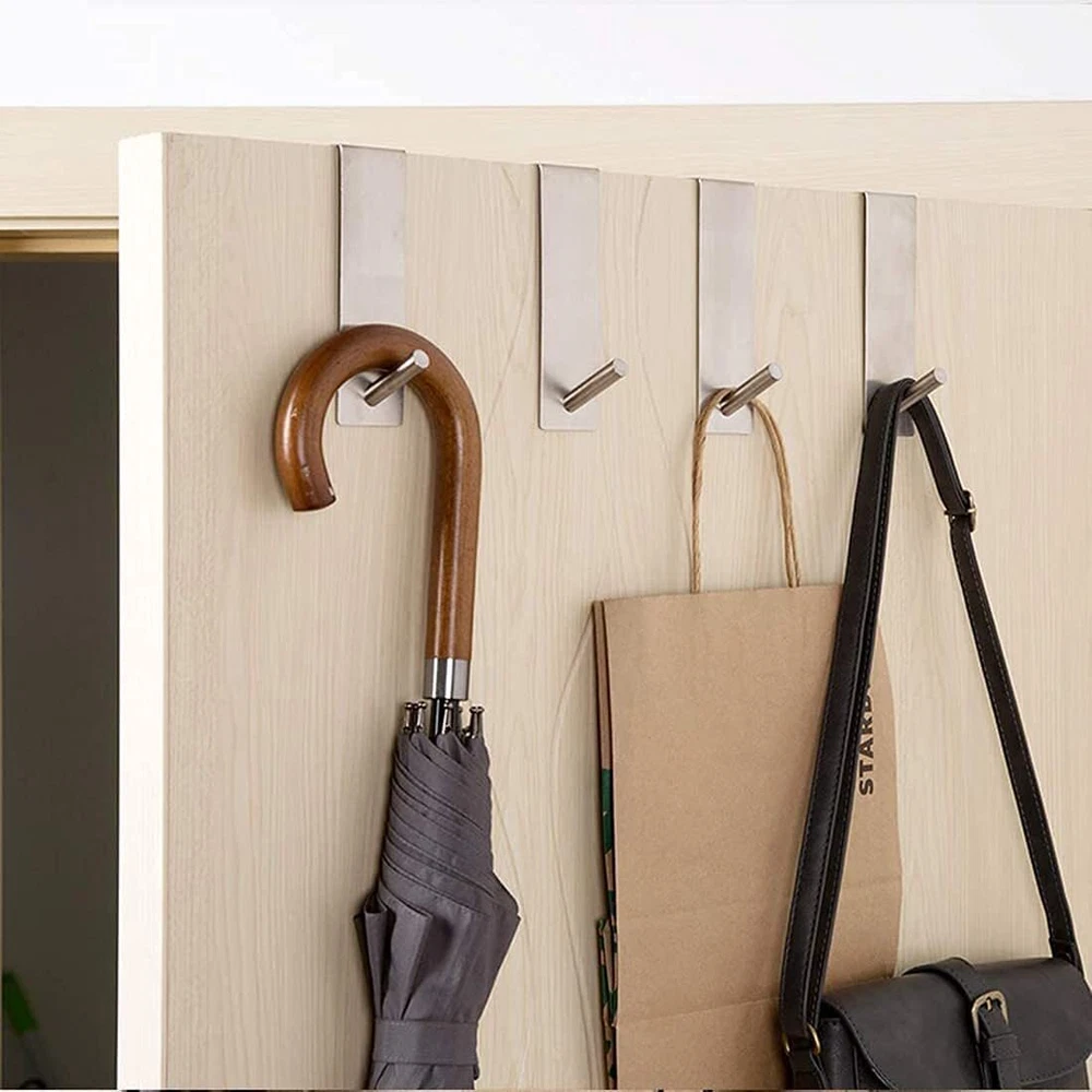 Specifications: Packaging: Over The Door Hook x 4 Material: 304 Stainless Steel, not deformed and resistant to corrosion. Color: Silver Size: 1 3/4 " Weight: 0.7 lbs Hold up to: 100 lbs Suitable for doors: below 1 3/4 "thickness STURDY AND DURABLE DOOR HOOK: The door hook can support a weight of 100Lbs. And the upward protruding part of the hook prevents your items from slipping out. PROTECTIVE DESIGN: This Over The Door Hook comes with soft sponge pads to effectively protect the surface and clothing of the door. These door hanger hooks are used over the door. Unique design, simple appearance, and durability will make this hook your best choice. 【BEARING CAPACITY AND DIMENSIONS】:Dimensions:1 3/4" , Door Hooks Weight: 320g. Suitable for doors with a thickness of 1 3/4". And can hold up to 50 lbs. 【STURDY AND DURABLE DOOR HOOK】:ARTOYS door hook Forged with high-quality 304 stainless steel, The surface adopts an electrolytic process instead of polishing, which is cleaner and more beautiful. Each hook can be used alone. 【EASY TO INSTALL】:No hardware required, There is a reserved hole on the top, which can be screwed into the screw,or placed over the top of the door and you're done. There is a protective rubber pad on the back of the door hooks, without worrying hooks moving around,anti-scratches on the door, avoiding noise when the door rack hanger taps on. 【SAVE SPACE】: With Over door hooks, you can easily organize messy clothes, hats, towels, handbags, and other accessories. Ideal for living room, bathroom, bedroom. Use your space effectively to make your world a cleaner place. 【100% CUSTOMER SATISFACTION 】:If you have any quality problems, please don't worry, contact our customer service, we will return or replace it asap.