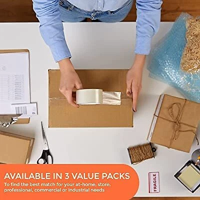 ● Premium adhesive/tensile strength. ● Superior low VOC adhesive keeps boxes closed ● Excellent for both industrial and residential purposes. ● Premium performance—resists breakage and seam splitting during application. ● Standard 3 inch core diameter—common size for most tape dispensers. ● Smooth unwind quality and strongly seals to surface. ● Ideal For Carton Packing, Warehouse Storage Of Goods, Container Shipment, Products Sealing Glue And Fixed, Sealing Packing, Carton Binding ● This tape is approved for use with all major shipping carriers, including UPS, FedEx, DHL, USPS and more. Width: 2 inch. Length per roll: 110 yards. Thickness: 2.0 mil. Core: 3 inch ● Ideal For Carton Packing, Warehouse Storage Of Goods, Container Shipment, Products Sealing Glue And Fixed, Sealing Packing, Carton Binding Suitable for home, commercial or industrial use in any climate ● Standard 3 inch core diameter common size for most tape dispensers. Superior low VOC adhesive keeps boxes closed · Meets US Postal regulations for standard packages