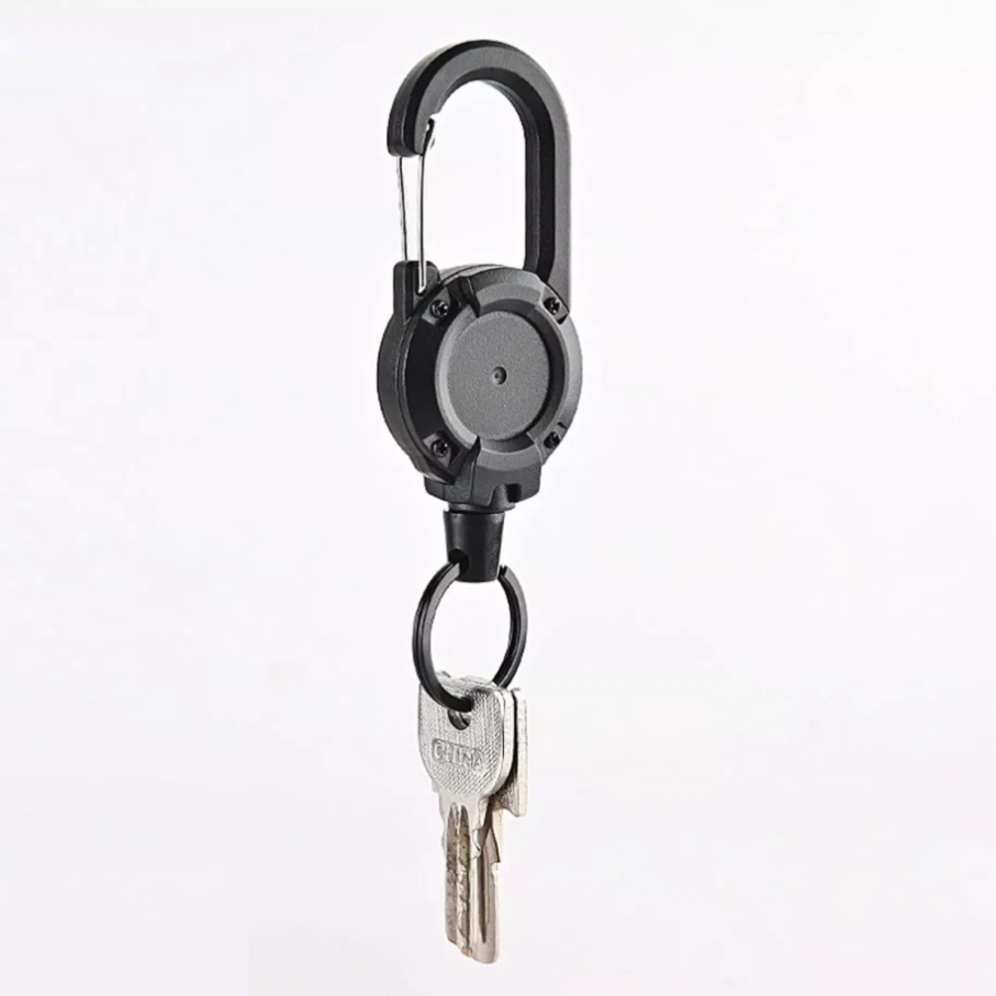 Heavy Duty Retractable Carabiner Car Key Chain Badge Holder Steel Cord Keychain#
