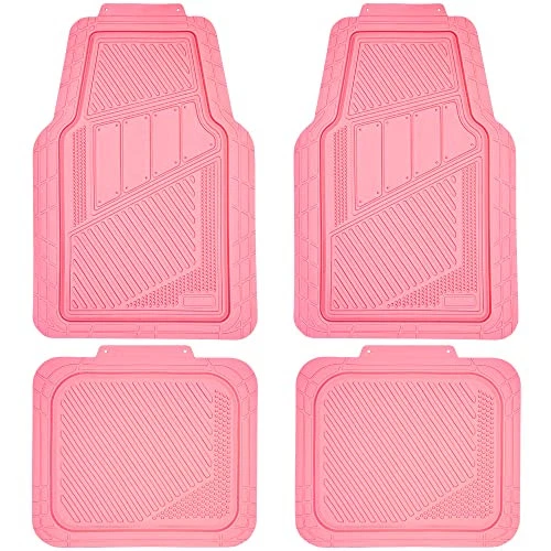 Heavy Duty Rubber Floor Mats 4-Piece Pink Car Mats Full Set - Universal