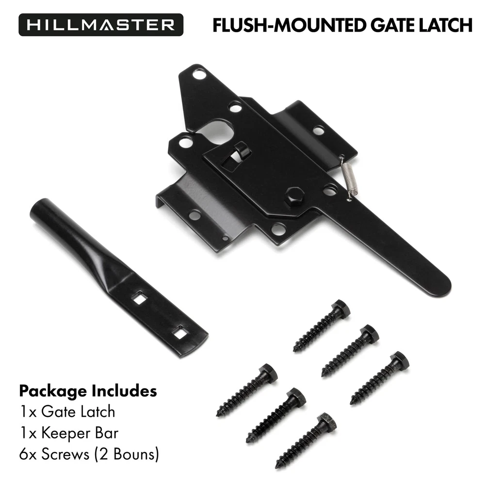gate latch 【Gravity Self Locking Gate Latch】Privacy Exterior Fence Latch made from heavy gauge steel construction with Superior Black Powder Coat Finish & Zinc Plated corrosion resistance, features a self-latching fingertip release, can also be operated with a pull string. 【Safe & Sturdy Construction】 The Heavy-duty Fence Gate Lock measured about 1.47lb(670g), designed to offer simple but solid security for inward or outward swinging gates and doors, classical black can match any back yard decor, enjoy the project of DIY and protect your garden. 【Multipurpose】 Our Automatic Metal Gate Door Latch perfect for wood gates and fence, vinyl gate, it can also be installed in aluminum alloy doors or metal gates(Tips: Please replace professional hard screws), Used on garden, vegetable farm, pasture, orchard, backyard, deck, sheds, ranch, baby gate, pool gate, barn door, carports, side fences, cattle, dog kennels, sheepfold, stable, wooden pet house, animal pens or chicken coop door. 【Easy to Install & Padlockable】Security Gate Hardware Kit comes with installation instructions and 6 mounting screws, suitable for left or right hand application, Can be padlocked for added security with ordinary padlock or pin (padlock and pin are not included). 【Professional Guarantee】We are specialized in producing various hardware fittings, please go find all kinds of home hardware fittings you need in store and enjoy it! If you are not satisfied with our products, please feel free to contact us. We are committed to providing the professional products and the caring service for everyone.
