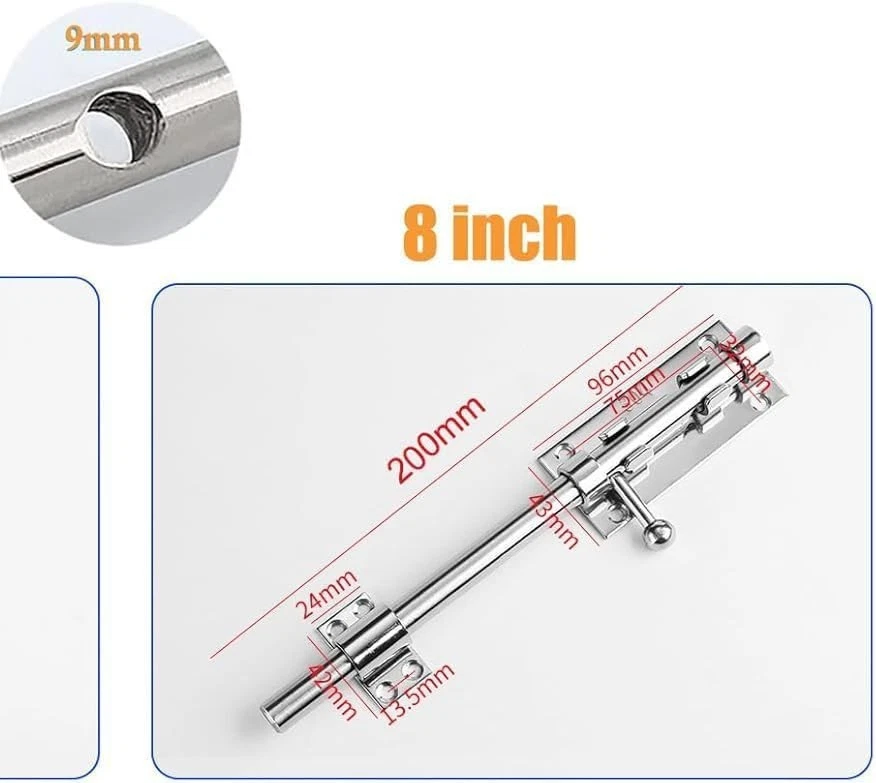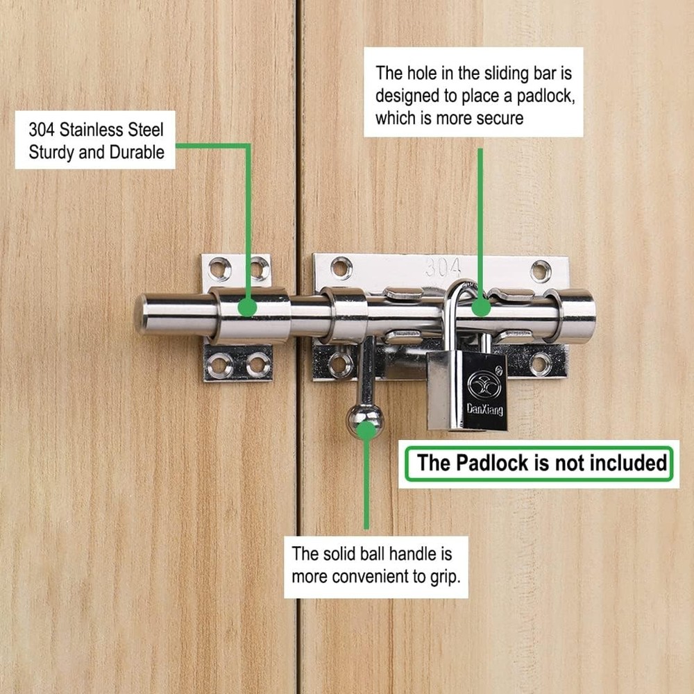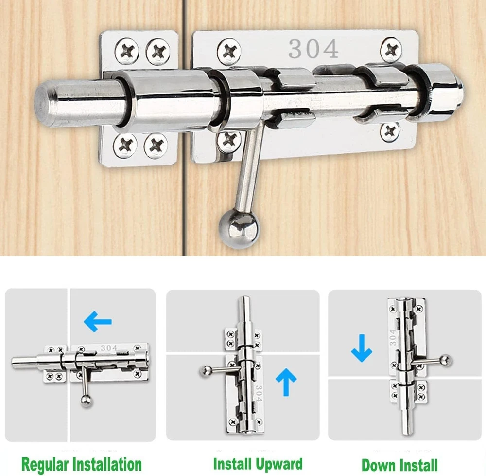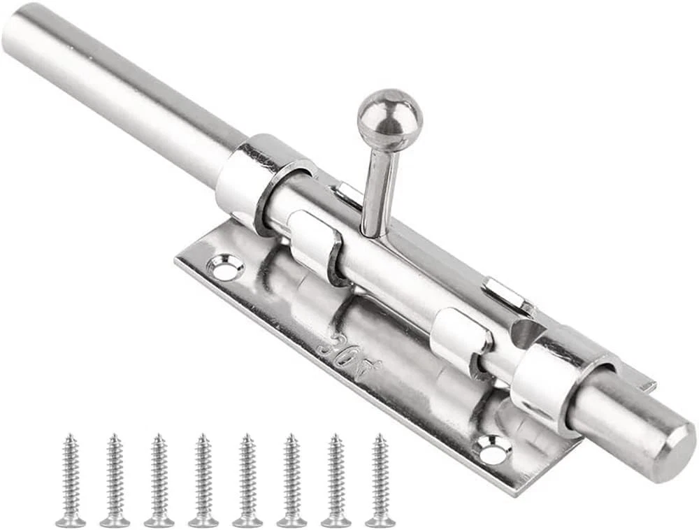 Litensh door bolt lock slide, heavy duty barrel bolt latch, slide gate latch bolt for wooden fence, shed door,yard door, barn door, shed basement , interior and outdoor latch - Material: 304 stainless steel with surface balvanisation - Bolt bolt diameter: 14 mm. Content: Bolt bolt with screws