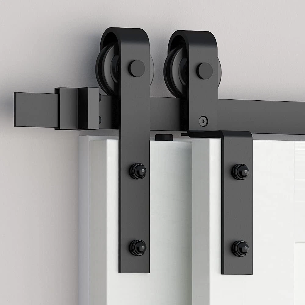 barn door roller ✅ Barn Door Roller - Material: Carbon Steel, Surface: Black Coated . ✅ Package Included: 2 x Right Angle Roller, 2 x anti-jump kit, 1 x Floor Guide,8 x Spacer (for hanger bolts if your barn door is thin) ✅ Door weight capacity: 265 lbs, Door Thickness: 1-3/8" and 1-3/4". ✅ Barn door hanger will fit for barn door track in thickess of 1/4" maximum , ✅ "Only the barn door roller for sale ,barn doors are not including."All the hardware have been inspection in factory before delivery,Passed 150,000 times opening and closing test
