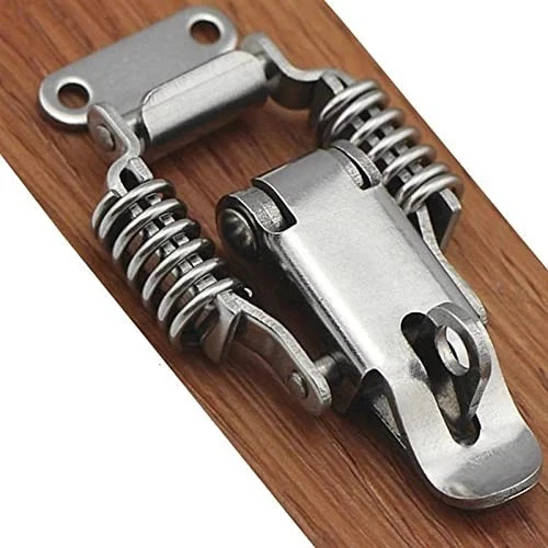 【MATERIAL】- 1 Made of 304 stainless steel,Solid & Good corrosion resistance; he product surface treatment process is vibration polishing, more durable for a long-term use 【SIZE】- Length: 2.32 inch/ 59mm; With lock hole 【ADVANTAGE】- Equipped with spring design, has the excellent tension, keeps the lock firmly, resistant to impact and easy to use 【APPLICATION】- Apply to cabinets, ordinary box, instrument cases, lockers, tool boxes and so on