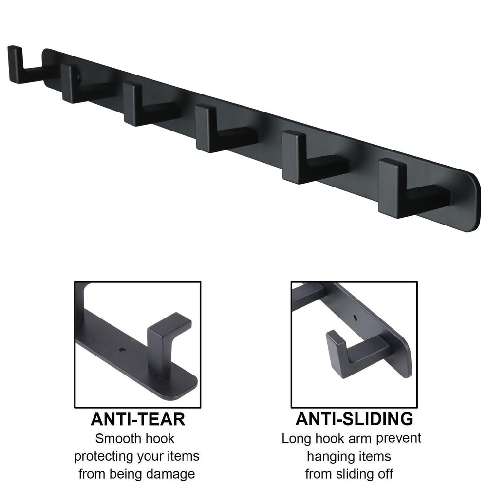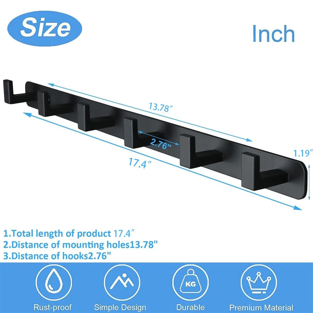 STURDY & DURABILITY: Coat rack made of heavy duty 304 stainless steel with multi-layer protective coating. Rust-proof and resistant even in wet bathrooms and kitchens. Compared with the hooks on the market, our hooks are larger and have more rounded edges to protect your hangings from tearing or sliding off. STRONG LOAD BEARING CAPACITY: The wall-mounted design of the coat hook rail is very stable, so you don't have to worry about falling off. Stainless steel construction is durable and can hold up to 18 lbs. Make it easy to hang heavy tools, heavy jackets, etc. ORGANIZE & CREATE SPACE: Coat hook with 6 square hook Provide ample storage space for you to easily hang daily necessities such as heavy jackets, hats, backpacks, towels, kitchen utensils, etc. Make your room look more neat and elegant. EASY INSTALLATION: Our coat hook can be installed with screws . The package comes with all the accessories needed for installation, such as screws accessory and installation instructions. Installation instructions have detailed installation steps to help you quickly complete the installation. ABOUT QUALITY: We always adhere to the principle of quality first. Before the products are put on the shelves, we have 4 workers repeatedly and strictly inspect the products to ensure that the products are perfect. So please believe that the products you will receive have passed our strict quality inspection and perfectly.