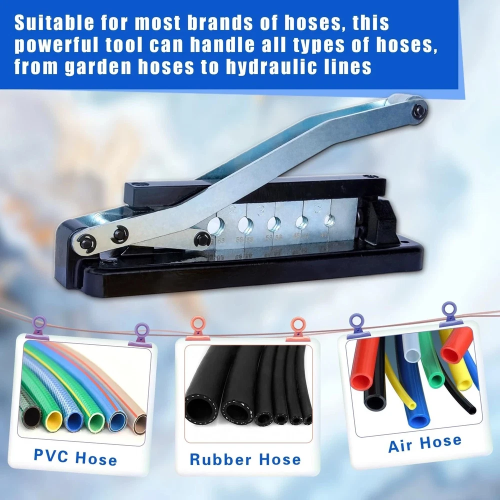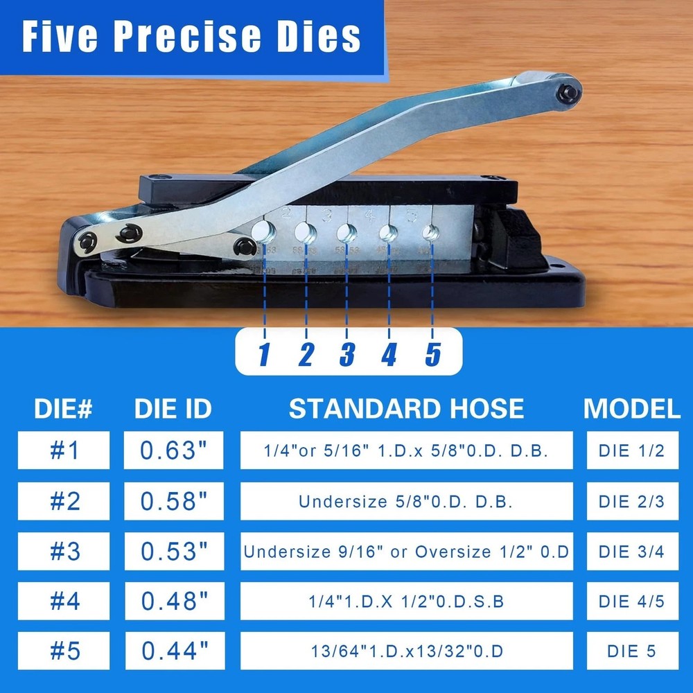 Heavy Duty Standard Hose Crimper, 3/8 Air Hose Repair Kit with Crimper 50 x 0.593" Id & 50 x 0.656" Id–Fits 1/4", 5/16", 3/8" PVC, Ferrule Crimping Tool Kit (50Pk), Air Hose Crimping Tool Product Details Brand: YHUER Color: Gold Handle Material: Polyvinyl Chloride (PVC) Grip Type: Ergonomic Handle Type: Plastic Brand: YHUER Color: Gold Handle Material: Polyvinyl Chloride (PVC) Grip Type: Ergonomic Handle Type: Plastic Manufacturer: Heavy Duty Standard Hose Crimper Item Weight: 8.6 pounds Package Dimensions: 13.78 x 5.28 x 4.88 inches Item model number: Heavy Duty Standard Hose Crimper Material: Steel, PVC Handle/Lever Placement: Stationary Usage: Workshop and industrial environments, hose repairs, mechanics, welders, DIY projects, garden hose repairs, hydraulic line repairs Included Components: 50 x F7326 and 50 x F7328 Batteries Required?: No Date First Available: June 24, 2025 [Durable Construction for Longevity] Our heavy duty ferrule crimping tool is meticulously engineered using heat-treated steel molds and ductile iron, ensuring exceptional strength and durability. With a thickened mold frame and reinforced hinge points, this heavy duty hose crimper is designed for reliable performance in high-frequency workshop and industrial environments. [Versatile Crimping Capabilities] This hose crimping repair tool features five precision interchangeable dies sized at 0.44", 0.48", 0.53", 0.58", and 0.63". Heavy duty standard hose crimper with 5 dies effectively handles a variety of hose types including 5/16" One Braid, 5/16" Two Braid, 13/64" One Braid & 13/64" Two Braid 1/4" One Braid PVC and rubber hoses, for air hose repairs or other applications. [Comprehensive Repair Kit Included] Each purchase of our air hose repair kit comes complete with a thorough instruction manual and 100 brass ferrules (50 x F7326 and 50 x F7328). These ferrules are ideal for various projects, ensuring you have everything you need for effective hose repairs right at your fingertips. [Portable and Easy to Use] Designed for flexibility, the air hose repair crimper tool can be permanently mounted on your workbench or used on-the-go. Standard hose crimping tool built-in adjustable screw allows precise control over crimping pressure, making it suitable for both oversized and undersized hoses, perfect for mechanics, welders, and DIY enthusiasts alike. [Universal Compatibility and Safety Features] The heavy-duty bench crimper is compatible with most hose brands and types, from garden hoses to hydraulic lines. For safety, always ensure the adjustment screw is set correctly to avoid over-crimping. This hose crimping repair tool offers peace of mind for professionals and hobbyists needing reliable hose repair solutions.
