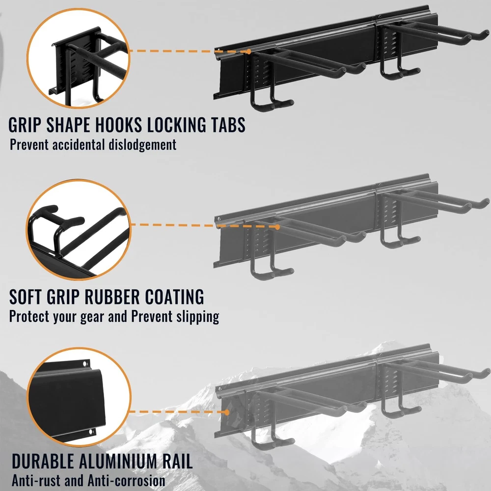 49.5" Wall-Mounted Garage & Garden Tool Organizer with Adjustable Hooks