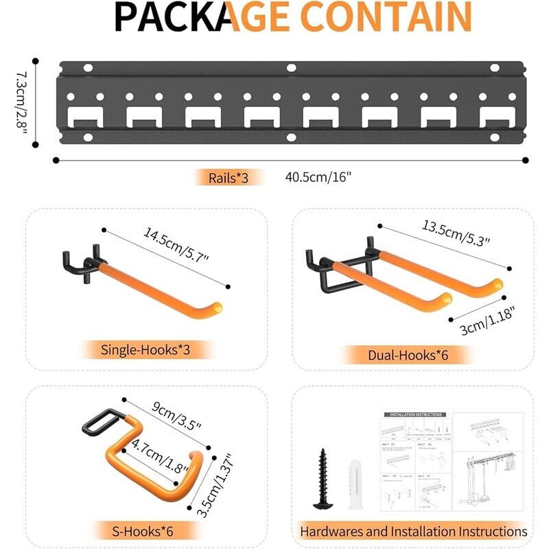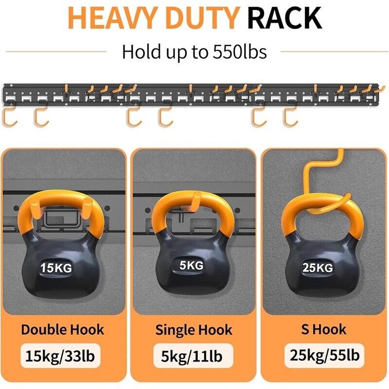 You may also like Mop Broom Holder Wall Mount Organizer 4 Slots Hook Rustic Wood Storage Brown New 22.07 USD 23.23 USD Free shipping 5% off Wood Wall Hooks 4 Pack Coat Hooks Mounted Rustic Handcrafted Weight Limit ‎35 Lb 25.76 USD 27.12 USD Free shipping 5% off Over The Door Towel Rack Hooks Bathroom Wall Mount Holder Bathrobe Kitchen Pool 17.65 USD 18.58 USD Free shipping 5% off Heavy Duty Garage Hooks 24 Pack Wall Mount Organizer Anti Slip Tool Hangers New 53.1 USD 55.89 USD Free shipping 5% off About this item Garage Organization: wall mount garage tool organizer provide superb organization for garage, utility room and shed for organizing your garden tools. Space-saving, keep items in place and easily accessible. Say goodbye to messy garage! Adjustable Pegboard Design: This garage storage and organization rack is 48 inches long. Equipped with 3 rails and 15 hooks (Includes 6 x dual-hooks, 3 x single-hooks and 6 S-hooks). The rails of this yard tool rack are with Pegboard design, which allow you to adjust the hooks easily to meet your actual needs Heavy Duty & Rubber-Coated Hooks: The garden tool organizer rack made of premium quality alloy steel, which is study, rust-resistant and not easy deform, can ensure a long-lasting performance and hold up to 550lbs. Each hook coated with rubber, which is non-slip and protect your tools from scratches Easy Installation: All yard shed organizer rack come with straightforward installation instructions and multiple hardware accessories, allowing you to set it up effortlessly in minutes. Each rail has alignment cut-out, can ensure to be installed on the same level Widely Application: Our garage tool organizer rack provide superb organization for your garden tools, brooms, mops, shovels, rakes, trimmers, yard tools, hoses, ski gears and more. Will keep your garage, utility room and shed organized without messy, give you an efficient work environment. It can be as new home essential checklist product or as a perfect gift for your father on Fathers’ Day Material: Alloy Steel Color: Black Special Feature: Easy to Install, Heavy Duty, Adjustable Hooks, Rust Resistant, Non-Slip, Scratch Resistant Product Dimensions: 0. 5"D x 48"W x 2. 68"H Shelf Type: Hanging Shelf You may also like 4-in-1 Adjustable Baby Walker Removable Steering Wheel Unisex Infant Playtime US 116.16 USD 122.27 USD Free shipping 5% off 6-Pack Cotton Bath Towels Extra Absorbent Lightweight Quick Dry Soft Multi-Use 39.74 USD 41.83 USD Free shipping 5% off 5in1 Wireless Weather Station Indoor Outdoor Temp Humidity Wind Rain Monitor New 179.99 USD 189.46 USD Free shipping 5% off 12-Can Insulated Lunch Cooler Organizer W/ Dual Compartments 10.5"x9"x6.5 New 49.3 USD 51.89 USD Free shipping 5% off High Reflective Indoor Grow Tent 24"x24"x48'' Observation Window Plant Growing 62.36 USD 65.64 USD Free shipping 5% off 3 Burner Propane Grill 30000 BTU Stainless Steel Heavy Duty Wheels Warming Rack 179.1 USD 188.53 USD Free shipping 5% off Weatherproof Insulated Outdoor Cat House W/ Cover Spacious & Easy Assembly New 161.96 USD 170.48 USD Free shipping 5% off 36in Rolling Duffel Bag W/ Bottom Section Telescopic Handle Skate Wheels New 51.66 USD 54.38 USD Free shipping 5% off 10 Inch Benchtop Drill Press 6.2A Laser LED Light Adjustable Depth Control New 245.76 USD 258.7 USD Free shipping 5% off Automatic Motion Sensor Trash Can 2 Gallon Slim Bin Kitchen Bathroom Office New 51.52 USD 54.23 USD Free shipping 5% off Portable Induction Cooktop Electric Burner 1800W 10 Power Settings Safety Lock 81.63 USD 85.93 USD Free shipping 5% off Electric Grill 176 sq. in. Cooking Space 1500W UL CUL-listed Black Vents Control 92.38 USD 97.24 USD Free shipping 5% off