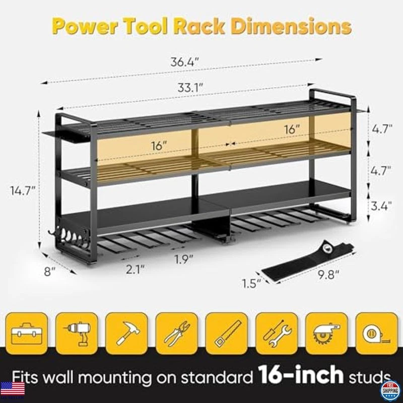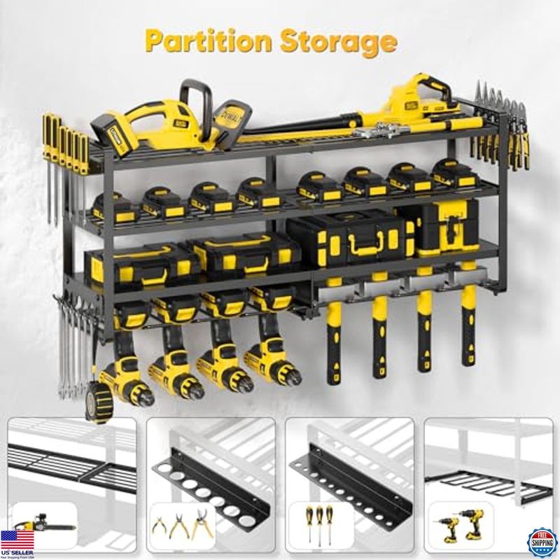 Large Power Tool Organizer Wall Mount,4 Layers Heavy Duty Metal Loads 400lbs,Power Tool Shelf Battery Storage with 8 Cordless Drill Holder,Utility Racks for Garage Workshop Description Transform your space with this stunning piece that effortlessly blends style and functionality. Crafted with attention to detail, it adds a touch of elegance to any room while serving your everyday needs. Don’t miss the chance to elevate your decor with this unique item that stands out in both quality and design! Product reference: B0CP36CP32. Features Stylish and functional design Crafted with attention to detail Adds elegance to any room Unique item that enhances decor High-quality materials used Versatile for everyday needs Shipping Free & Fast Shipping: We offer free shipping to most of the USA with a normal delivery time of 3-7 days. However, due to the current situation, additional delivery time (up to 3 weeks) may be required for some items. Alternative Carriers: We may use alternative carriers (e.g., USPS, FedEx, UPS) to ensure your package arrives safely and on time. Due to the use of multiple carriers, we are unable to provide a tracking number automatically. Handling Time: Orders are processed and shipped within 1-2 business days of receiving cleared payment. Shipping Restrictions: Shipping to Alaska, Hawaii, Puerto Rico, Guam, and other US territories may incur shipping charges or delivery restrictions. Please contact us before ordering, or your order can be refunded/cancelled. State Restrictions: Certain items may not be shipped to California due to state regulations. Contact for Tracking Updates: If you require tracking updates or have any concerns about the delivery of your order, please feel free to contact us, and we will be happy to assist you. Return Policy 30-Day Hassle-Free Returns: If you are not completely satisfied with your purchase, you can return the item for free within 30 days of receiving it for a full refund or exchange. Easy Return Process: Contact us, and we will provide you with a prepaid return shipping label and detailed instructions. No Restocking Fee: There are no restocking fees for returns. However, the buyer is responsible for return shipping costs if the return is not due to a seller's error. Refund Processing: Refunds will be processed within 1 business day of receiving the returned item in its original condition. Payment We accept all major credit cards, PayPal, and Apple Pay for your convenience. Your payment information is secure and encrypted to ensure a safe and seamless transaction. Please complete your payment within 3 days of purchase to avoid any delays in shipping. Feedback Your feedback is extremely important to us. We strive to provide the best products and customer service possible. If you are satisfied with your purchase, please take a moment to leave us a positive review. If you have any concerns or issues with your order, please contact us before leaving negative feedback. We are committed to resolving any problems and ensuring your satisfaction. Contact Us If you have any questions or concerns, please feel free to reach out to our customer support team. You can contact us through the eBay messaging system. We are available Monday to Friday, 9:00 am to 5:00 pm EST, and we will do our best to respond to your inquiry within 24 hours. Thank you for supporting our small family business! See product images above for details.