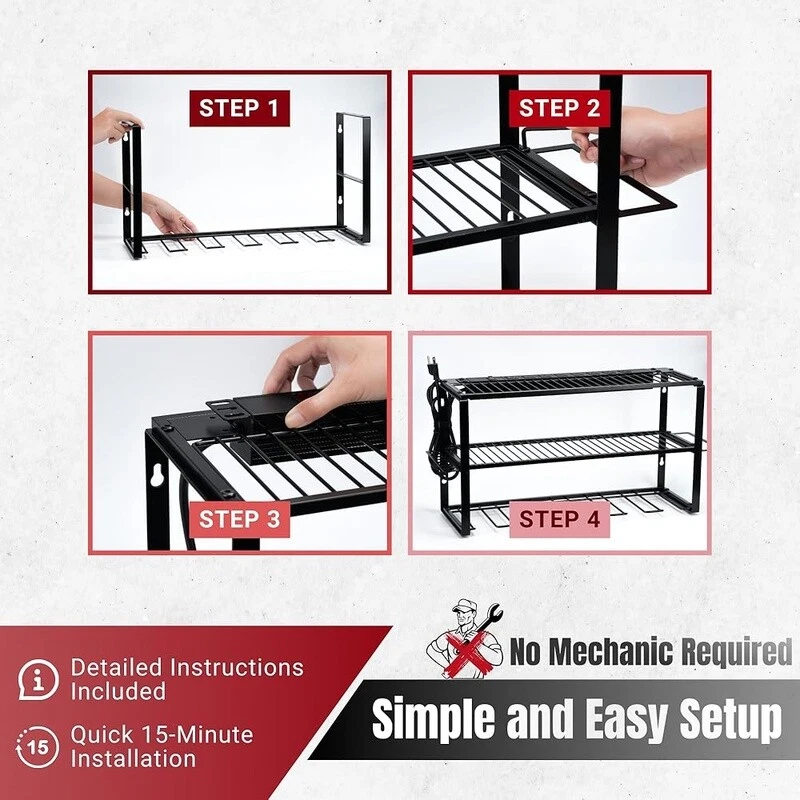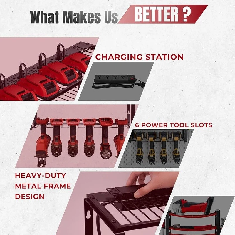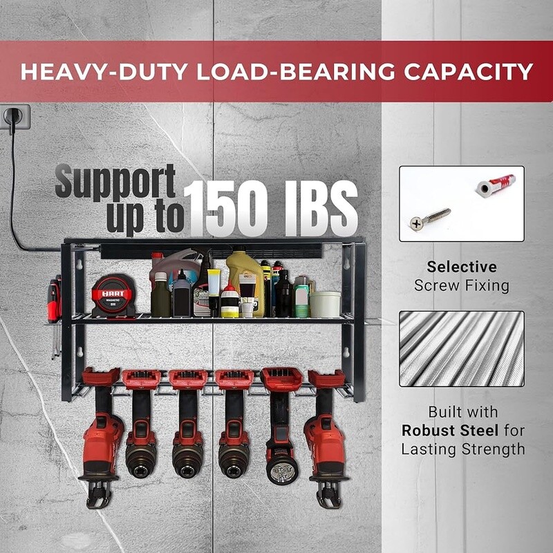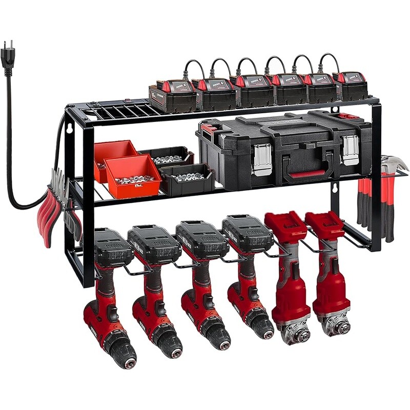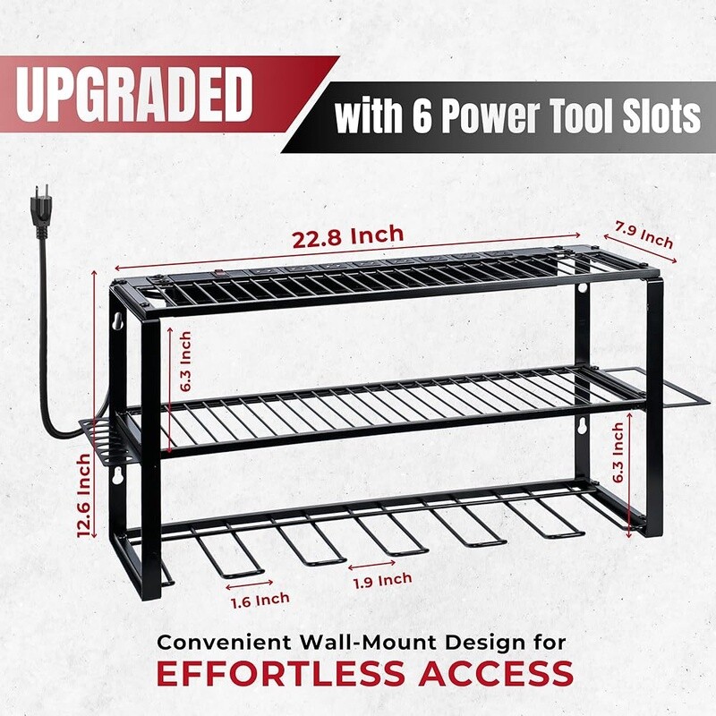 You may also like Stack-n-Roll Two Drawer Tool Box Portable Storage Home DIY Crafting Organization 75.71 USD Free shipping Toolbox Liner Non Slip Drawer Easy Cut Washable Protective EVA Cushion 24" New 59.3 USD Free shipping About this item All-in-One Tool Storage: The power tools organizer wall mount is made entirely of durable 100% metal, this wall-mounted organizer offers 6 slots for drills, a hanger for hammers, and a plier organizer, keeping your work area tidy and maximizing bench space. Built-In Charging Station: The power tool holder and storage rack have 8 power outlets and a 6ft long power cord, rated at 15A, 125VAC, 1875W, 60Hz, and UL certified. Charge all your tools efficiently in one place. Optimize Space & Save Time: The wall mount tool organizer eliminates wasted space and easily locates your tools. Perfect for garages, workshops, homes, sheds, and more. Heavy-Duty Construction: The tool organizer and storage is made 100% metal, this rack is designed for heavy-duty use with greater weight capacity and long-lasting durability. Quick & Easy Installation: The drill organizer wall mount is removable design makes assembly a breeze—simply follow the included instructions to have your tool rack wall mount up and ready in minutes. Material: Metal Color: Black Special Feature: 6 Slots Power Tool, Charging Station Included, Wall Mount, Harmer and Plier Hanger Product Dimensions: 8"D x 23"W x 12. 5"H Shelf Type: Tiered Shelf You may also like Mobile Storage Cart Organizer 3 Drawer White Bathroom Kitchen Bedroom Nursery US 24.18 USD 25.45 USD Free shipping 5% off Camouflage 20L Hunting Backpack W/ Hydration Compatible & Cargo Pockets New 16.81 USD 17.69 USD Free shipping 5% off 3-in-1 Breakfast Station 4-Slice Toaster Oven Coffee Maker and Non-Stick Griddle 103.99 USD 119.99 USD Free shipping 13% off 12 Quart Large Enamel-on-Steel Stock Pot Durable New Oven-Safe Kitchen Stockpot 41.43 USD 43.61 USD Free shipping 5% off French Style Green Beans 4 Cans Ready To Eat Convenient Wholesome 14.5 Oz Can 7.67 USD 8.07 USD Free shipping 5% off Dream Machine Story Projector Toy Gift Educational Nightlight Reading Toddlers 69.83 USD 73.5 USD Free shipping 5% off King Size Metal Platform Bed Frame No Box Spring Needed Durable Heavy Duty New 74.1 USD 85.5 USD Free shipping 13% off Full-Length Rectangular 13x49 Mirror Floor Wall Bathroom Entryway Dorm Mirrors 10.21 USD 10.75 USD Free shipping 5% off Portable CD Boombox W/ Lightweight Handle, New AM FM Radio Audio Player Aux In 63.92 USD Free shipping New Portable File Box Storage System for Letter Size Files in Lid Organization 19.46 USD 20.48 USD Free shipping 5% off Stainless Steel 8Qt Multi-Cooker Stock Pot w/Colander Steamer Basket & Glass Lid 26.01 USD 27.38 USD Free shipping 5% off Full Synthetic Motor Oil 5W-30 5QT High Mileage New Superior Engine Protection 27.45 USD 28.89 USD Free shipping 5% off