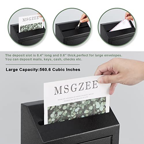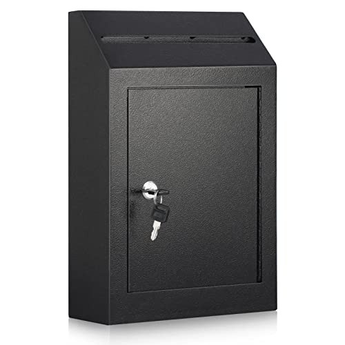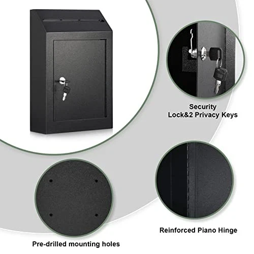Return Policy Fast Delivery Trusted seller Wall-Mount Mailbox,Heavy Duty Deposit Drop Box, Locking Metal Key Drop Box Suggestion Box with Key Lock,Secured Safe Storage Box Postbox for Home&Business Use,15x12x4 Inch,Black Product Description 【DURABLE MATERIAL】- ’s Drop Box is made of powder-coated heavy-duty steel to ensure durability and long life, and provide high-security protection and safe storage for your mails. The black textured surface is not only scratch-resistant and modern as well as beautiful. 【PLENTY OF STORAGE SPACE】- The safe storage box measures 15(H)x12(L)x4(W) inches, offering plenty of storage space for your emails, documents, letters, etc. The size of the opening slot is 9.1x0.47 inches. 【SAFETY STORAGE】 - The mailbox is designed to prevent fishing with a jagged metal baffle inside. It comes with 2 keys and a secure latch that can keep your letters in a safe space. 【MULTI PURPOSE USE】-Not only can this drop box be hung under a porch as a mailbox, but it can also be hung in a conference room or placed on a conference table as a suggestion box. 【EASY TO INSTALL】- wall-mounted mailbox package includes mounting hardware and detailed instruction for convenient installation. It can be easily installed on the wall, suitable for commercial and residential purposes. 【EXCELLENT AFTER-SALES SERVICE】-After receiving the package, please carefully check whether the package is in good condition and the hardware complete. If hardware is missing or the product is damaged during transportation, please feel free to contact us and give us a chance to solve it for you. We are glad and committed to giving you a perfect shopping experience. Shipping Returns Payment Shipping Shipping is FREE to all addresses other than APO/PO boxes in the lower 48 states. All our stock ships from US-based warehouses. Shipped via USPS or UPS (depending on location and package weight) Unless stated otherwise, all orders will ship within 24-72 hours of your payment being processed. Check our feedback to see the great reviews of FAST shipping we offer. Returns Seller does not accept returns Payment We currently accept payment via eBay managed payments only. Once payment is cleared, we will dispatch your shipment within 1-3 business days. Please refer to the "Shipping" tab for more information regarding shipping speed to your destination.