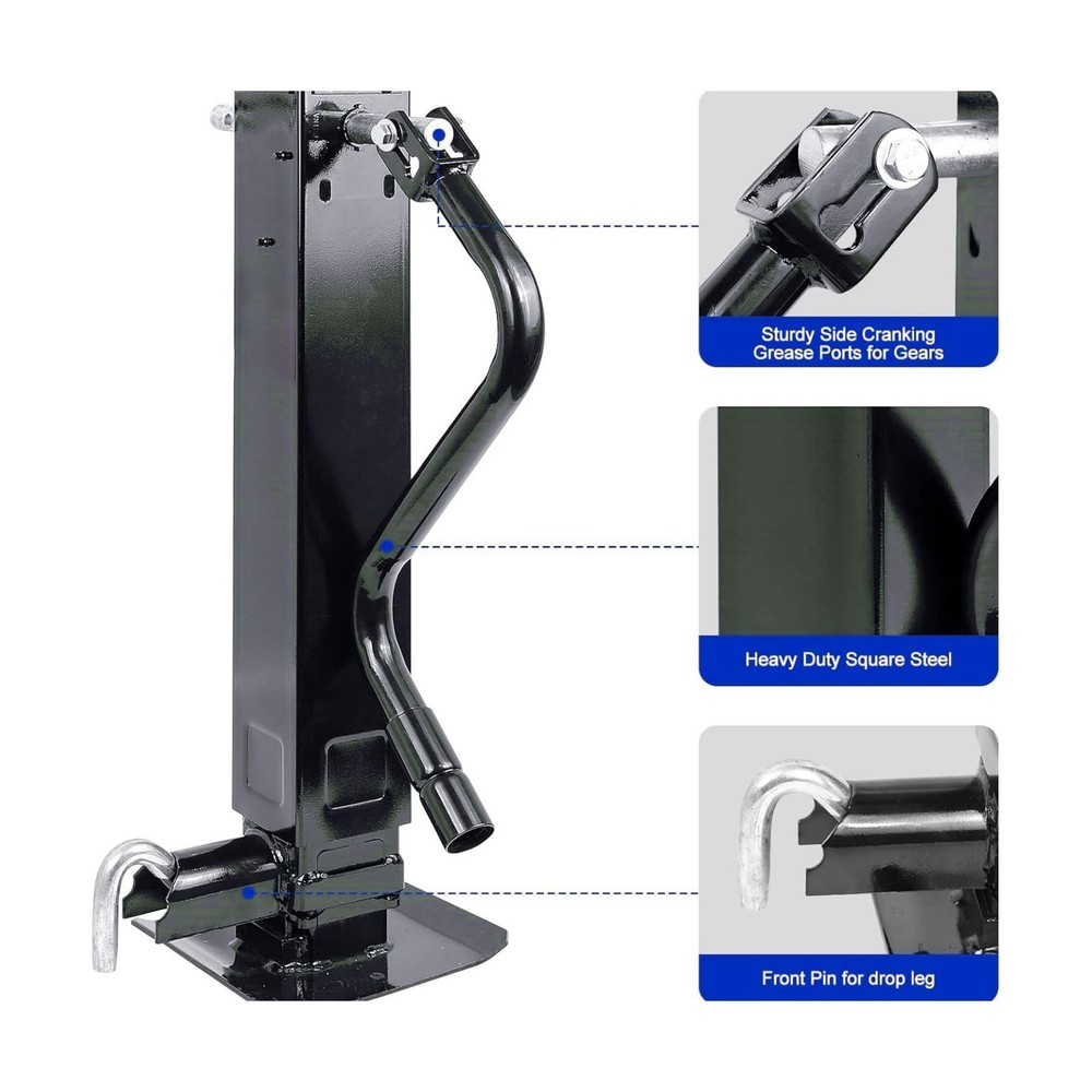 Heavy Duty Weld Square Tube Trailer Jack - 12.5" Lift 13.5" Drop Leg Travel Capacity 12000 LBS (12000lbs Side Pull pin) Description Features: 12.5" Lift 13.5" Drop leg Travel Capacity 12000 LBS YEOPGYEON Trailer Jack is a Weld On Square Tube Jack Includes mounting hardware Black powder coating and galvanizing All products are tested for reliable performance and durability Product Details: Vehicle Service Type: RV Material: Alloy Steel Load Capacity: 12000 LBS Maximum Lifting Height: 13.5 Inches Brand: YEOPGYEON Load Capacity: 12000 LBS Maximum Lifting Height: 13.5 Inches Brand: YEOPGYEON Color: Black Item dimensions L x W x H: 16 x 11 x 30 inches Automotive Fit Type: Universal Fit Manufacturer: YEOPGYEON Model: JY-TJ-56B Item Weight: 59.9 pounds Product Dimensions: 16 x 11 x 30 inches Item model number: JY-TJ-56B Manufacturer Part Number: JY-TJ Date First Available: July 24, 2023 Delivery We Do Not Ship Outside of the Continental US. Return Policy All items qualify for returns within 30 days of receipt. Seller is responsible for return shipping on any item that is not damaged. Feedback We take our reputation seriously, we buy and sell online, so we understand the value of trust. If you are unsatisfied with your order, please contact us and we will work with you to resolve it to your satisfaction.