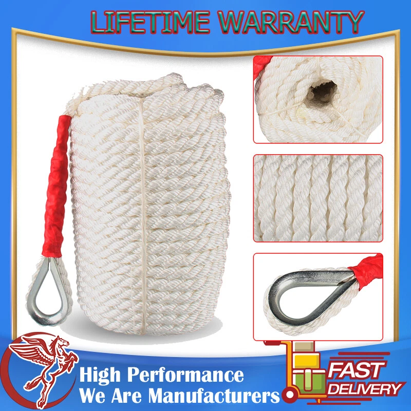 Heavy Duty White Polypropylene Rope Sheathed 3/4"x200' Three Strands Anchor Rope